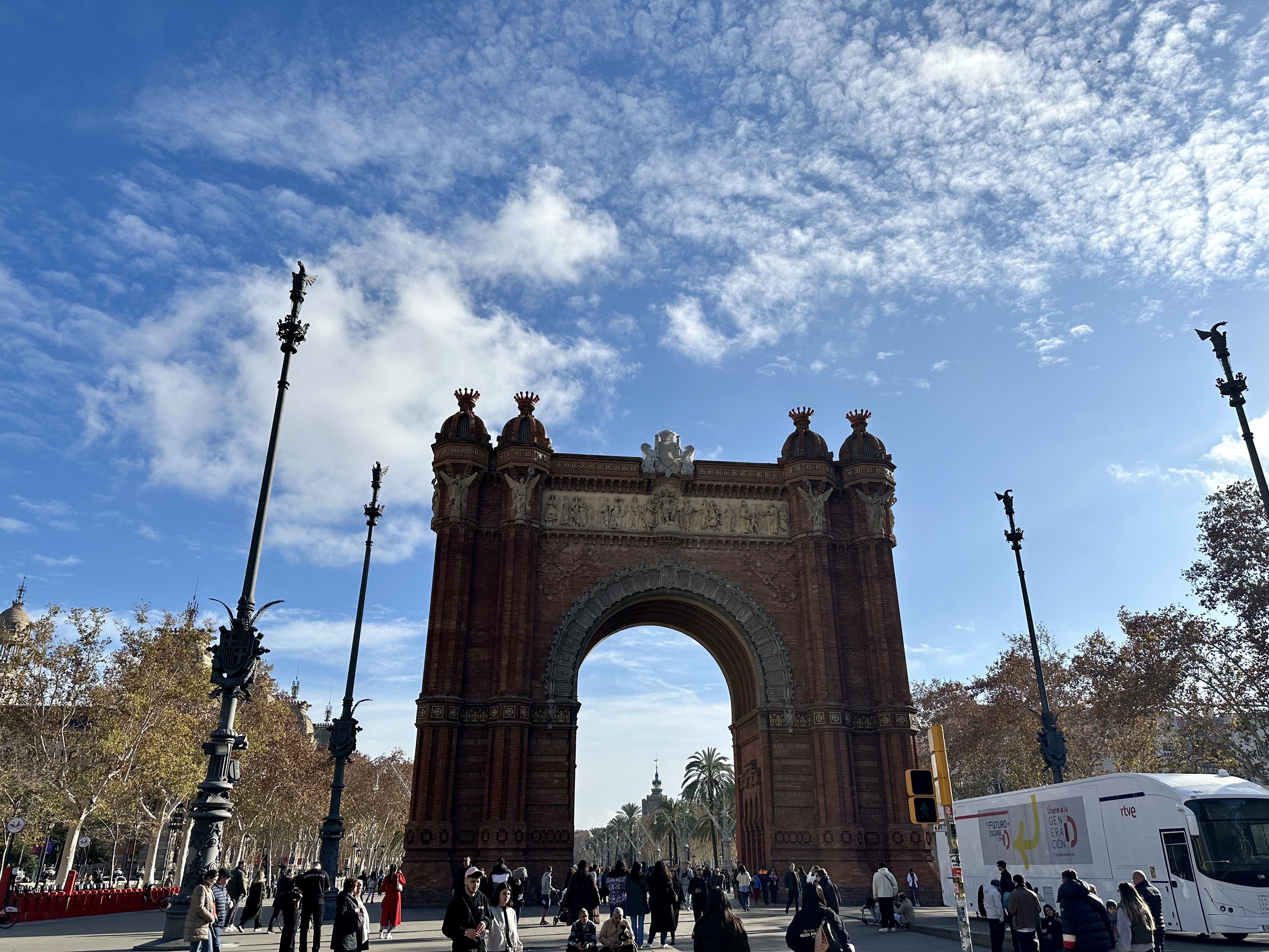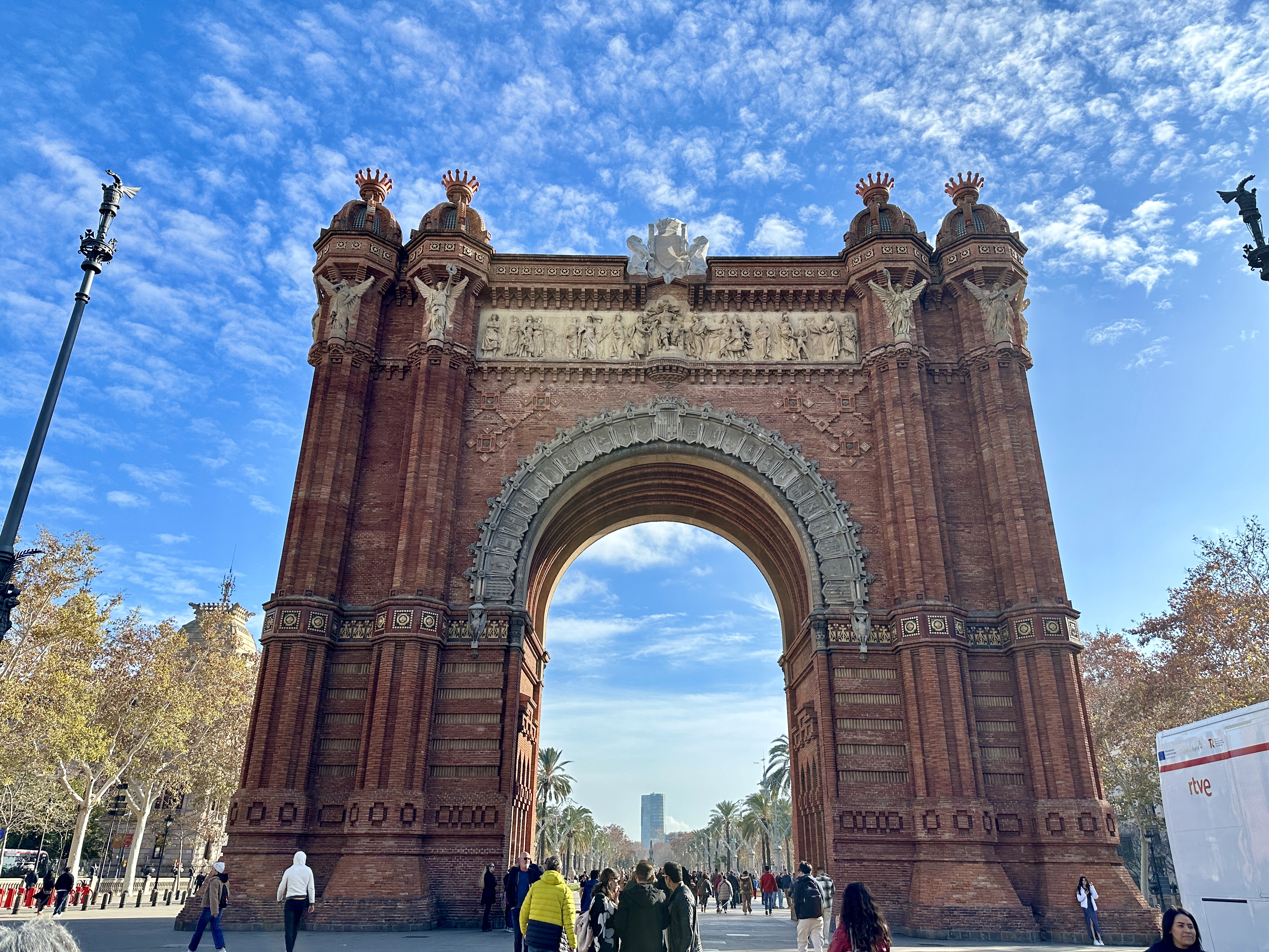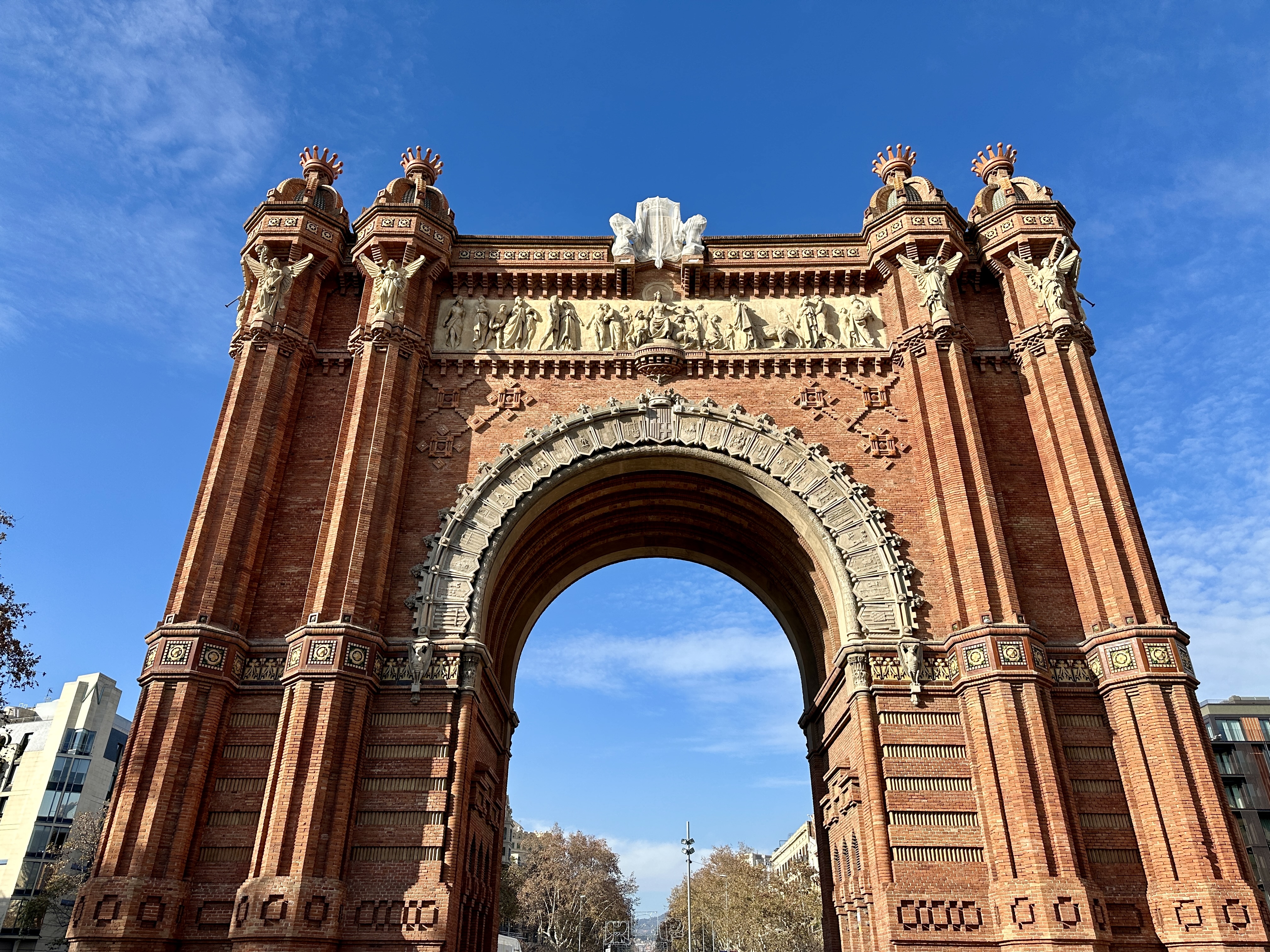 또한, 아치 위에는 다양한 조각과 장식이 있어 바르셀로나의 문화와 역사를 표현하고 있습니다.