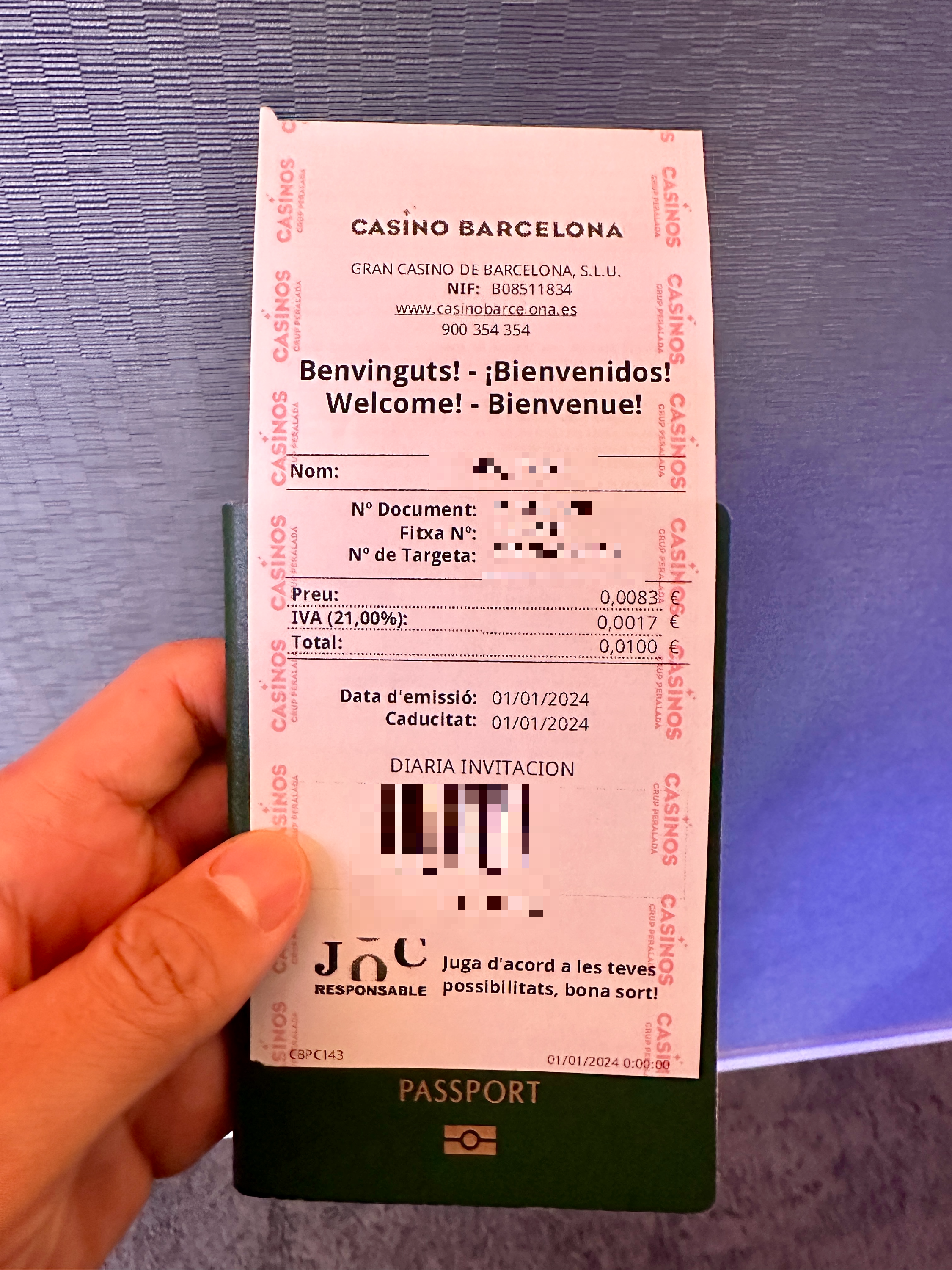 결국 이날은 그냥 돌아와야만 했고, 다음날 다시 여권을 들고 바르셀로나 카지노를 찾게 됩니다.