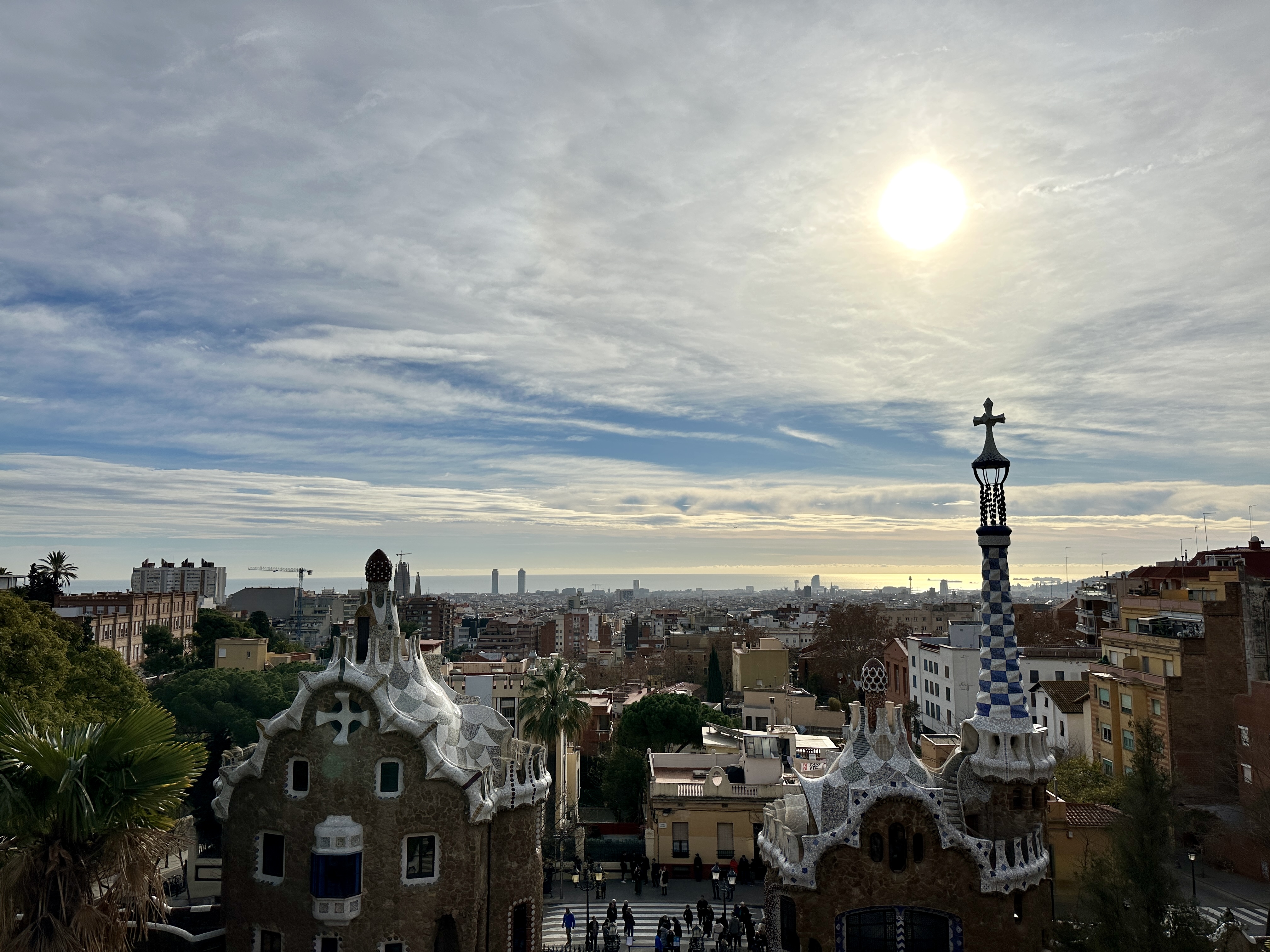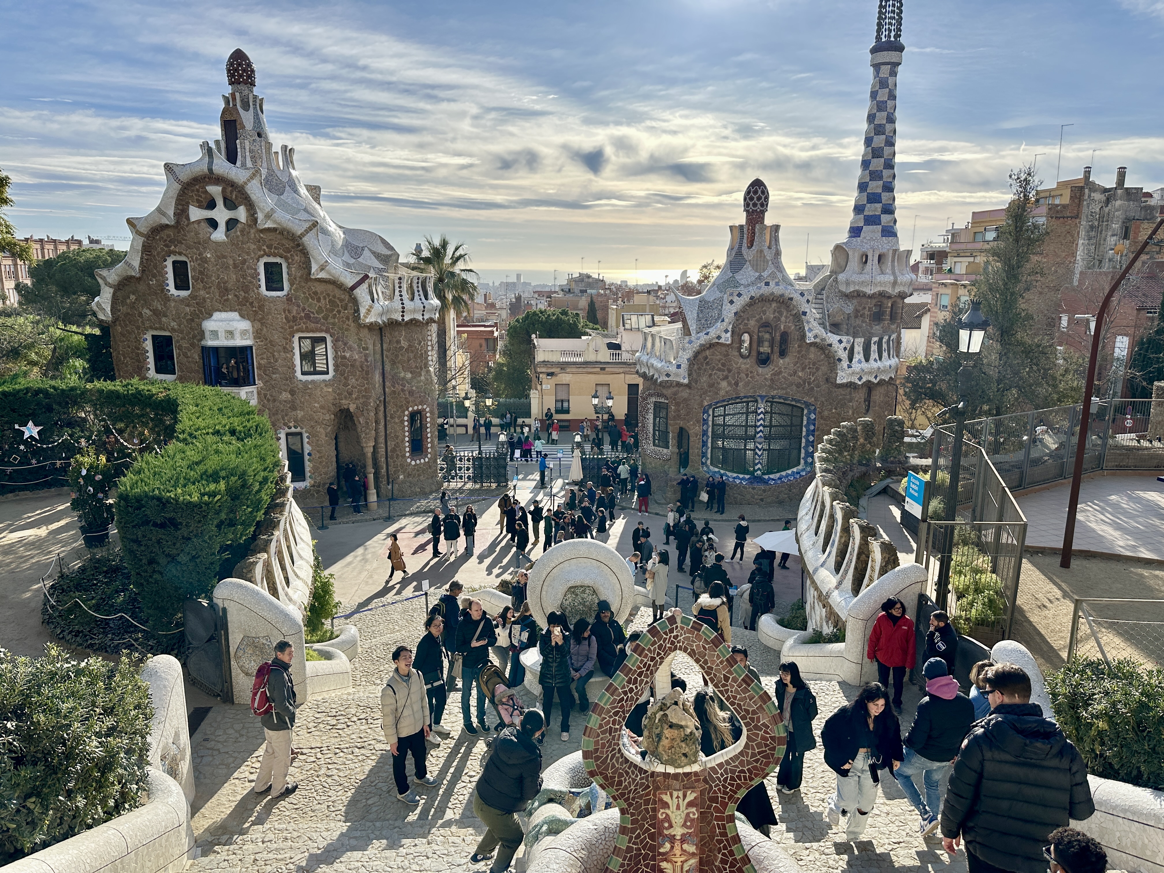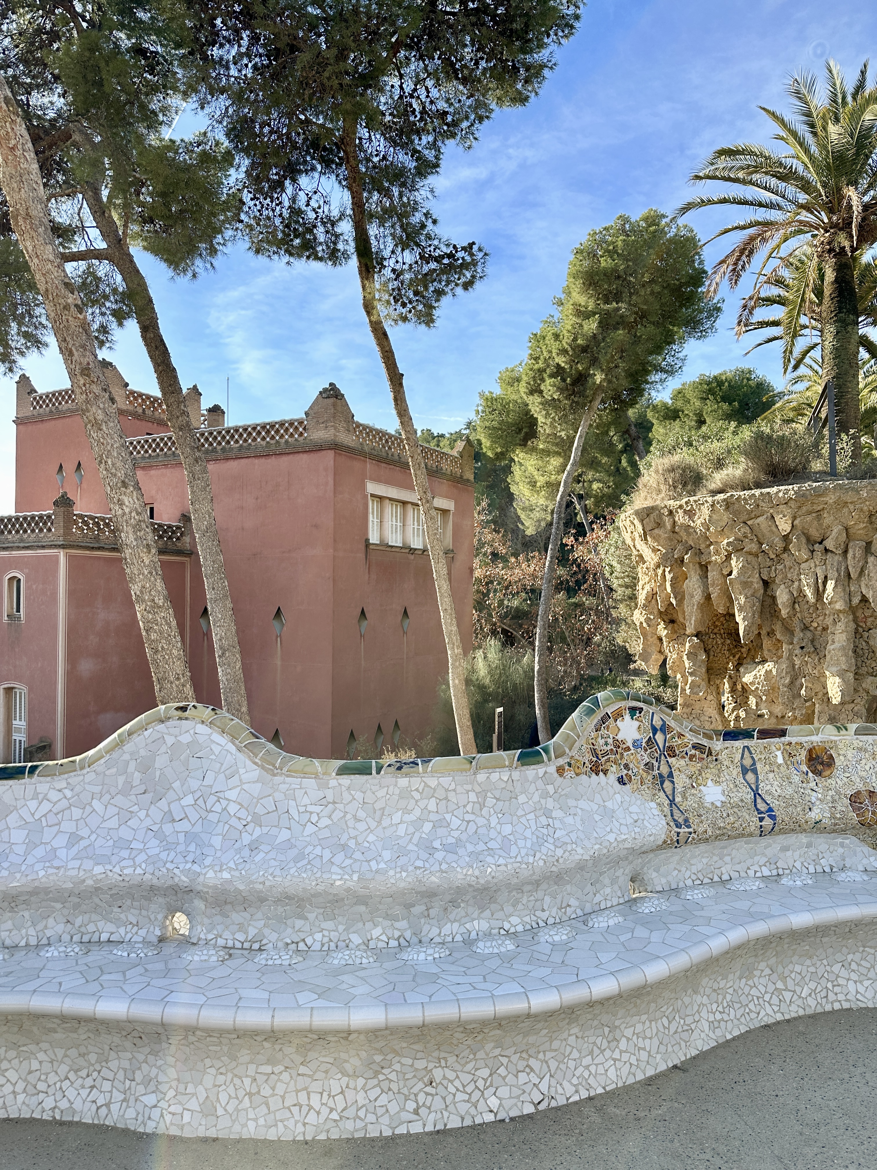 구엘공원은 바르셀로나 내에서도 고도가 높은편에 위치한 언덕위에 지어진 곳입니다.