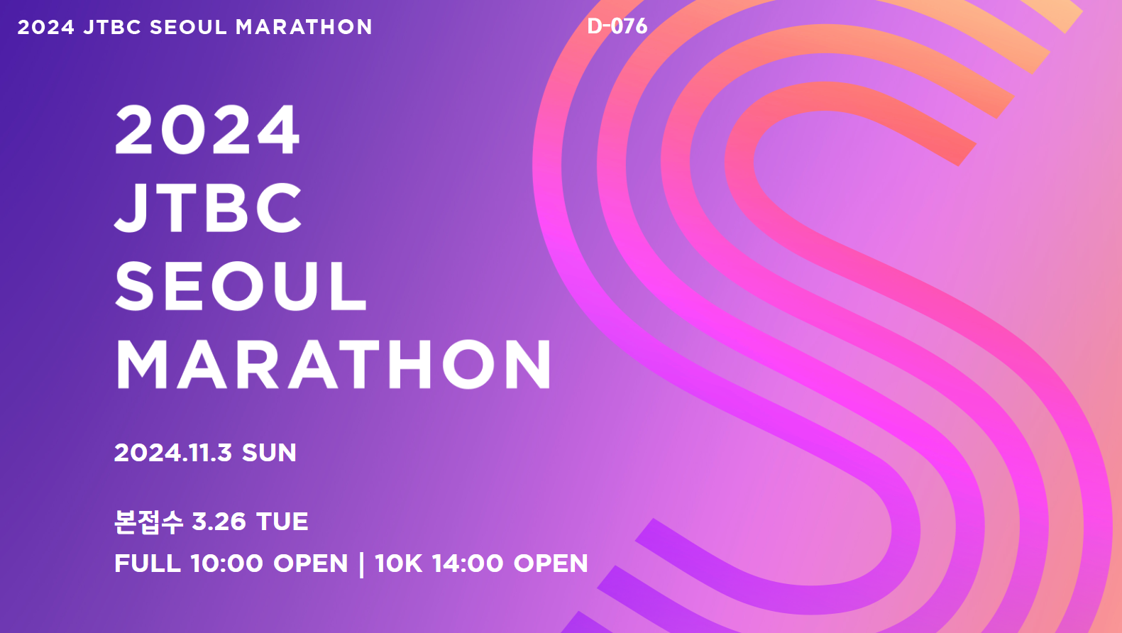 JTBC 서울마라톤도 2024년 접수가 모두 마감되어 2025년 대회를 노리시는게 좋을 듯 합니다.