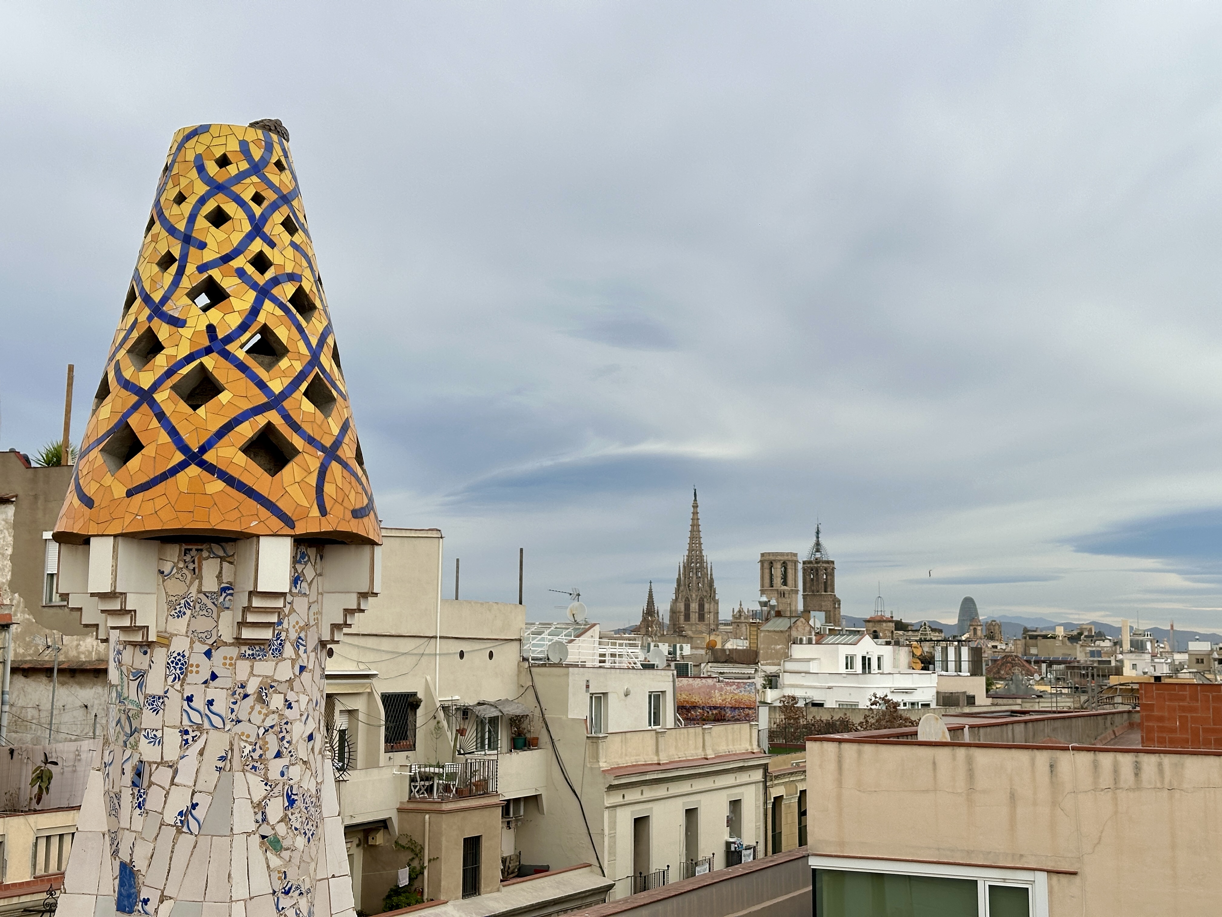 해질 녘 구엘저택 옥상 야외정원 전망대에 방문해도 바르셀로나의 야경을 관람할 수 있을 것 같다는 생각이 들었습니다.