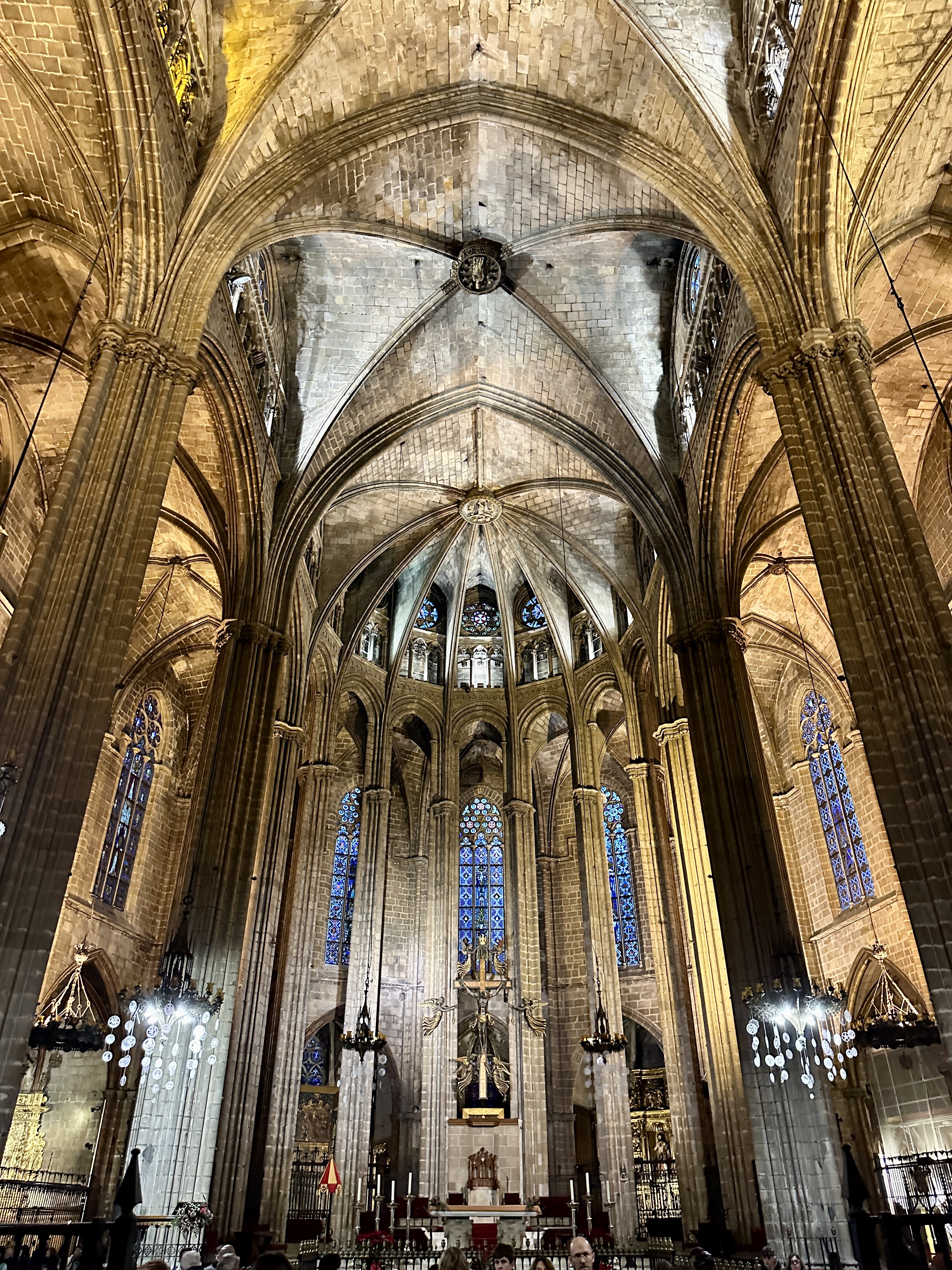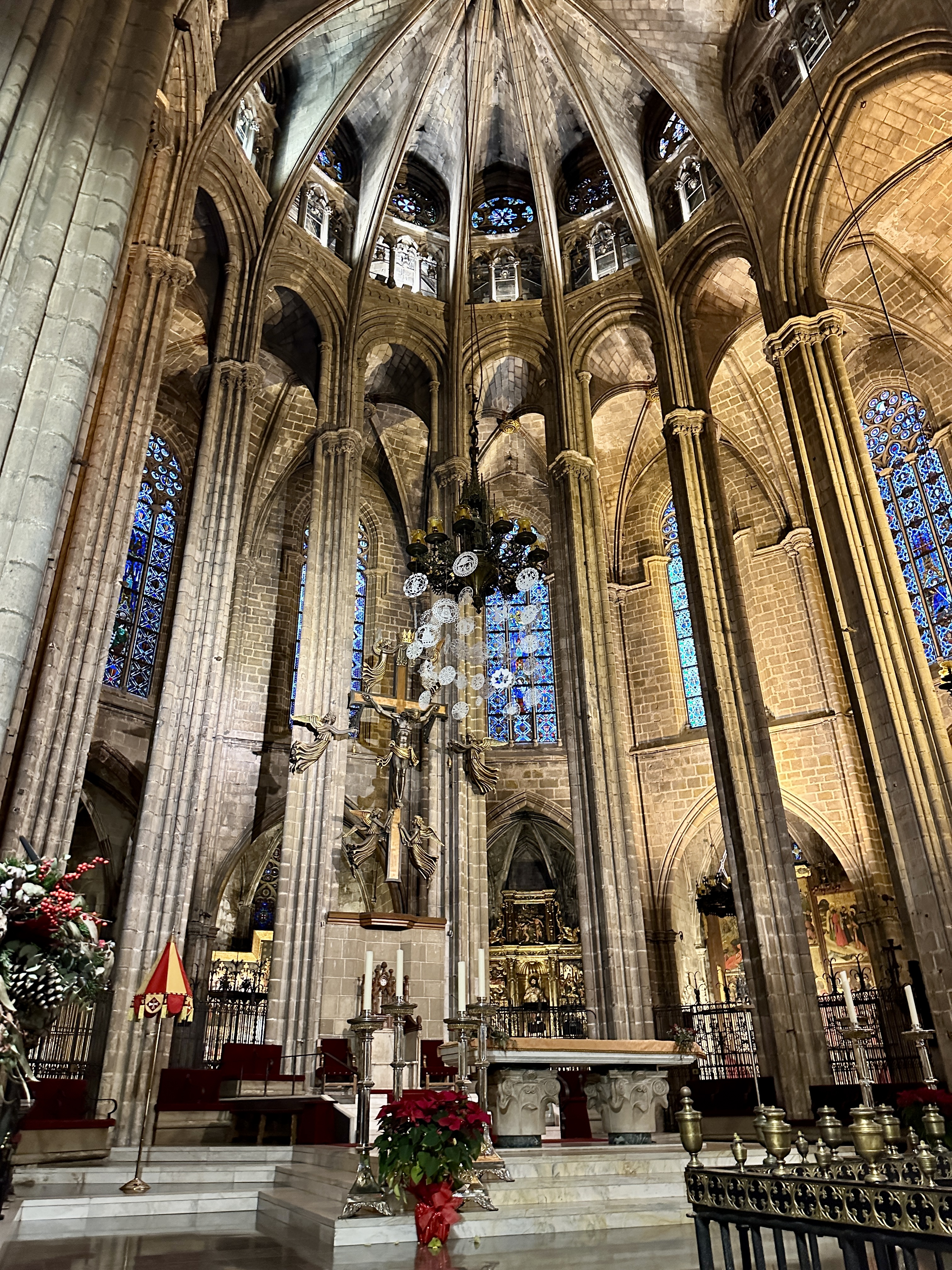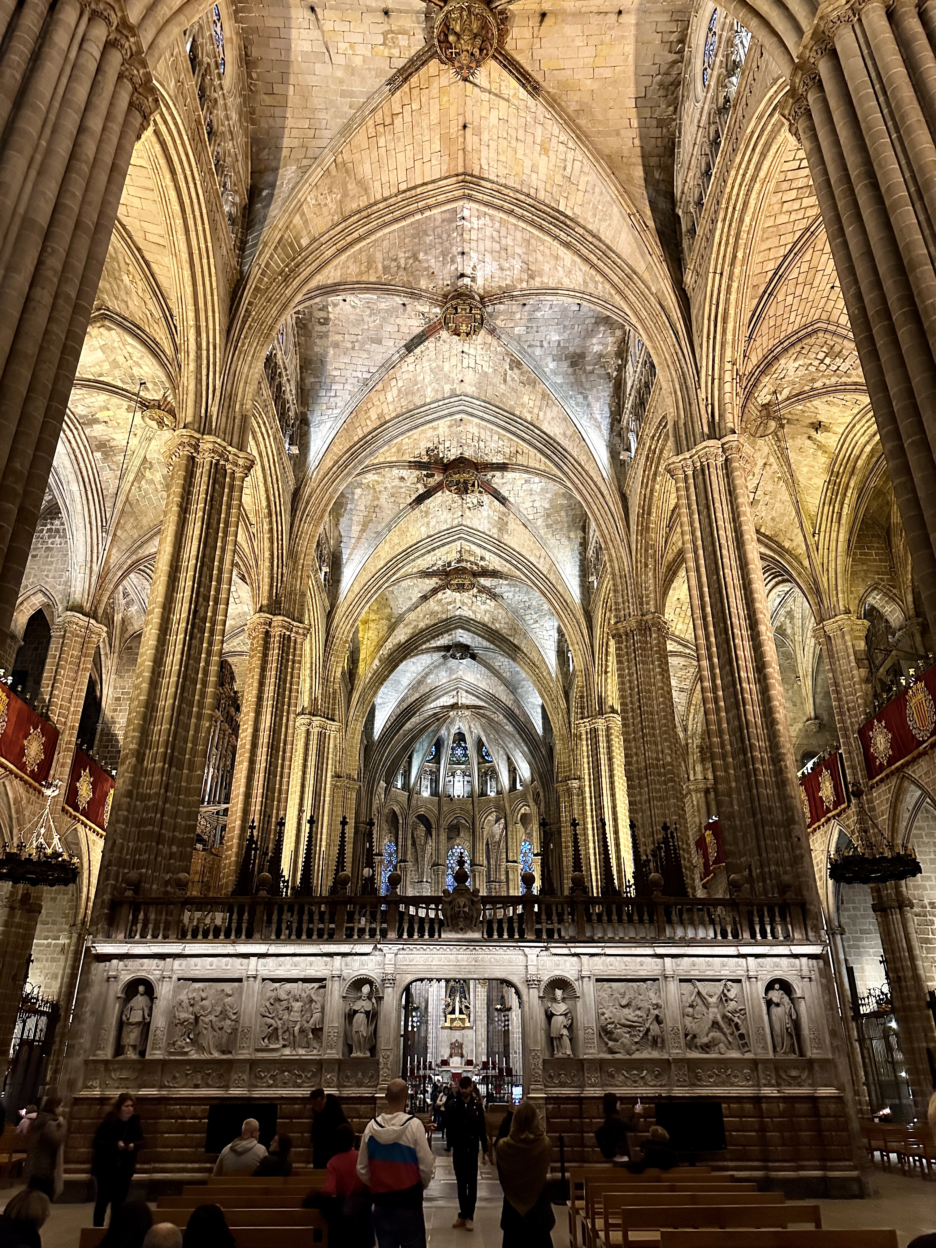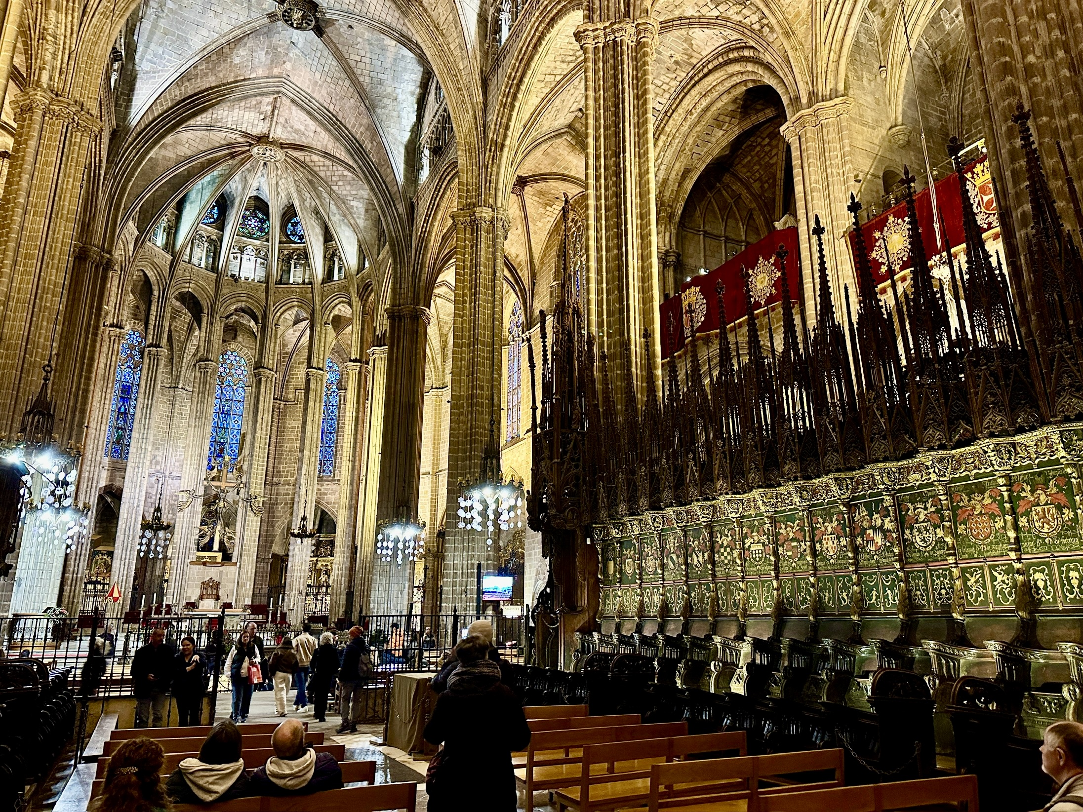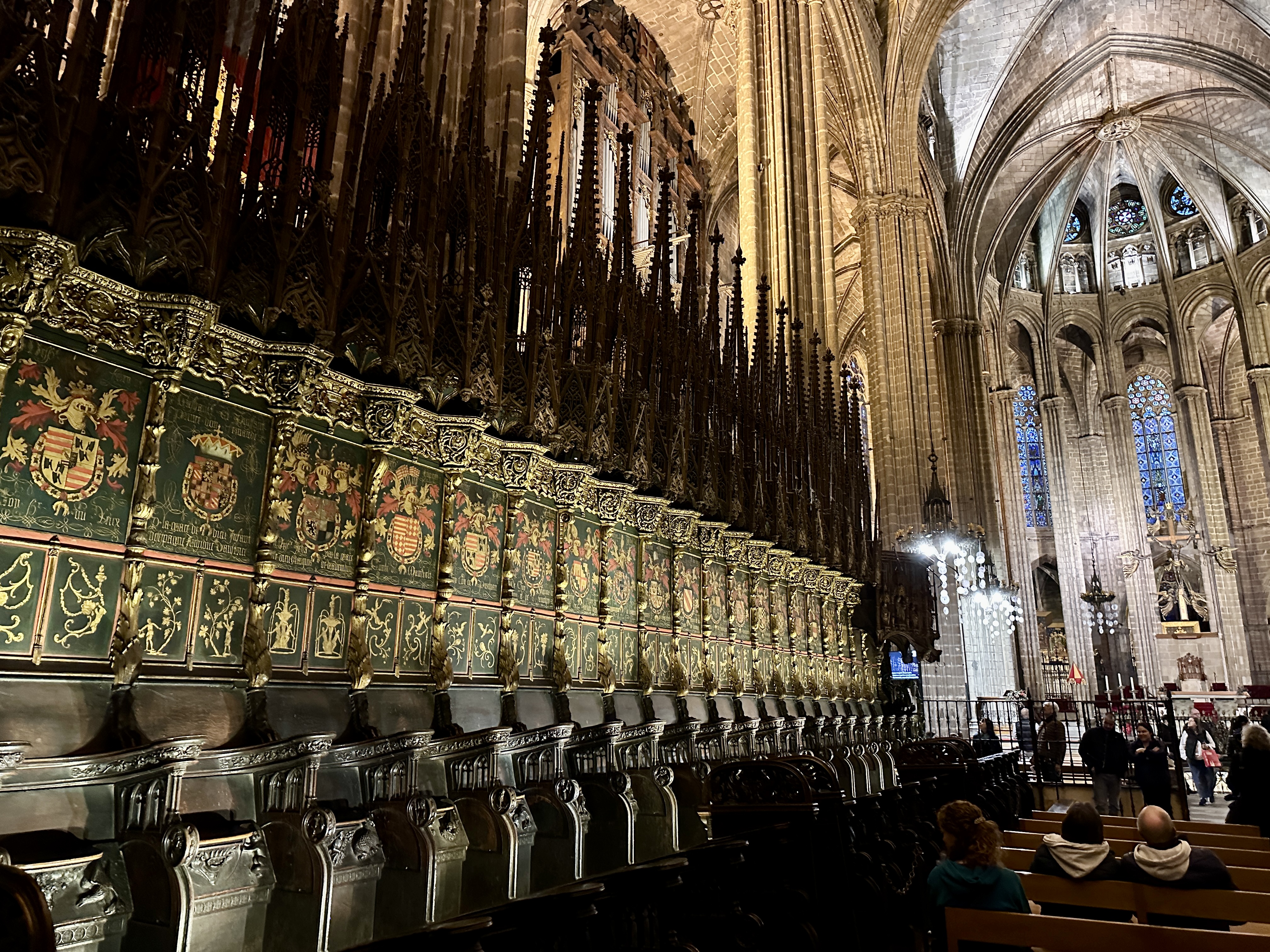 성당 안으로 들어오면 성가대석이 보이고, 성가대석을 에워싼 흰 대리석에는 바르셀로나의 수호 성녀인 산타 에우랄리아가 순교하는 장면이 조각되어 있습니다. 르네상스 시대의 뛰어난 조각가 중 한명인 바르톨로메 오르도녜스가 조각한 것으로, 스페인 르네상스 시대 조각의 걸작으로 여겨지고 있습니다.