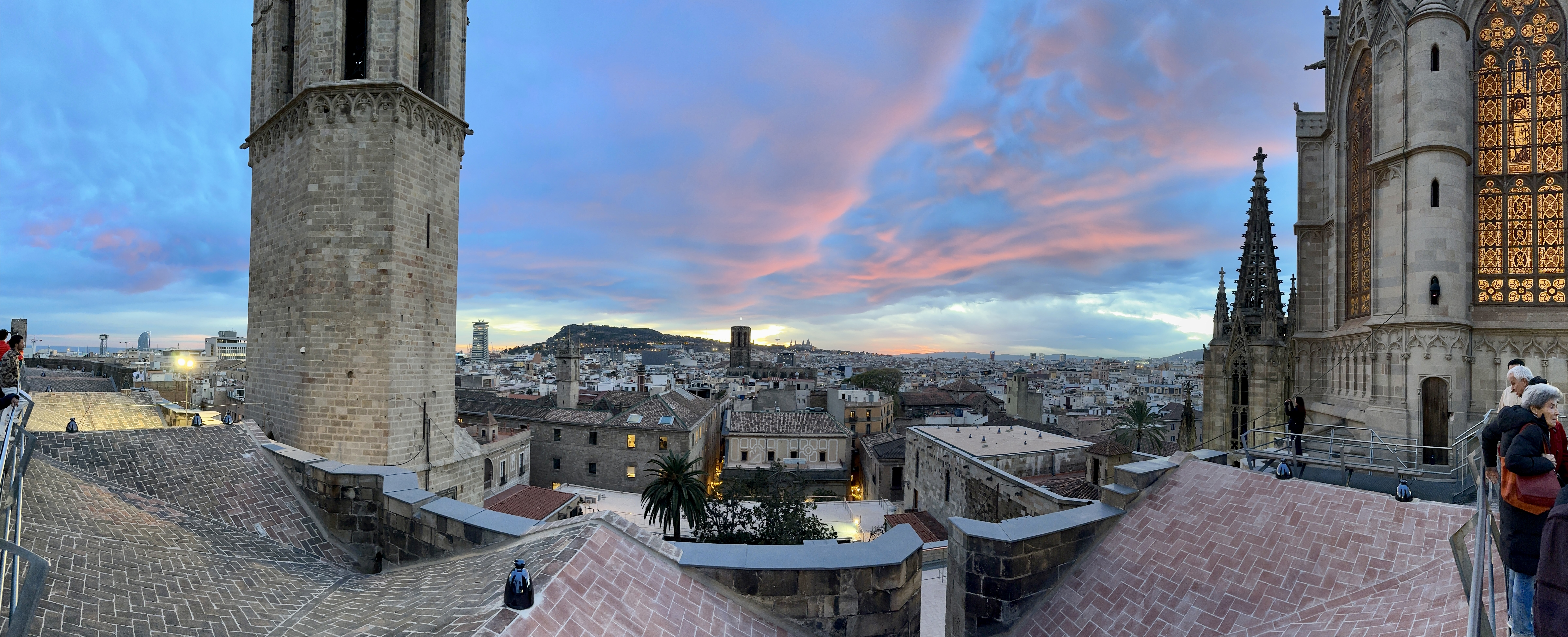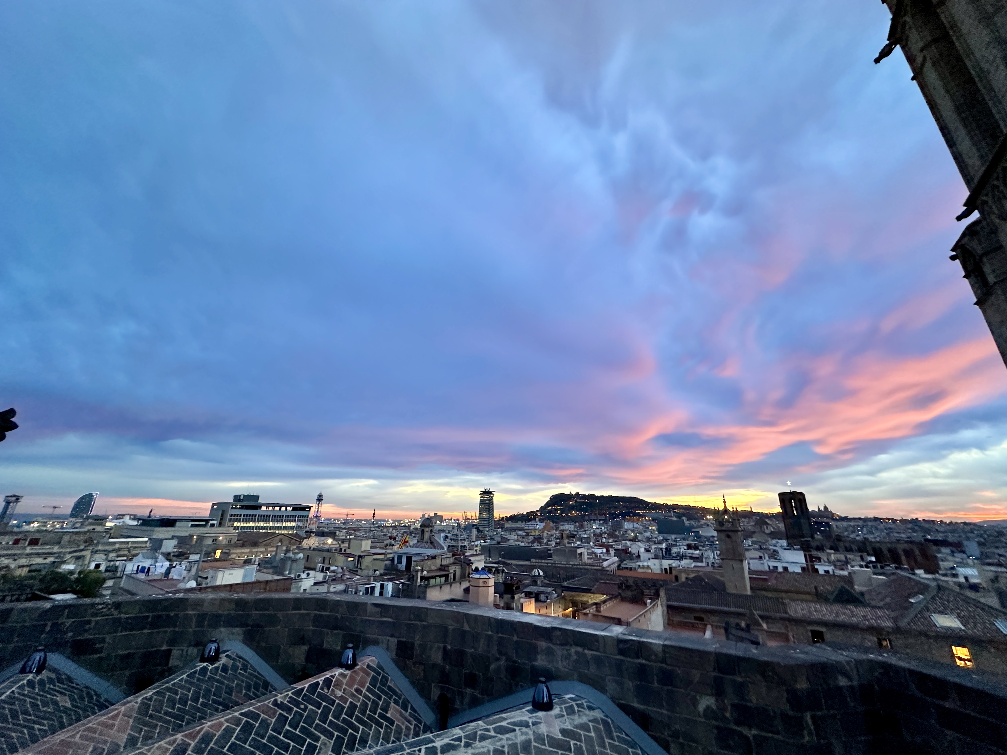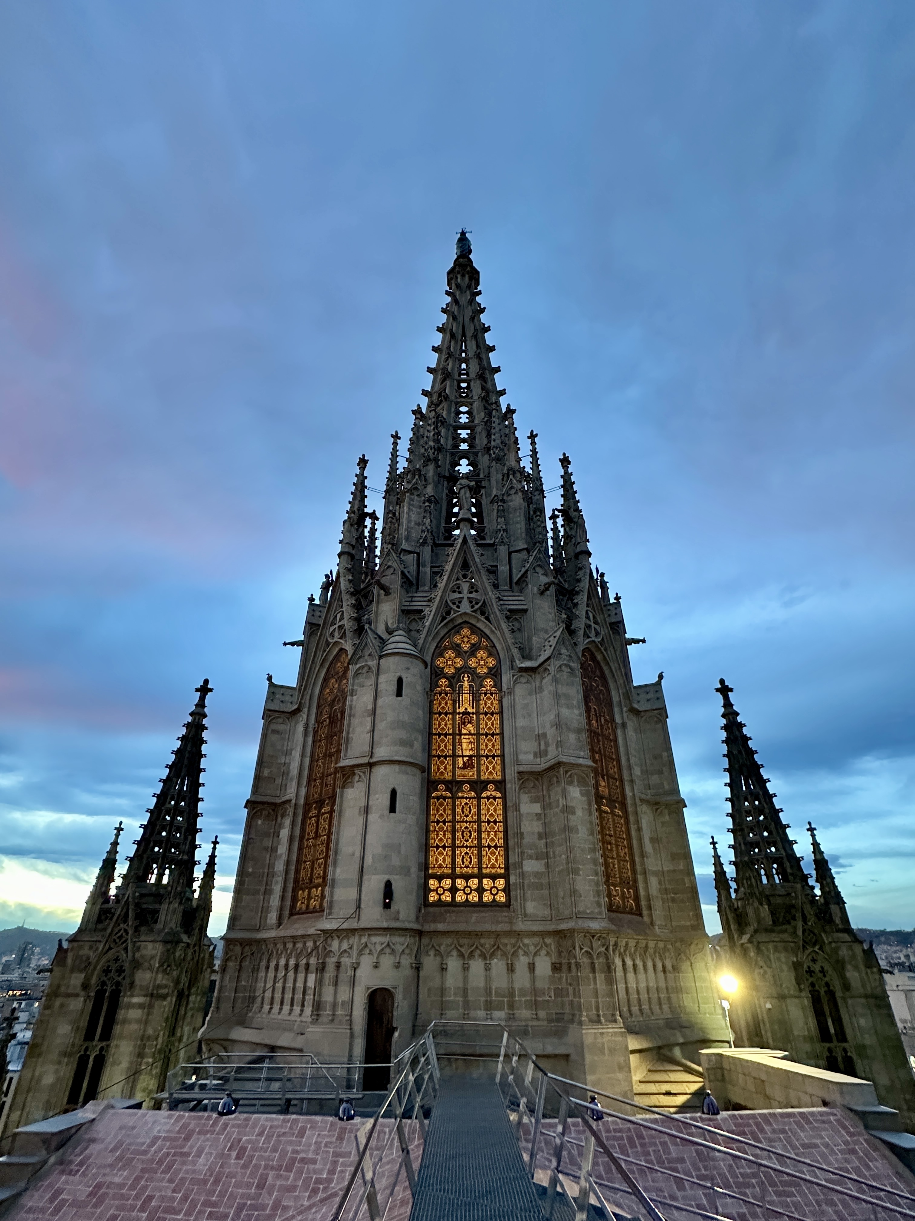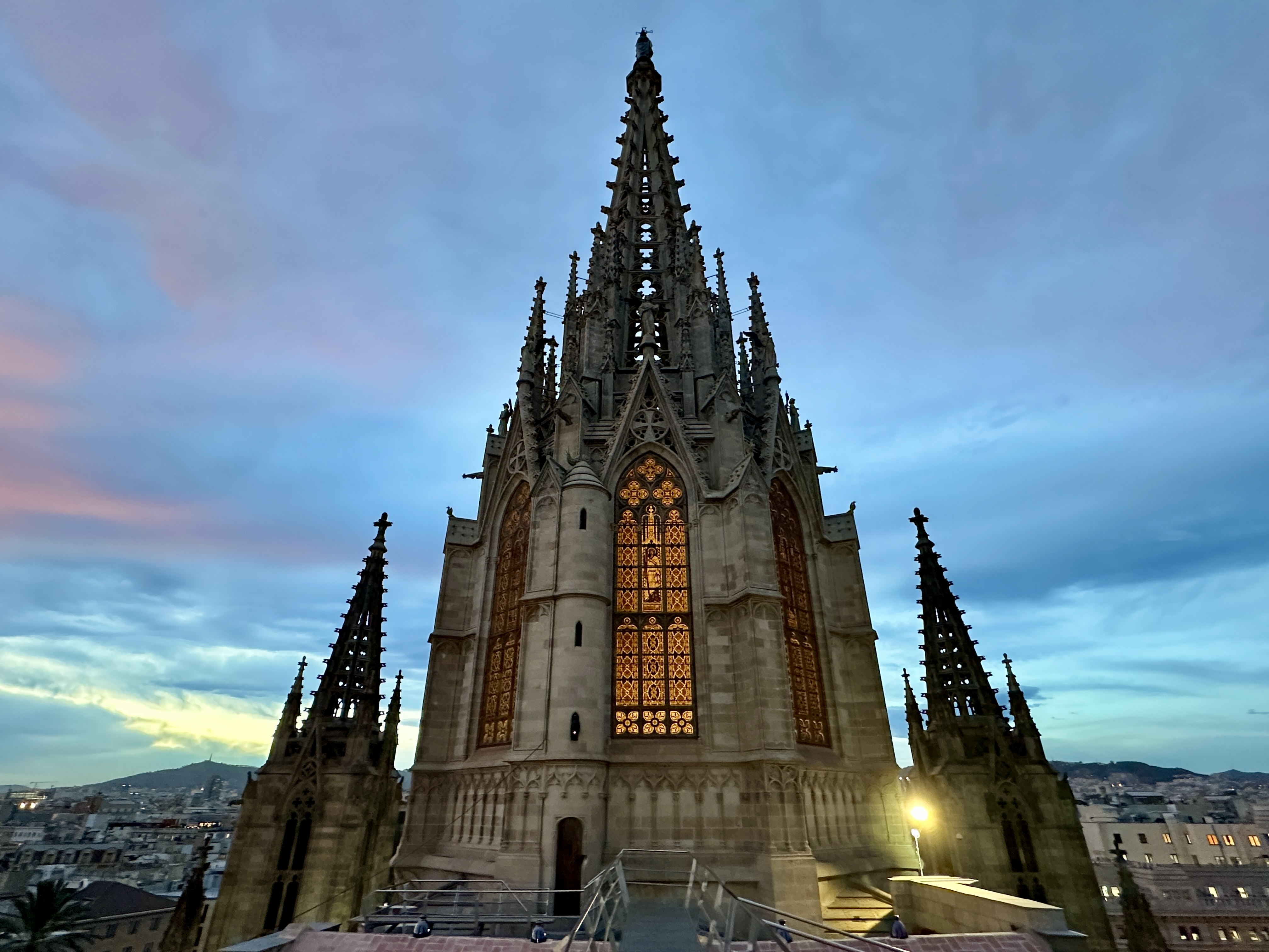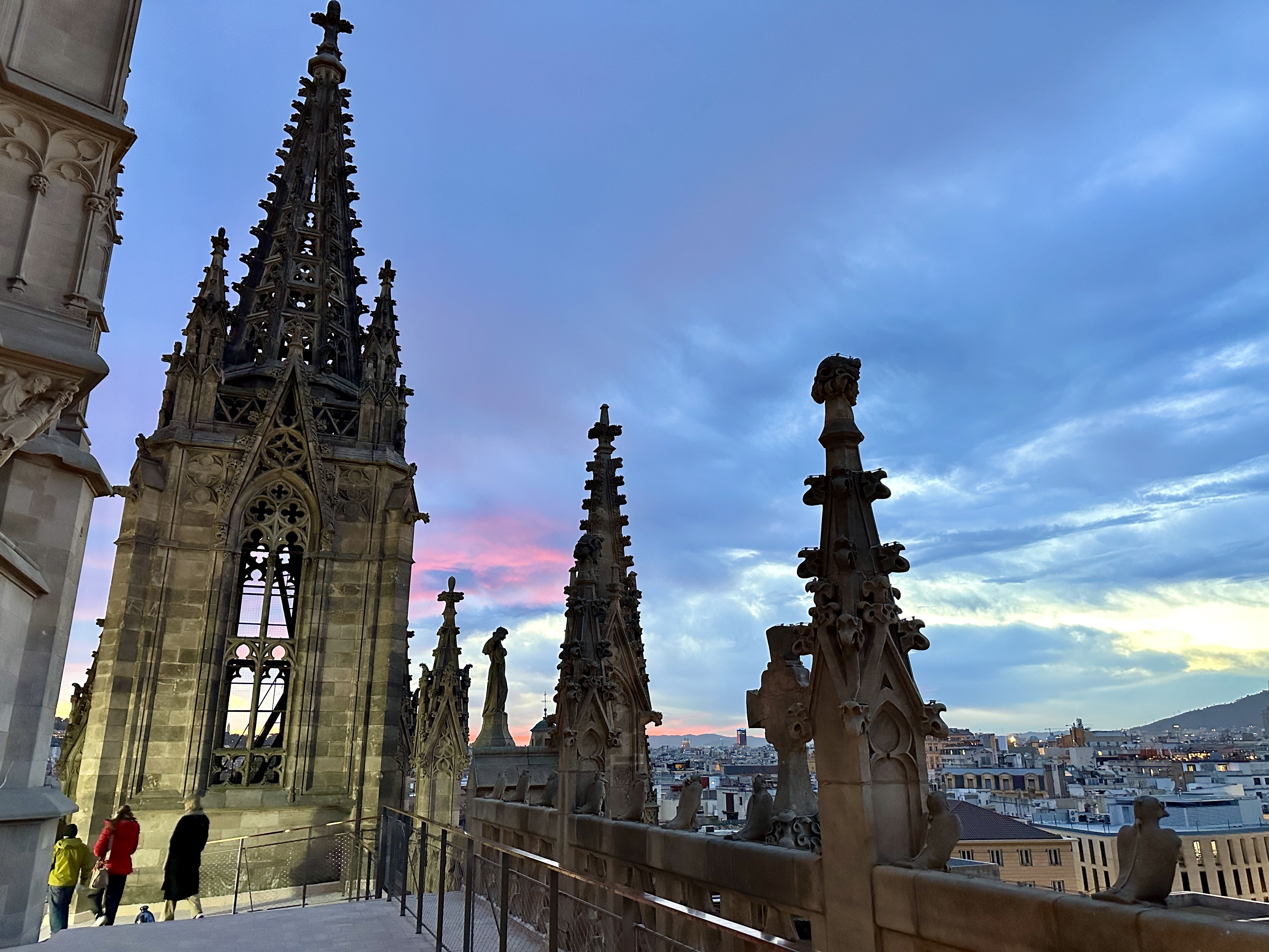 물론 사그라다 파밀리아가 유명세에서는 더 알려져있지만, 바르셀로나 대성당도 그에 못지 않게 아름다웠고 특히나 옥상에서 보는 일몰과 야경이 너무나 아름다웠습니다.