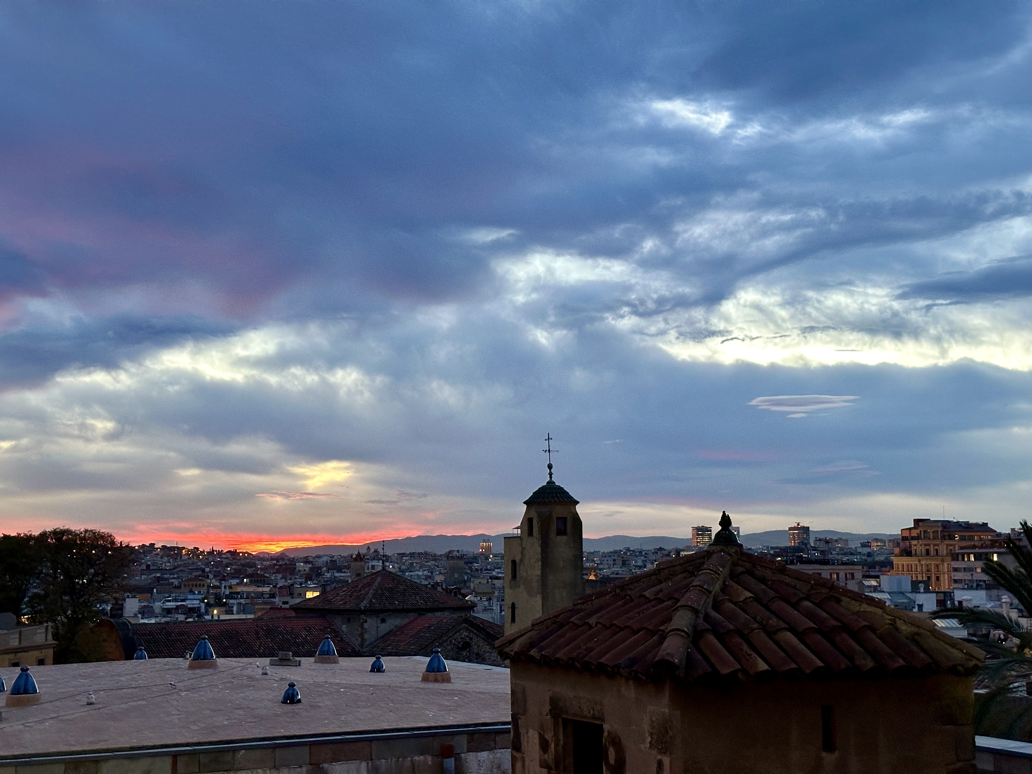 바르셀로나 대성당 내의 바르셀로나 스카이라인 이라고 써 있는 작은 8인승 엘리베이터를 타고 옥상 전망대로 올라오면 환상적인 바르셀로나 일몰을 감상할 수 있습니다.
