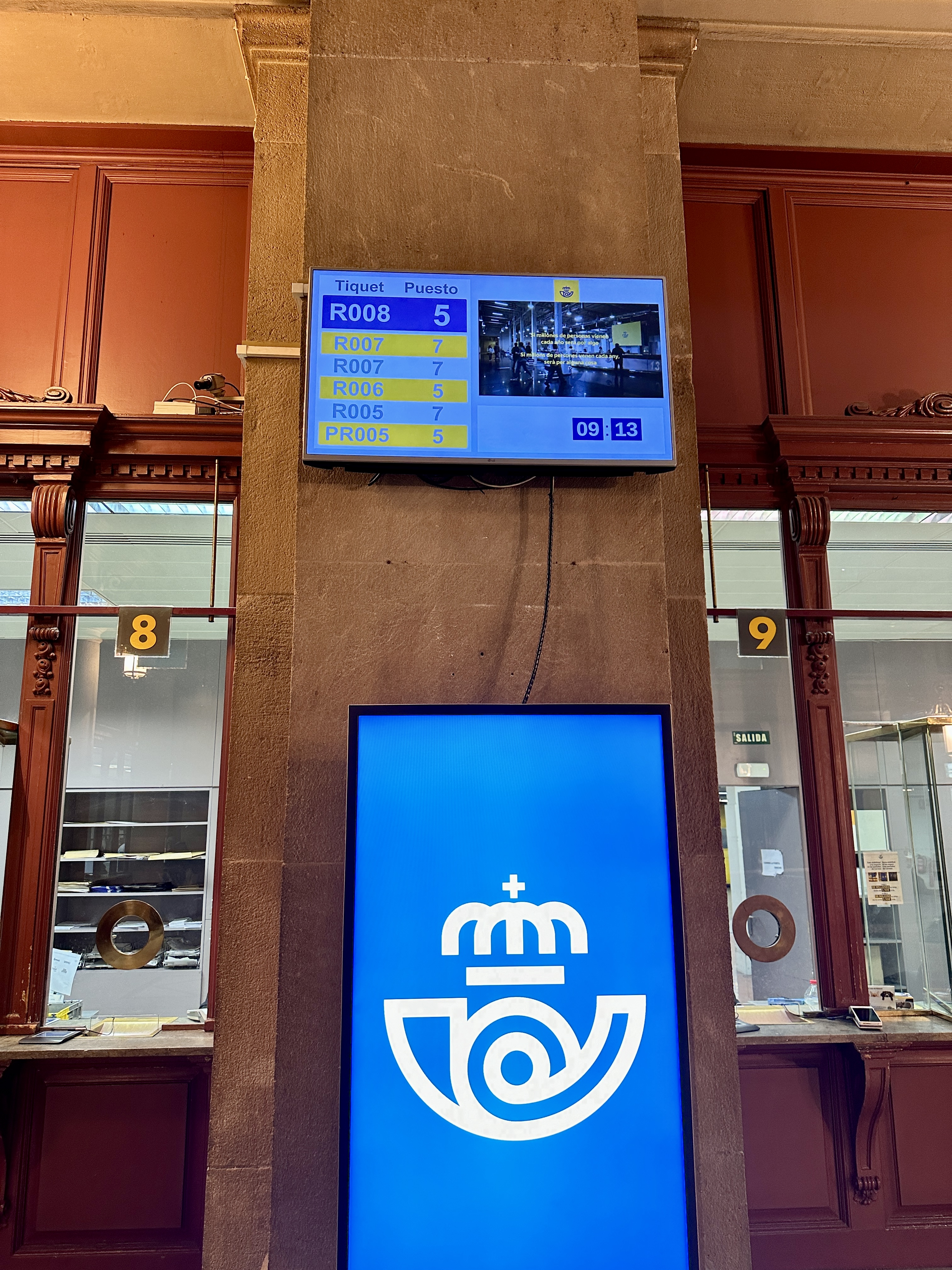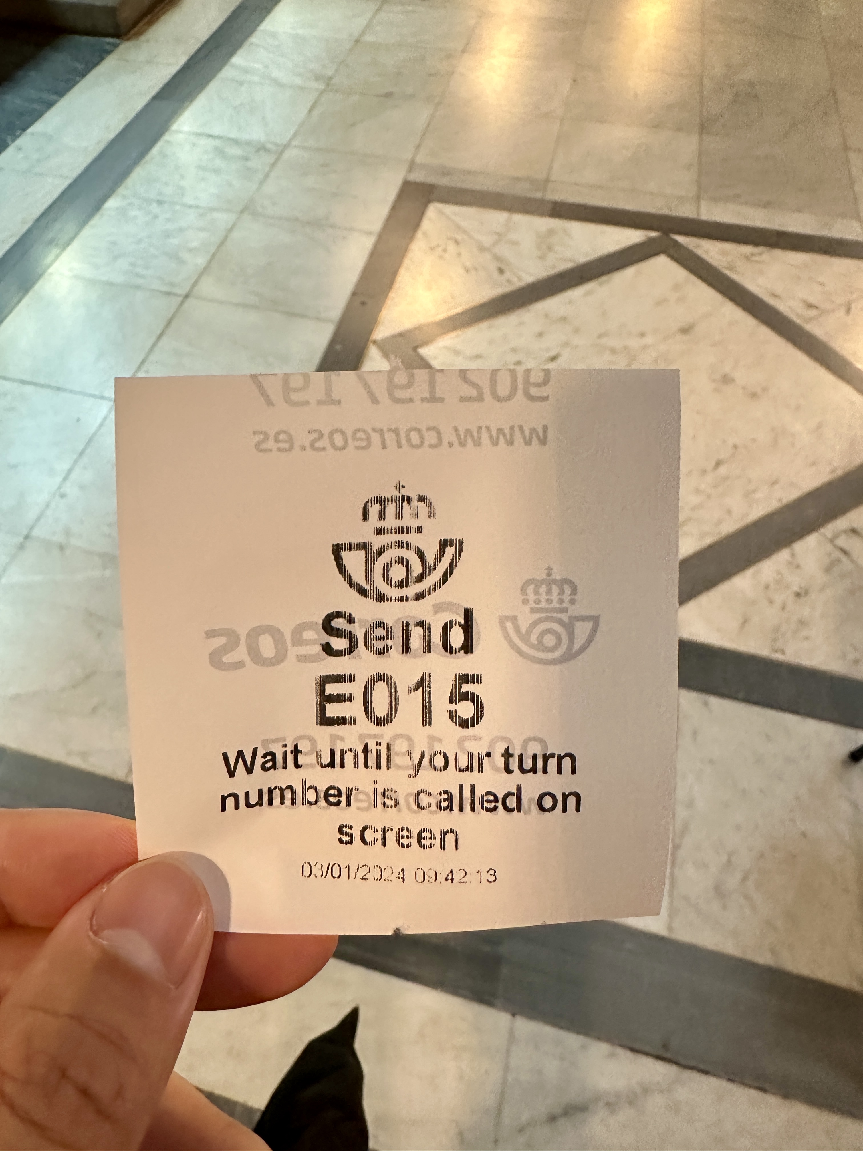 Correos 또는 Correus 라고 불리는 스페인 우체국을 방문해서 번호표를 뽑고 기다리면 됩니다.