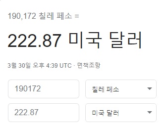 최종 합계 운임 CL$ 190,172 이 나온다. (약 27만 1,500원)