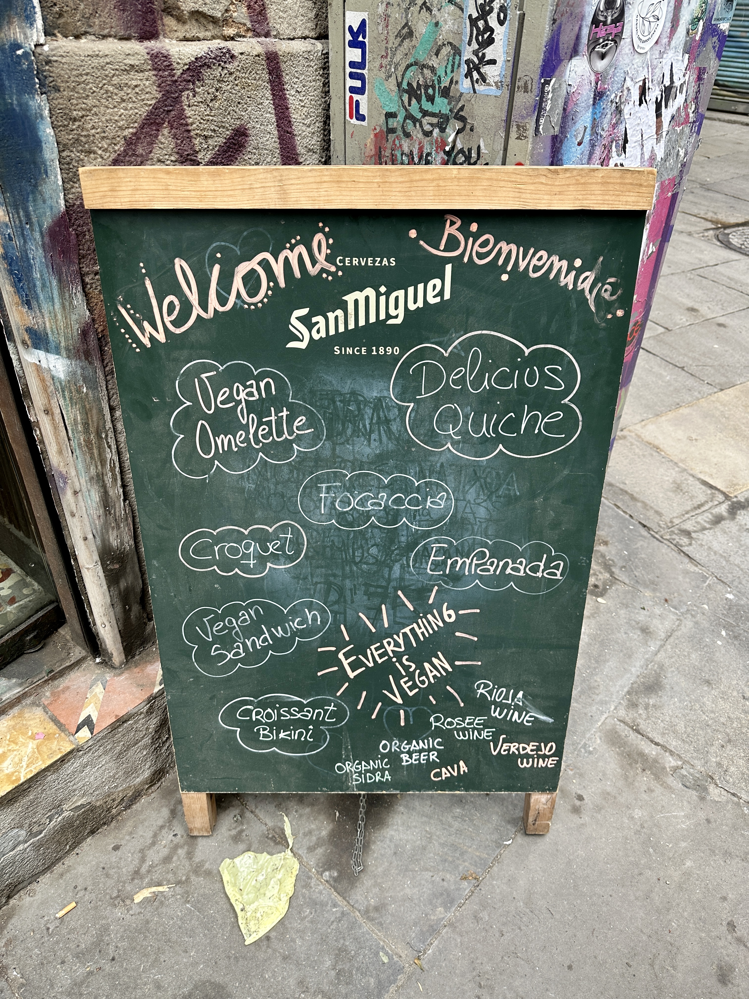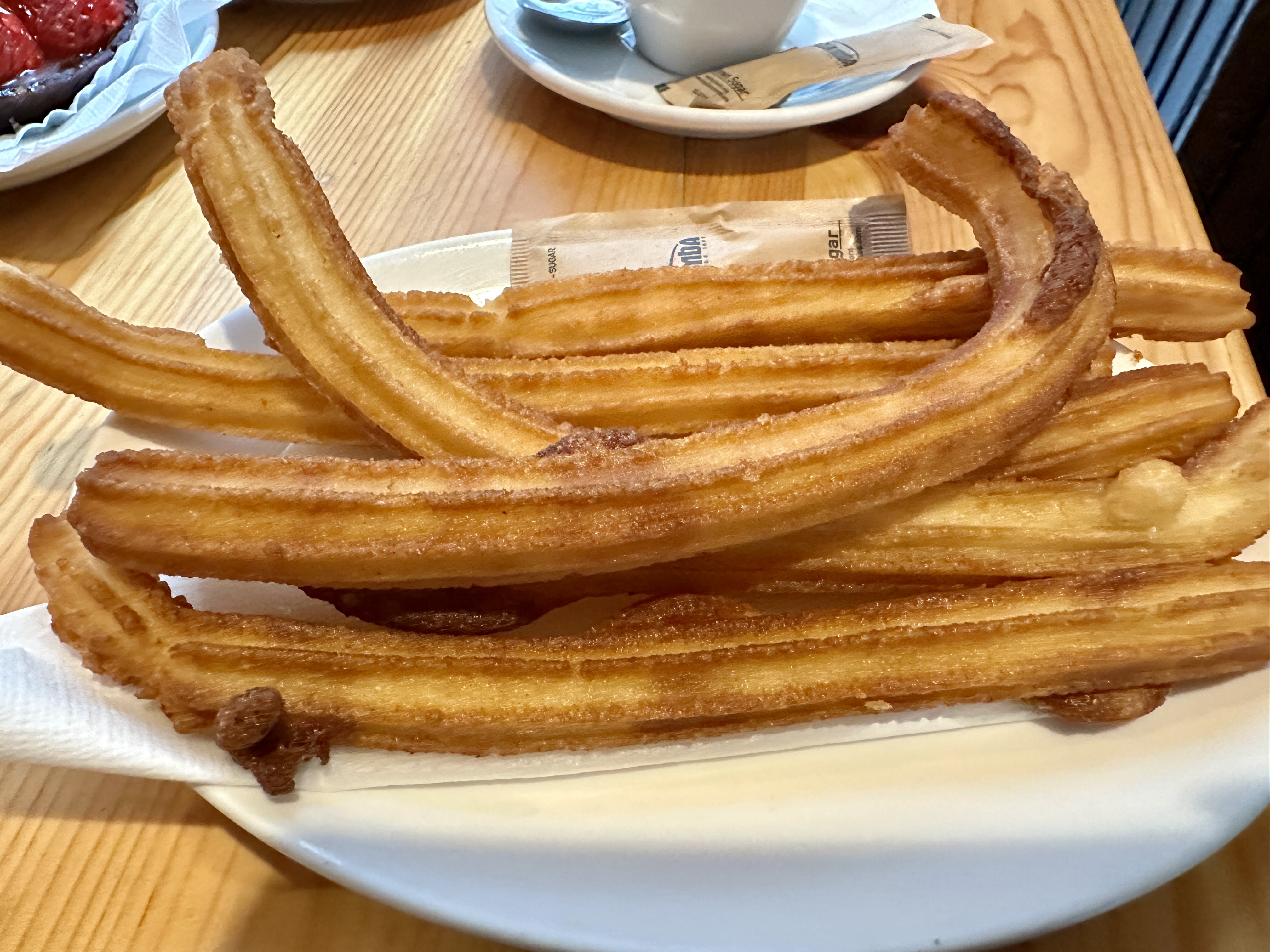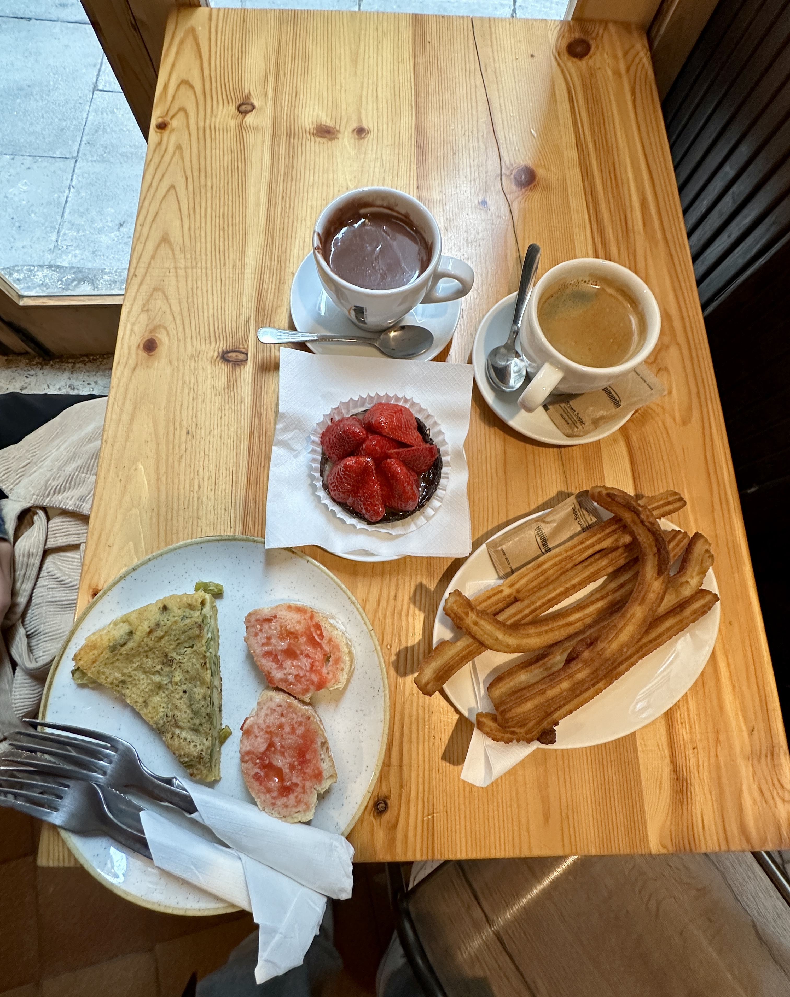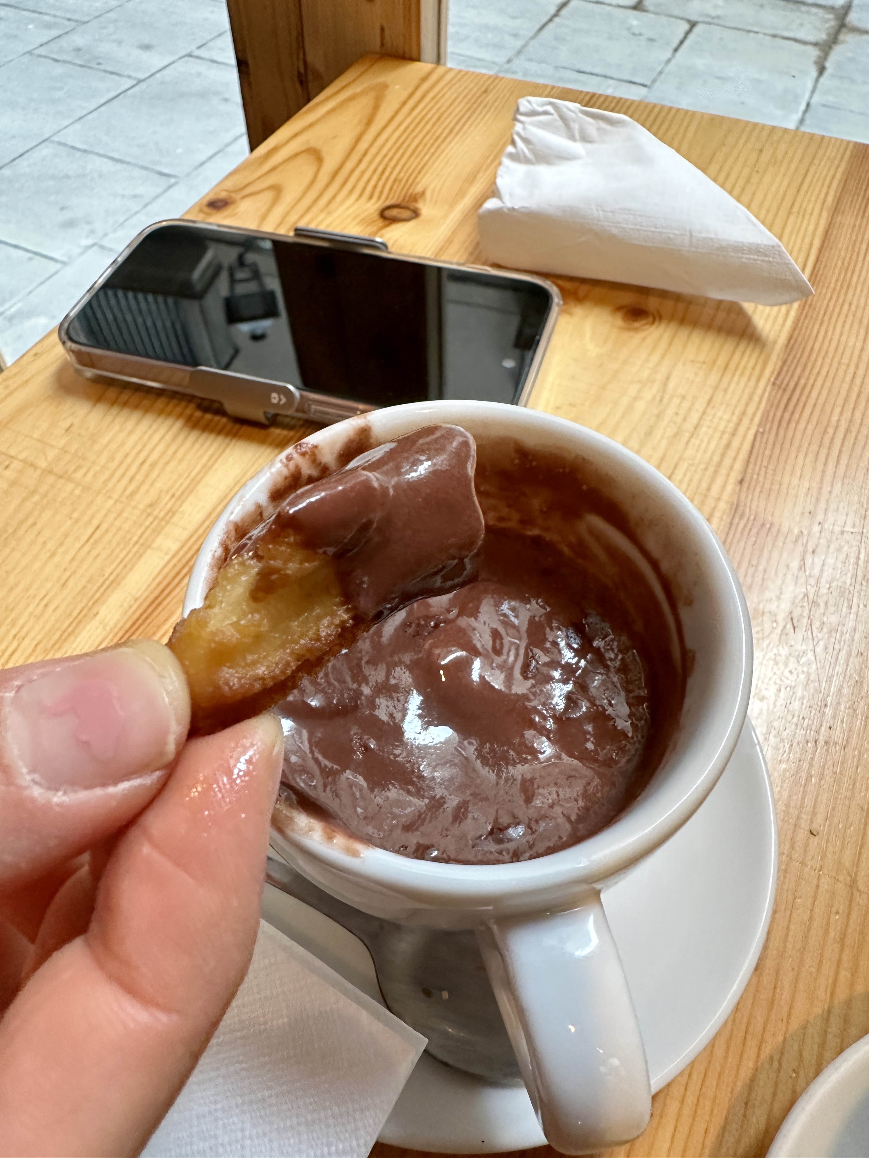 가봤던 곳 중 The Vegan Corner 라는 곳은 비건 카페이지만 맛있는 디저트가 가득했고 무엇보다 스페인 대표 간식인 츄러스가 너무 맛있었는데, 이 바삭한 츄러스를 핫초코에 찍어 먹으니 맛이 더욱 일품이었습니다.