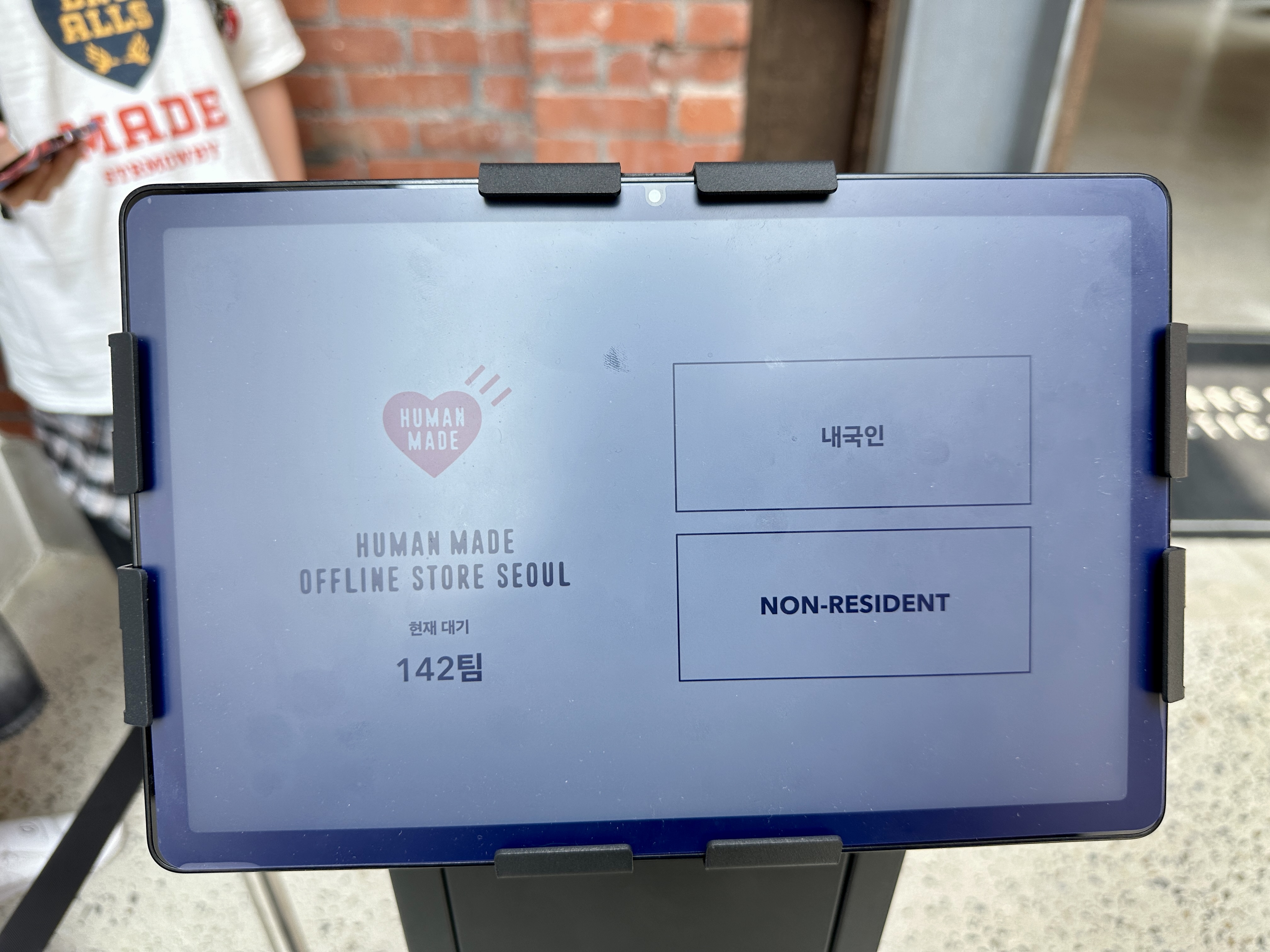 약 1시간 반에서 두시간정도 웨이팅 한 후 휴먼메이드 성수점에 들어갈 수 있었습니다.