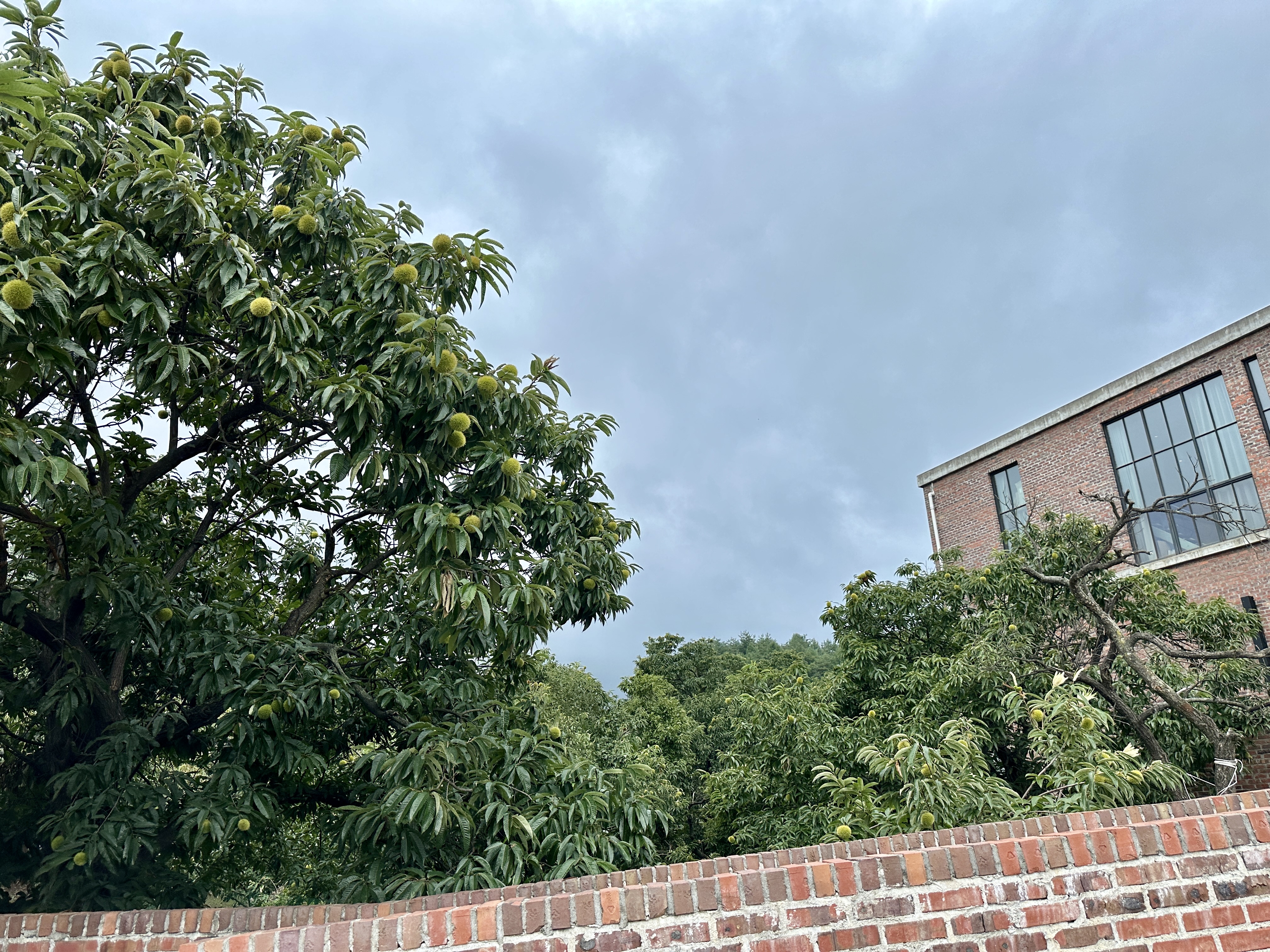 강릉 테라로사 본점 앞뒤로 밤나무가 참 많았는데, 가을이 되감에 따라 밤나무의 밤송이 들이 입을 열고 떨어질 준비를 야무지게 하고 있었습니다.