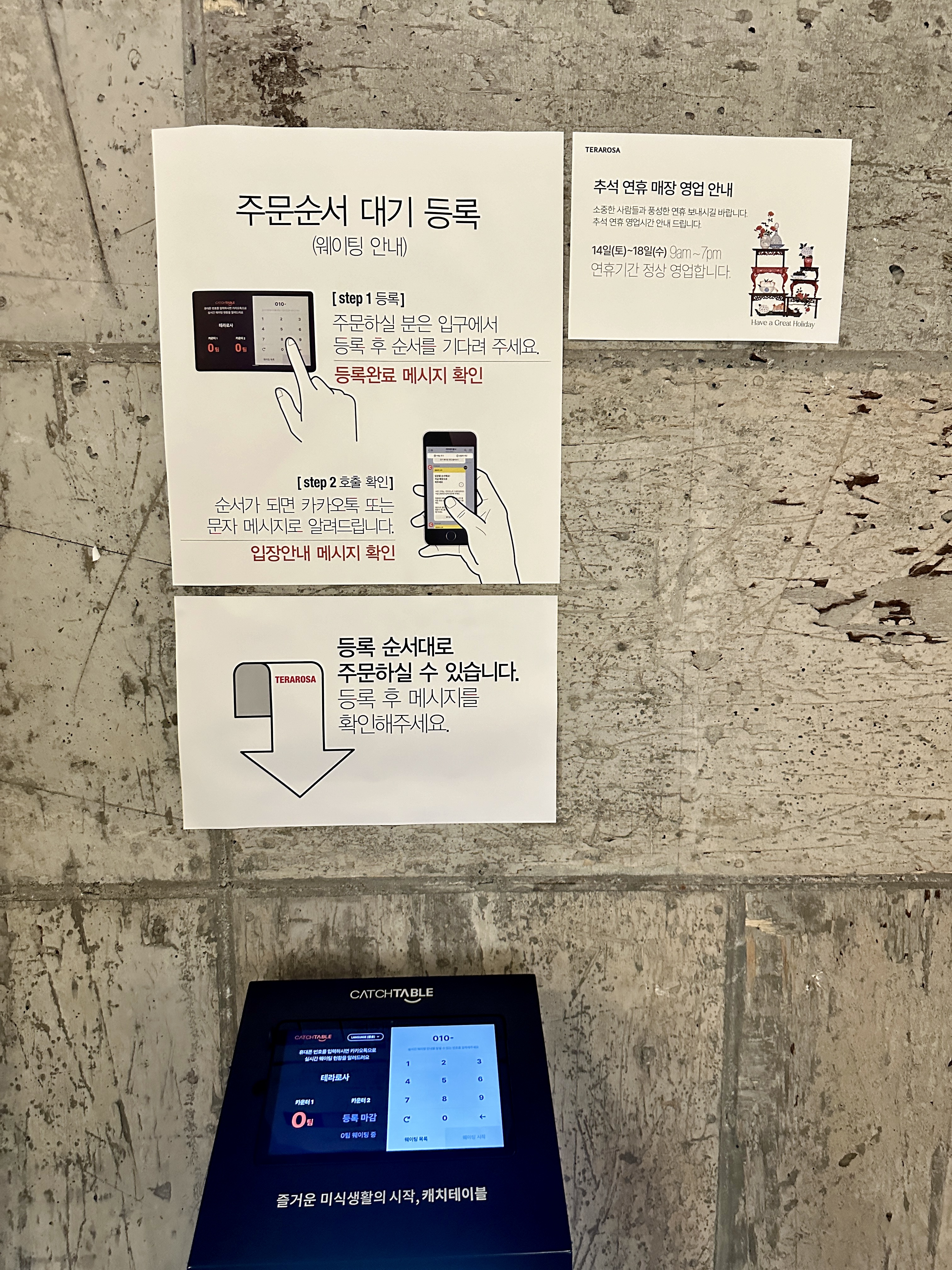 강릉 테라로사 본점 이구에는 웨이팅을 안내해주는 키오스크가 있는데 평일이라 이날에는 그냥 바로 입장하였습니다.