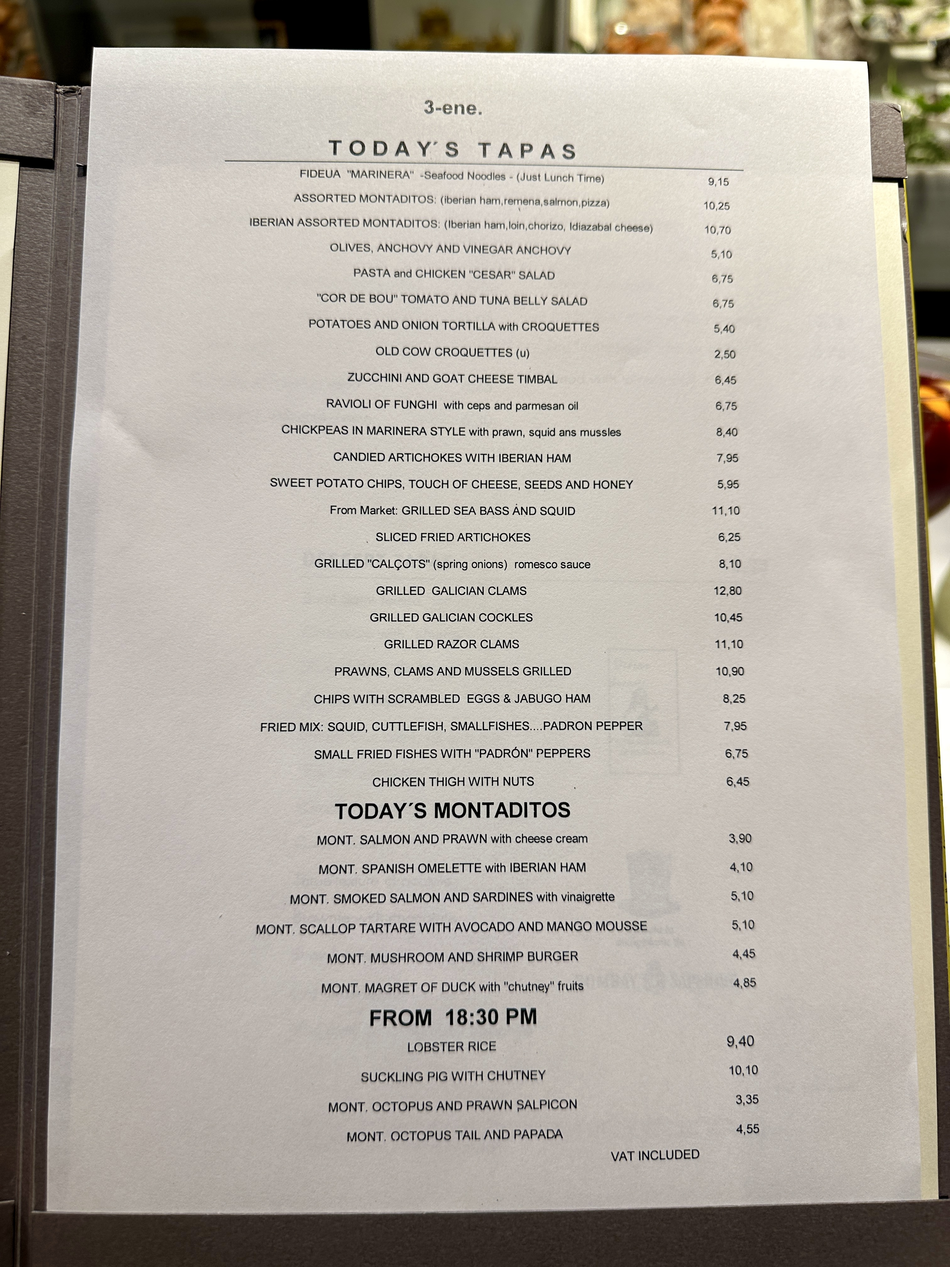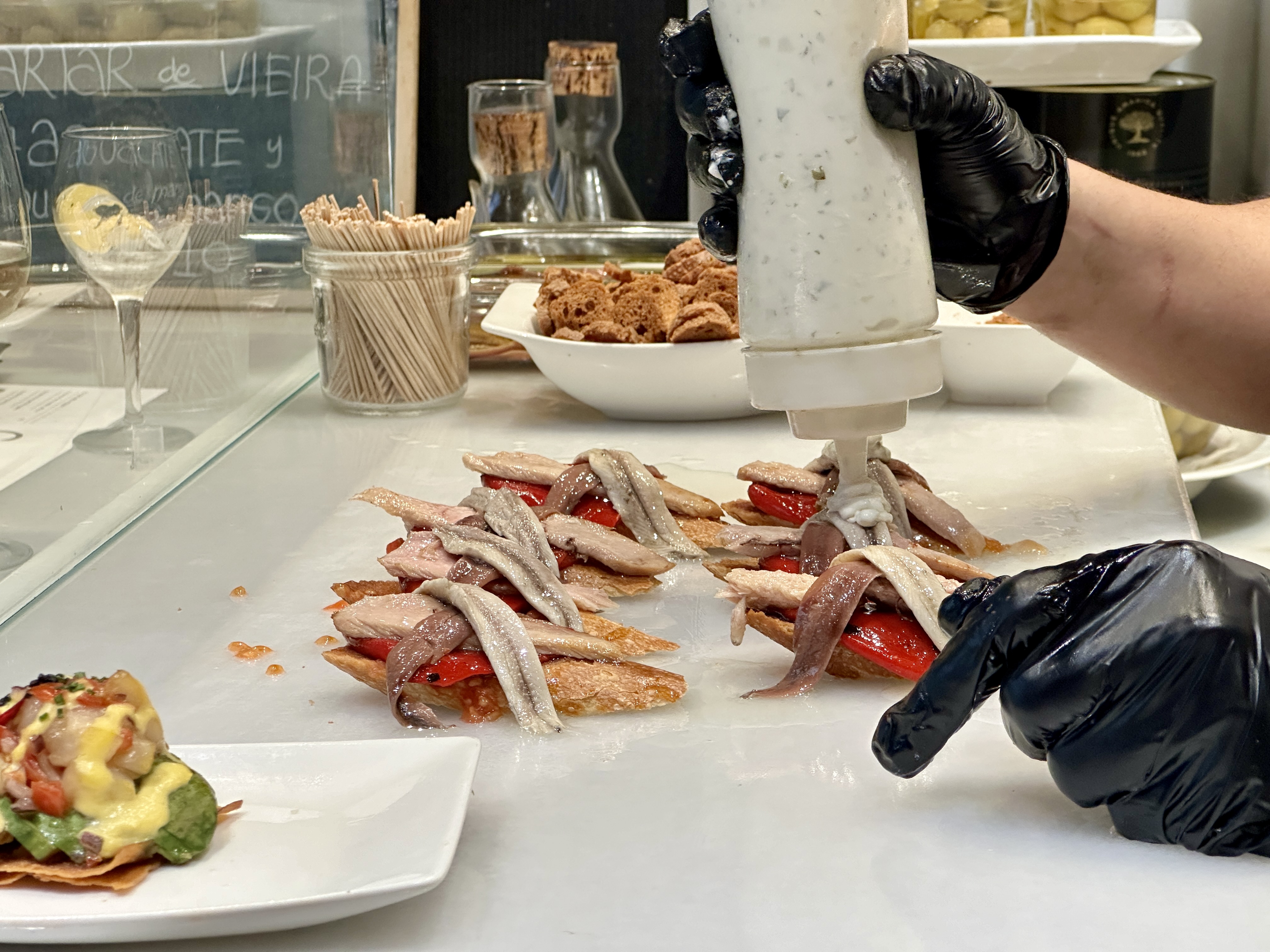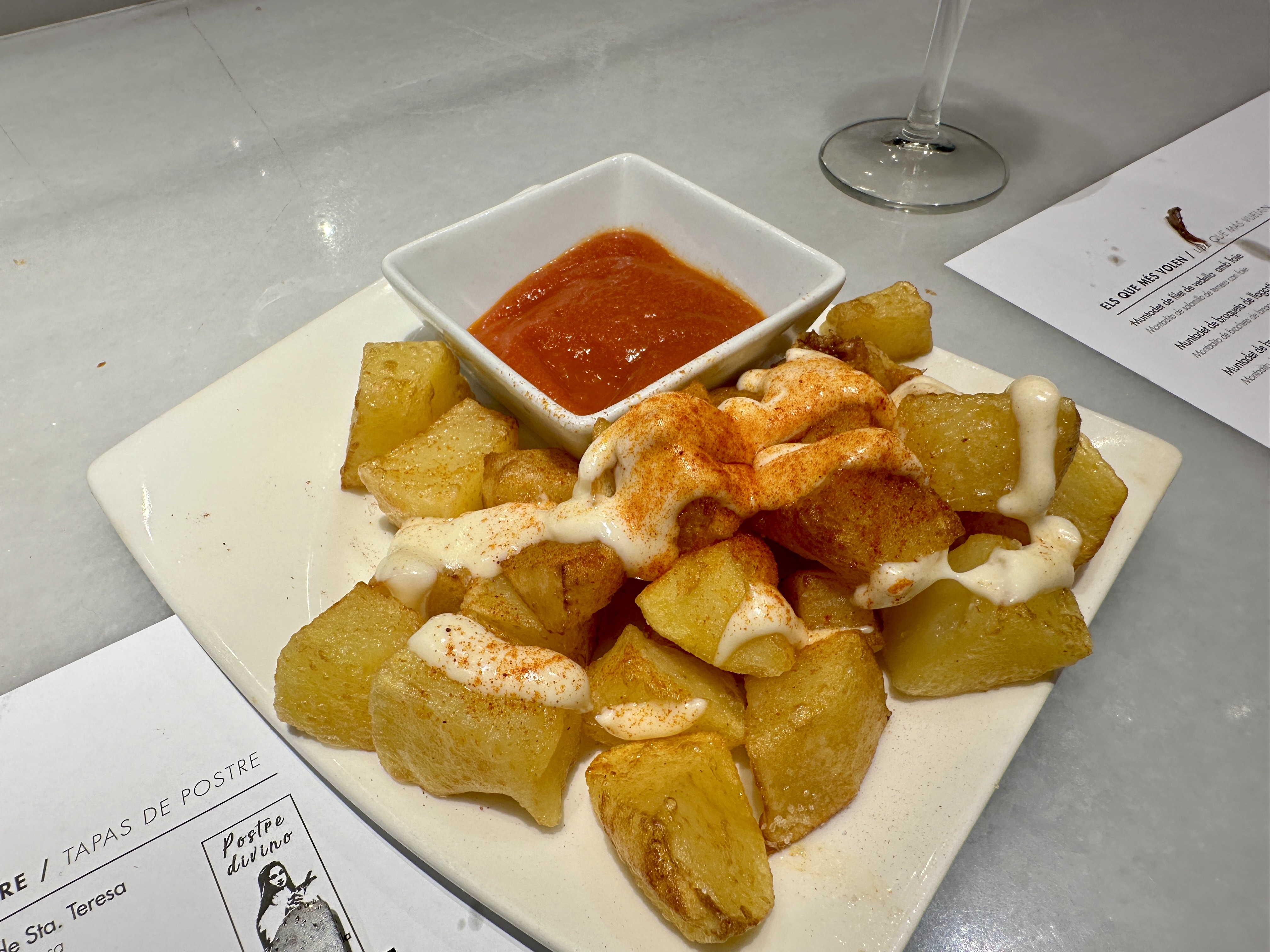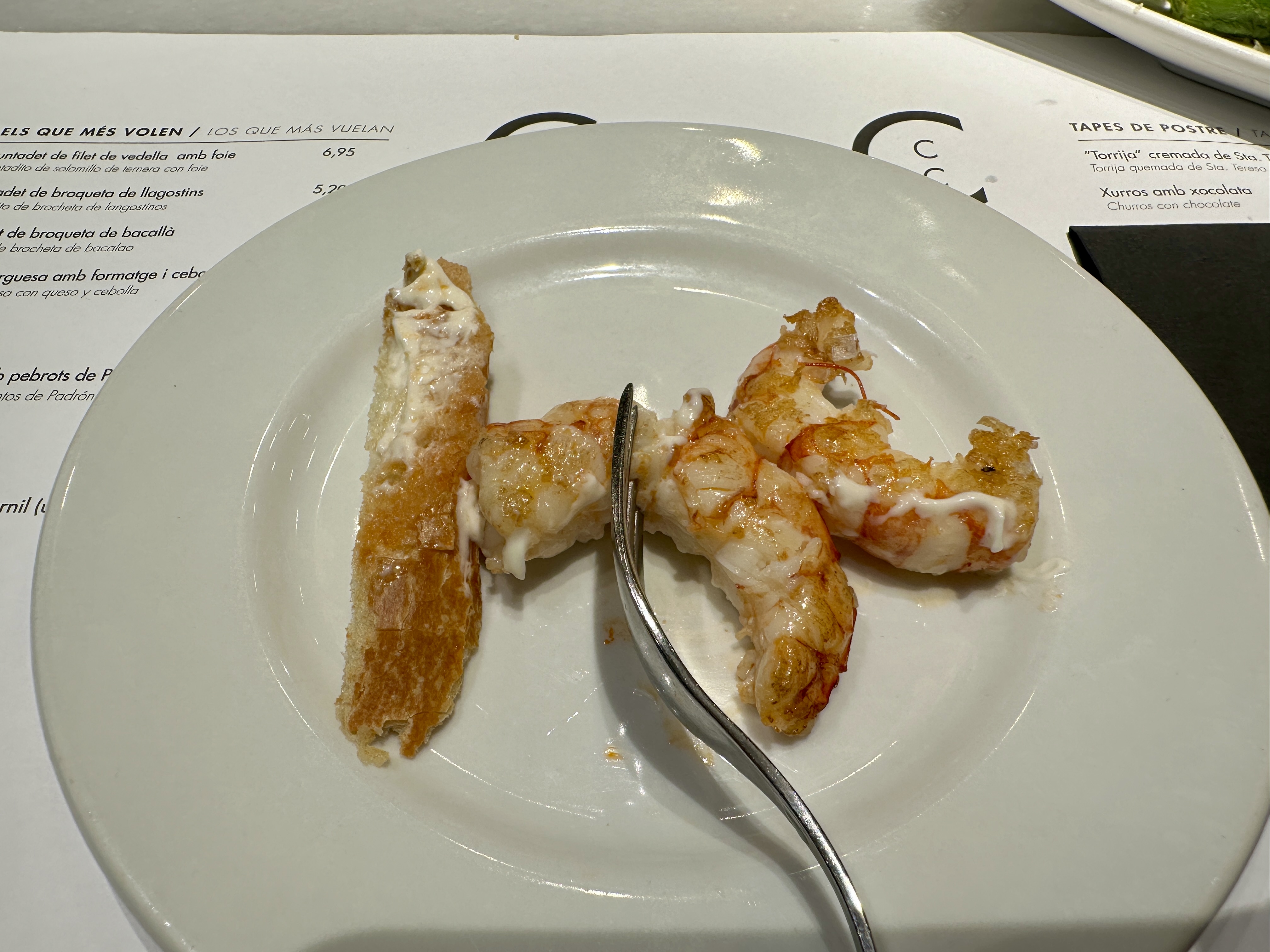 메뉴로는 바르셀로나 해산물 요리부터 거의 모든 요리가 다 가능했고, 간단하게 맛볼 수 있는 가벼운 요리들도 많아서 와이프와 저는 간단한 요리들을 많이 시켜서 이것저것 맛보기로 했습니다.