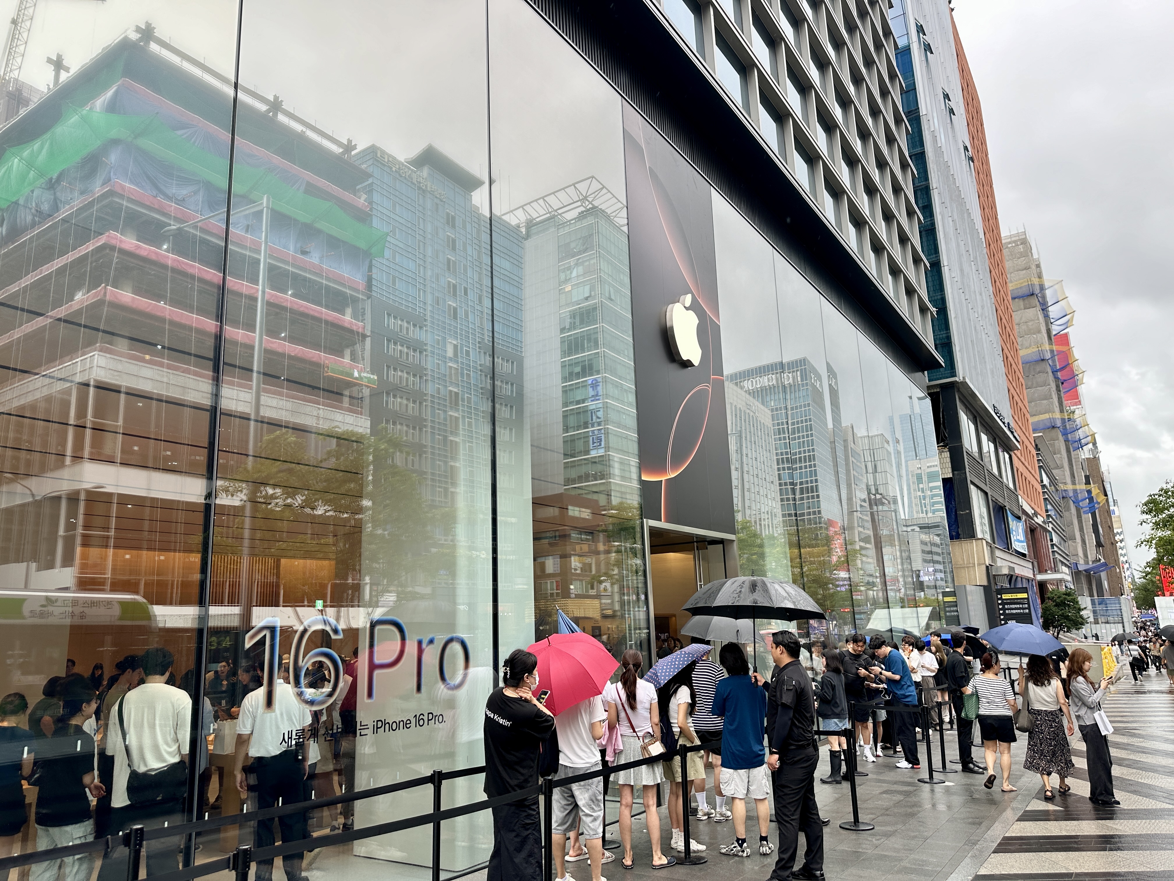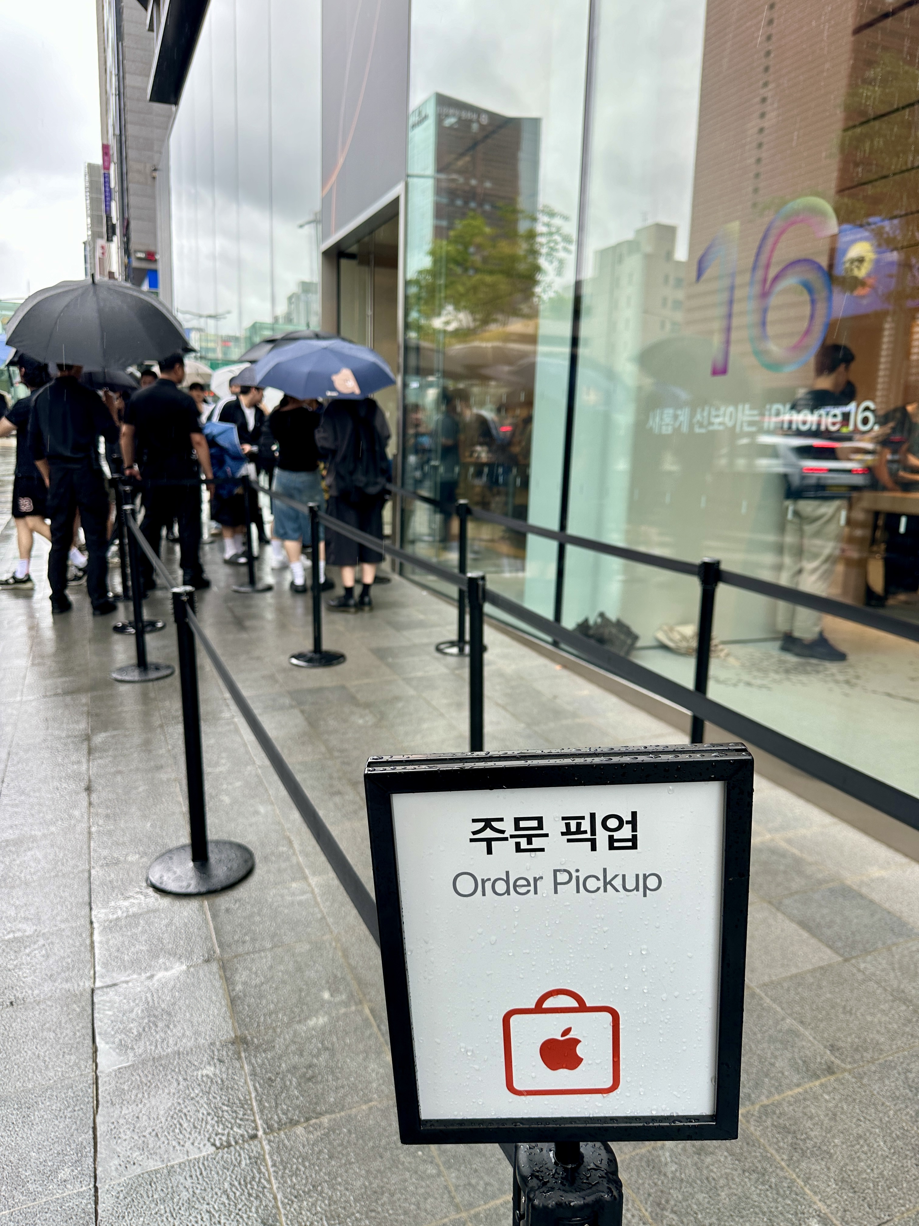 애플의 아이폰 1차 출시국인 첫날 미리 사전예약해 둔 아이폰 16 프로맥스를 픽업하러 정해진 시간에 강남 애플스토어로 향했습니다. 비도오고 아이폰 16에 대한 실망 기사가 많았는데도 역시나 애플과 아이폰 걱정은 하는게 아니라는걸 입구의 대기중인 인파를 보며 또 한번 실감 할 수 있었습니다.