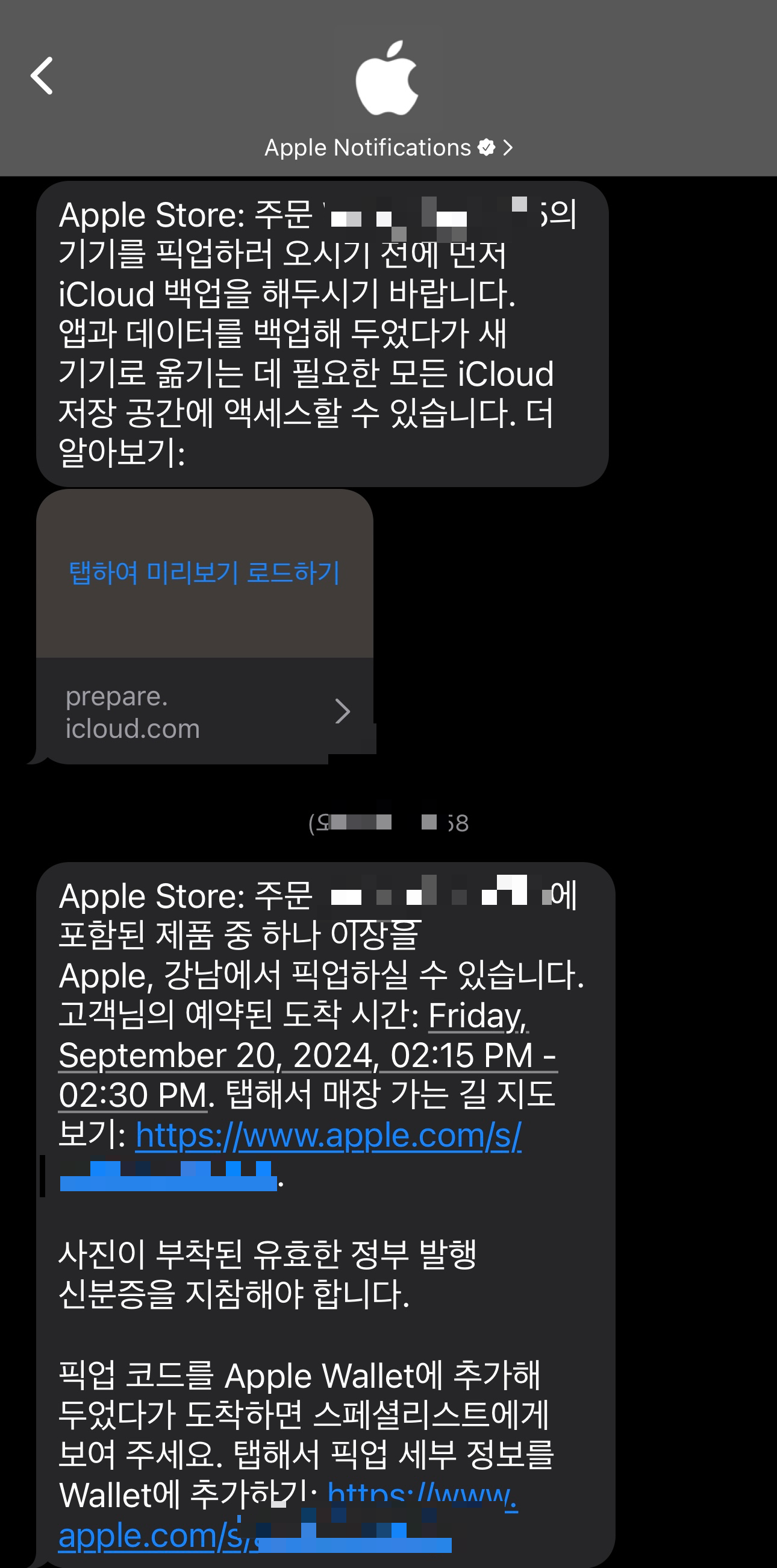 먼저 사전예약 안내 문자를 보여드리면 QR코드 스캔 후 간단한 설명을 해주시는데, 저는 아이폰을 2009년부터 사용한 유저라 거의 필요가 없어보이셨는지 바로 상품을 갔다주러 가셨습니다.