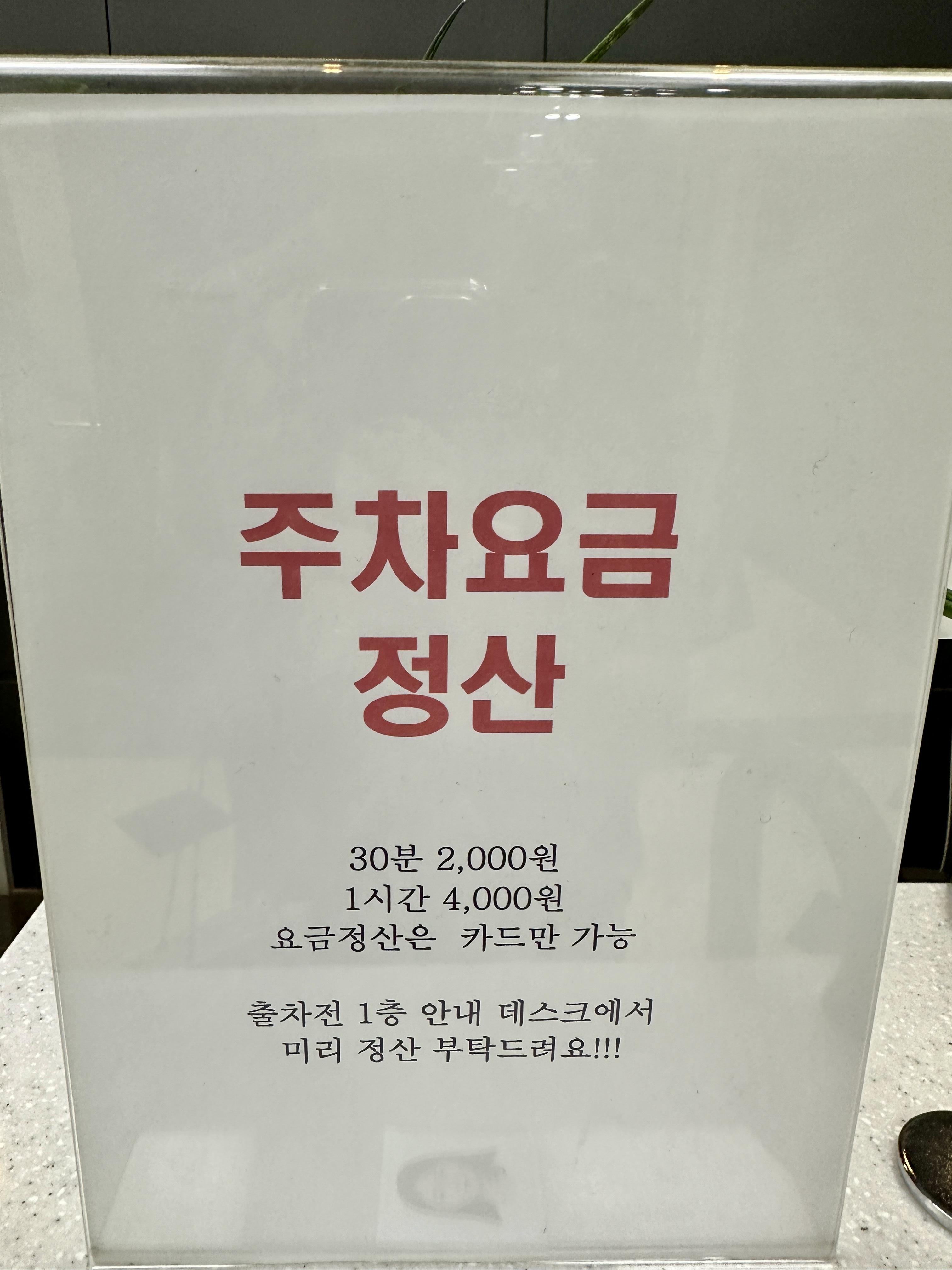 생각보다 공간도 많고 주차요금도 1시간에 4천원 수준이라 강남이라는 위치를 고려했을 때, 합리적이었습니다.