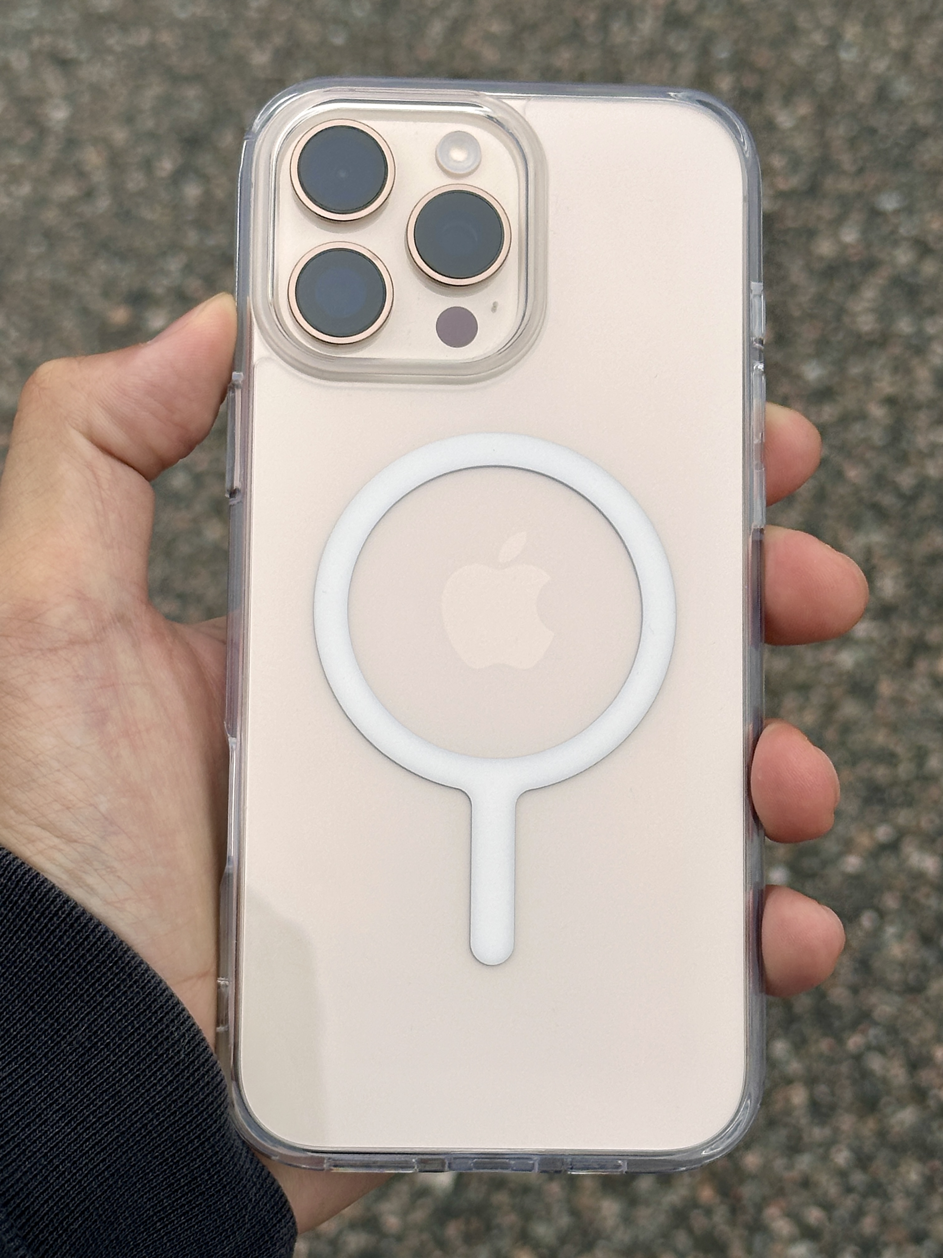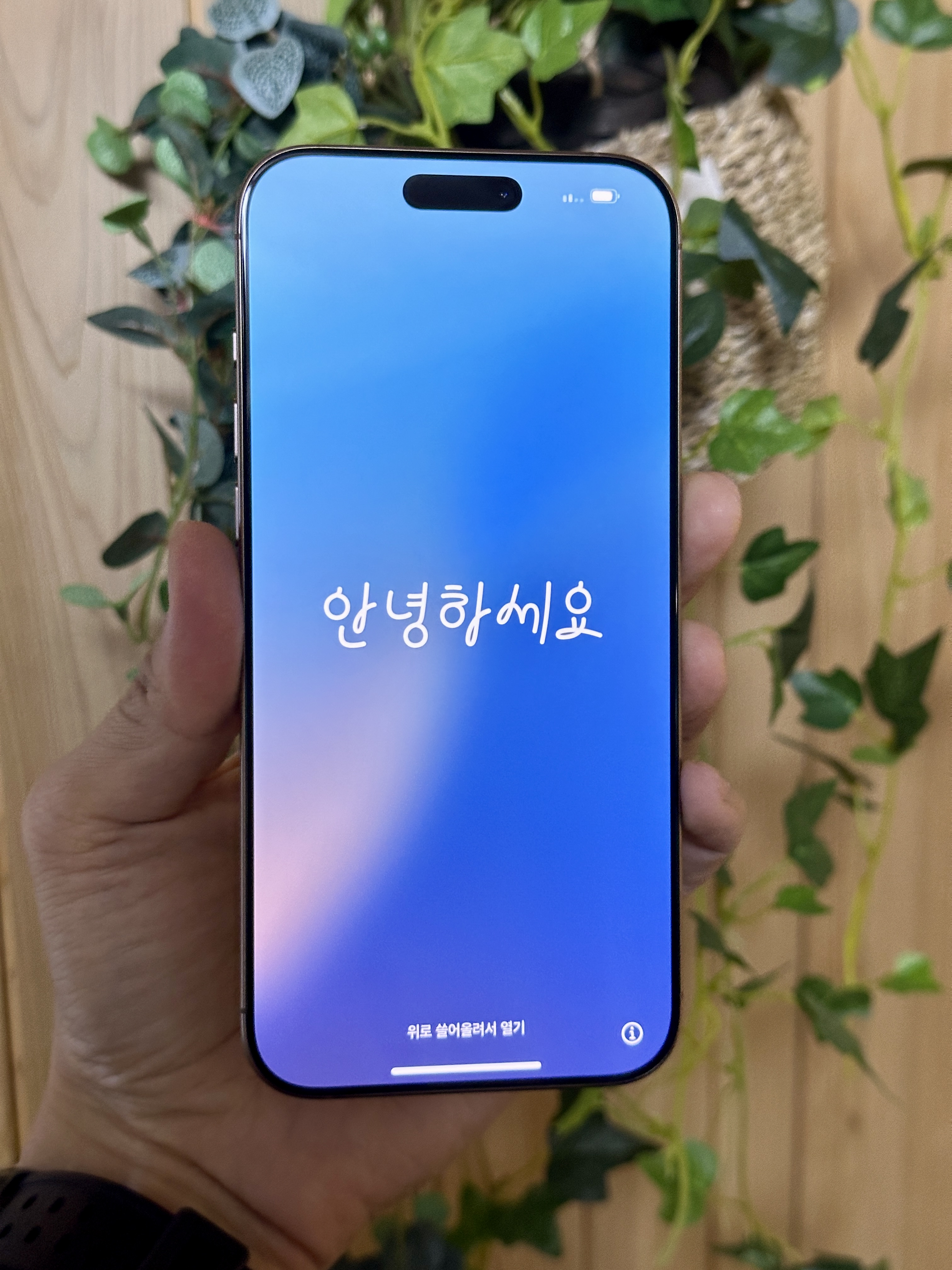 데저트 색상은 예전의 아이폰 골드나 로즈골드 향수를 불러일으키고, 16프로맥스의 얇아진 베젤 덕에 더 와이드한 화면을 즐길 수 있어서 전작인 아이폰 14나 15 프로맥스에 비해서도 좀 더 시원한 화면을 제공합니다.