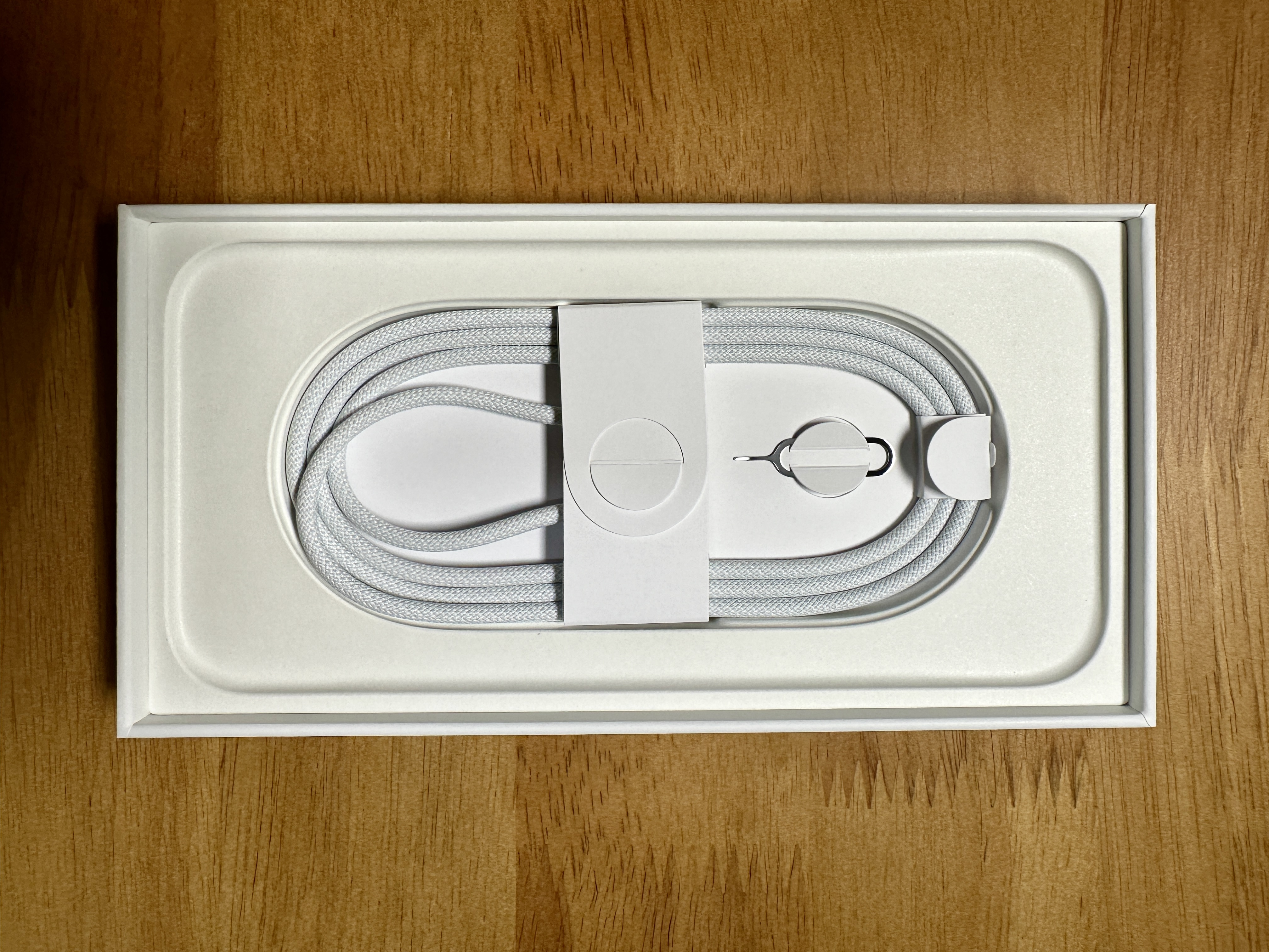 15시리즈 부터 바뀐 C타입 케이블이 하나 들어있고, 유심트레이를 열 때 쓰는 뾰족한 침이 하나 들어있습니다.
