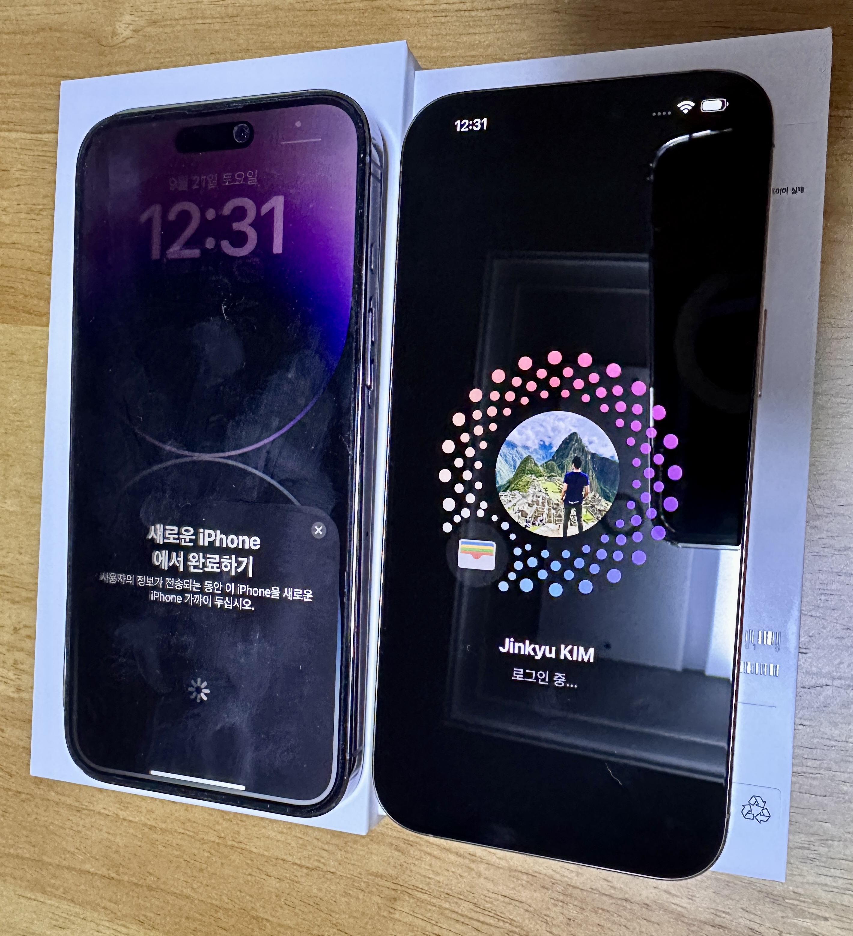 새 아이폰 구매시, 기존 아이폰을 옆에 두면 저절로 사진을 포함한 모든 데이터와 앱이 이동합니다.