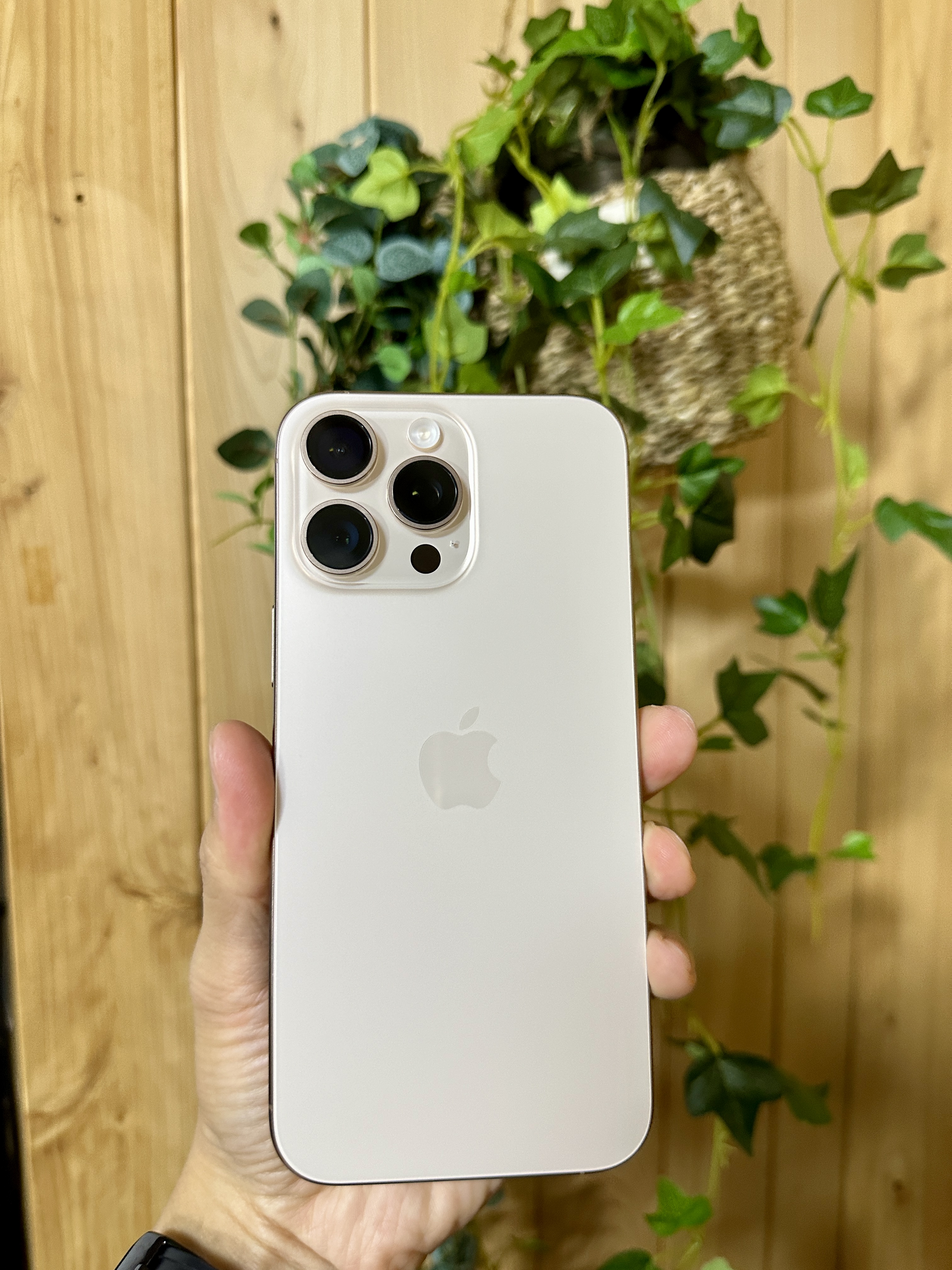 데저트 색상은 예전의 아이폰 골드나 로즈골드 향수를 불러일으키고, 16프로맥스의 얇아진 베젤 덕에 더 와이드한 화면을 즐길 수 있어서 전작인 아이폰 14나 15 프로맥스에 비해서도 좀 더 시원한 화면을 제공합니다.