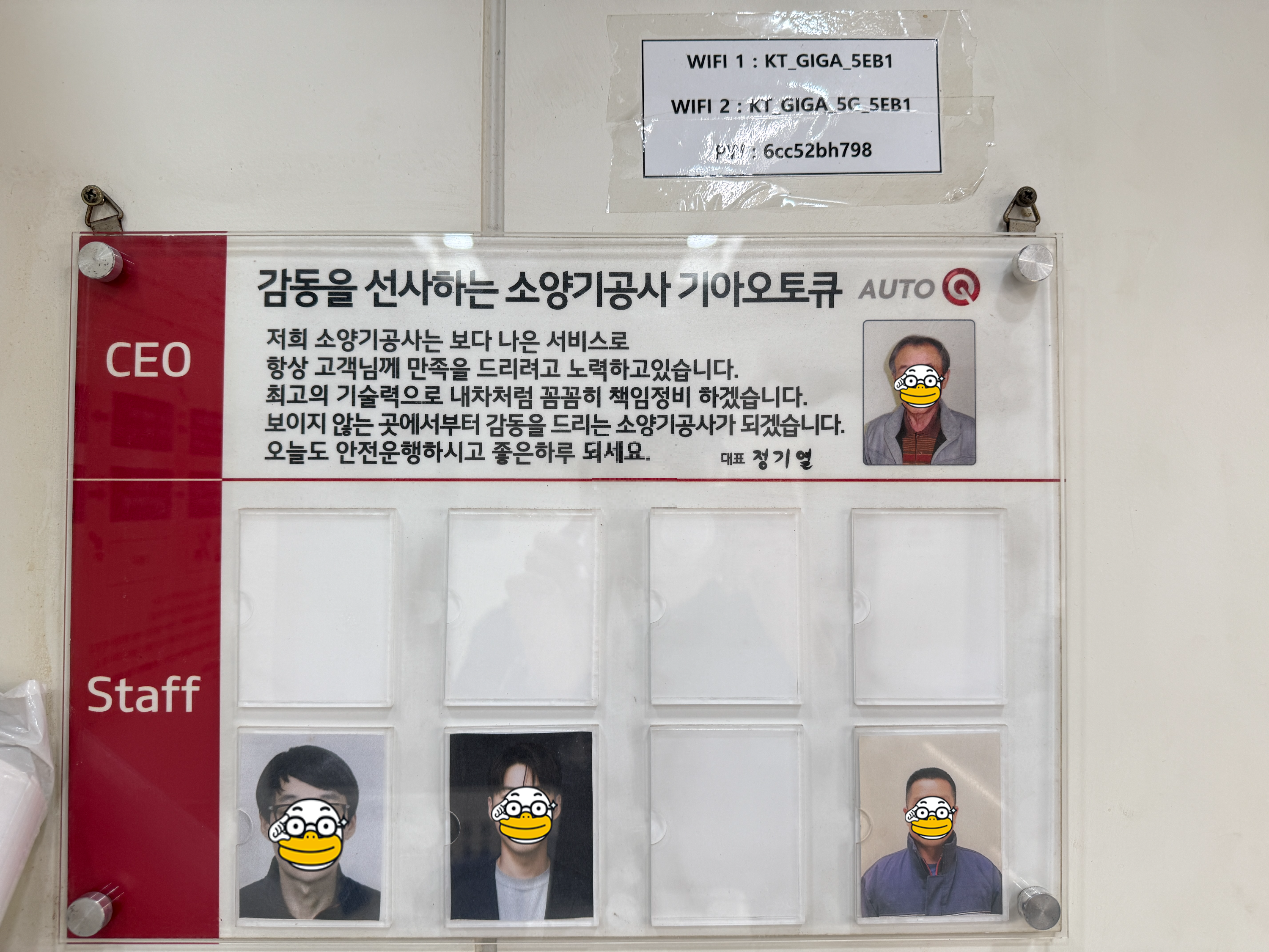 그래서 알아보다가 춘천 자동차 검사소인 소양기공사에서 기아 전문 차량 정비를 한다고 해서 찾아갔습니다.