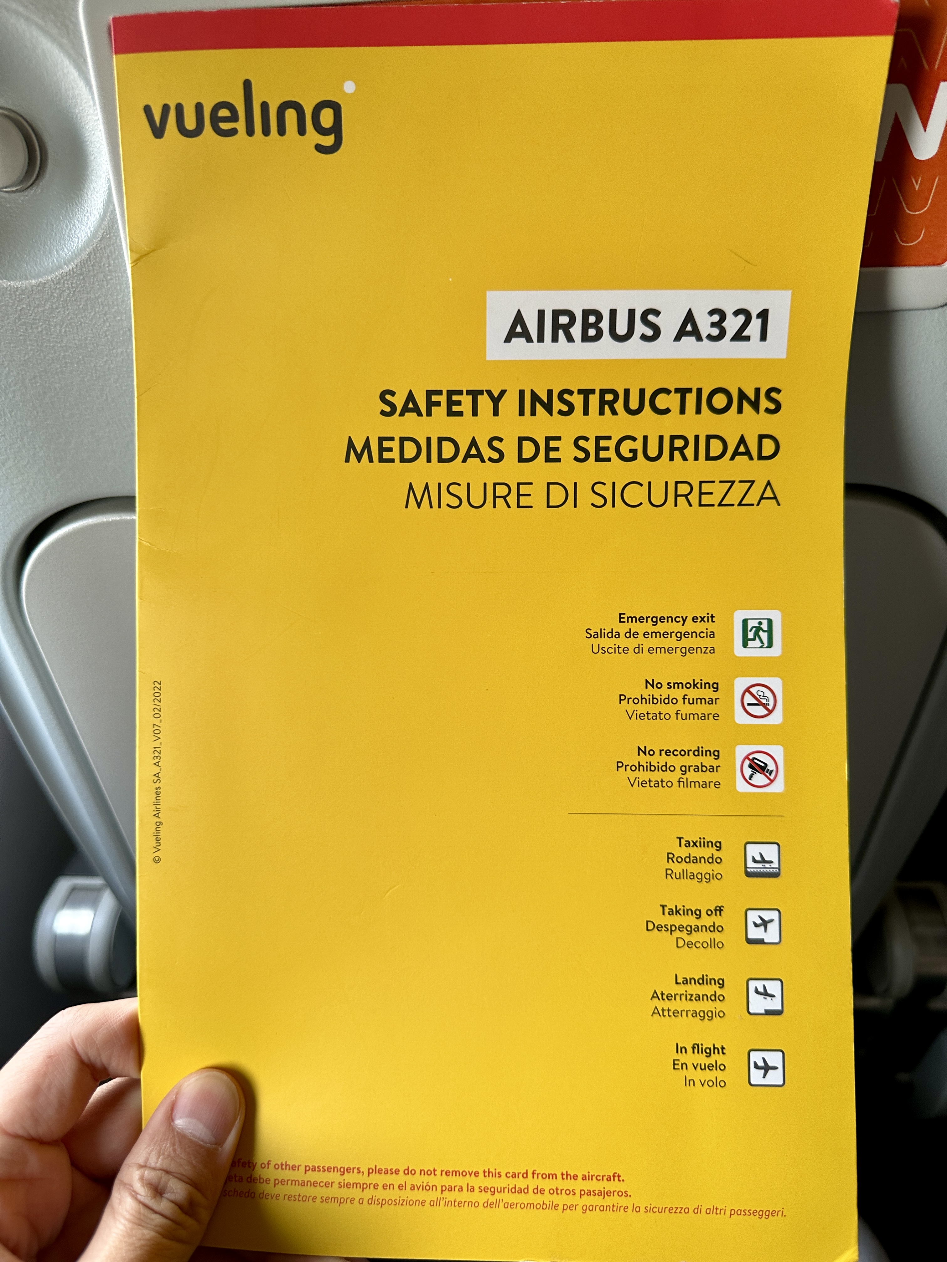 바르셀로나에서 팔레르모까지 가는 부엘링항공 VY6600 은 에어버스321 기종 A321 로 운항되었고, 저와 와이프는 약간의 비용을 더 주고 좌석이 더 넓은 SPACE PLUS 좌석을 구매했습니다.