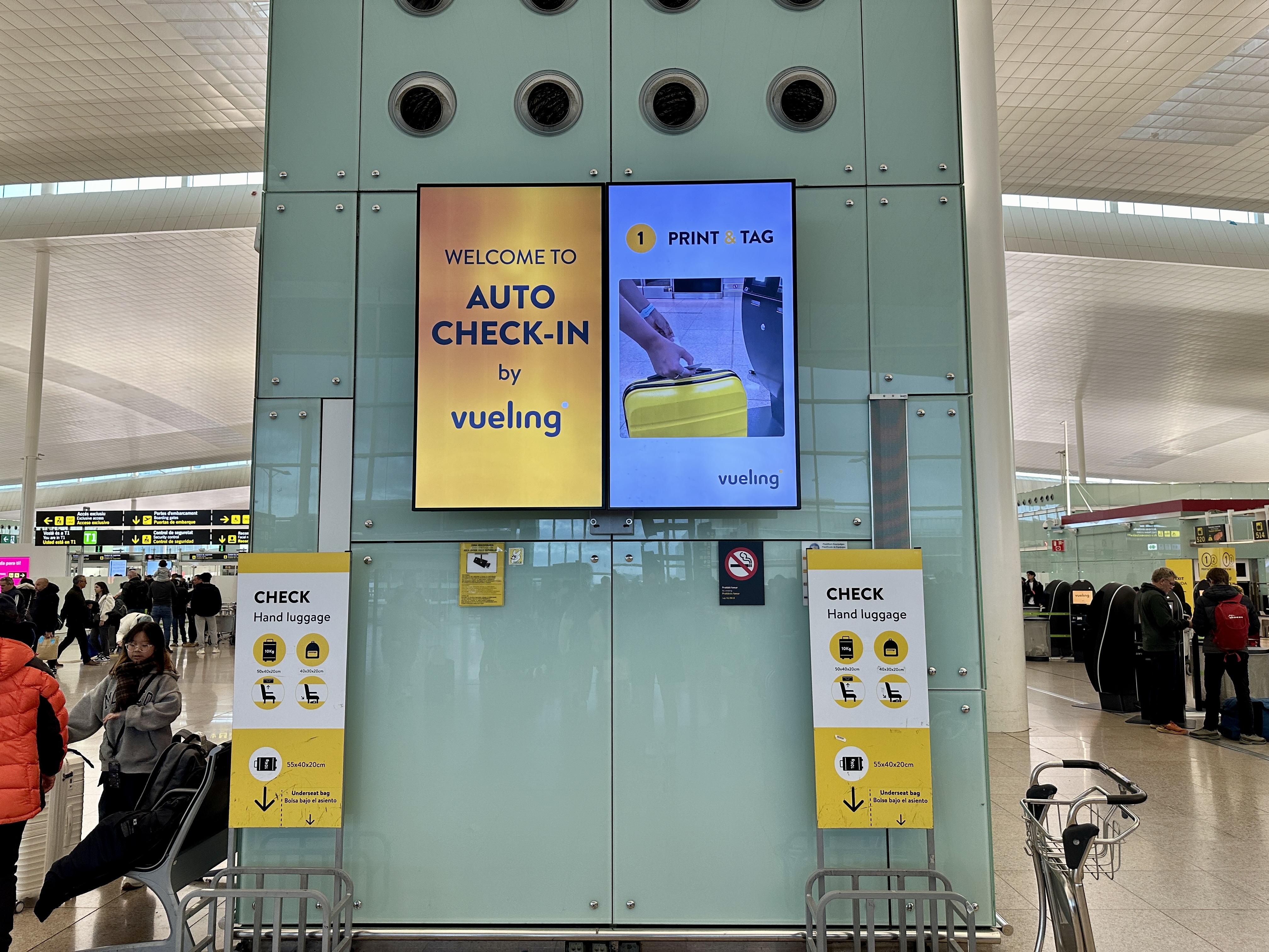 저비용항공사이지만 시스템이 굉장히 잘 되어 있어, 부엘링항공 체크인은 무인으로 키오스크로 빠르고 간편하게 이루어집니다.