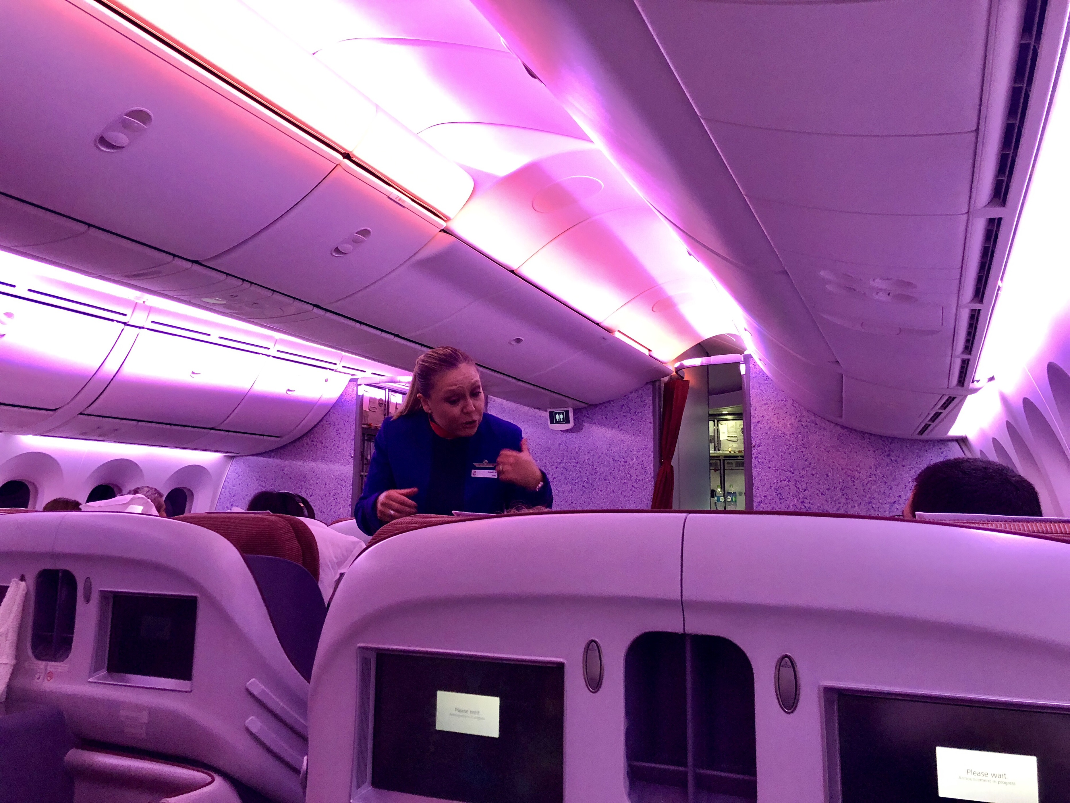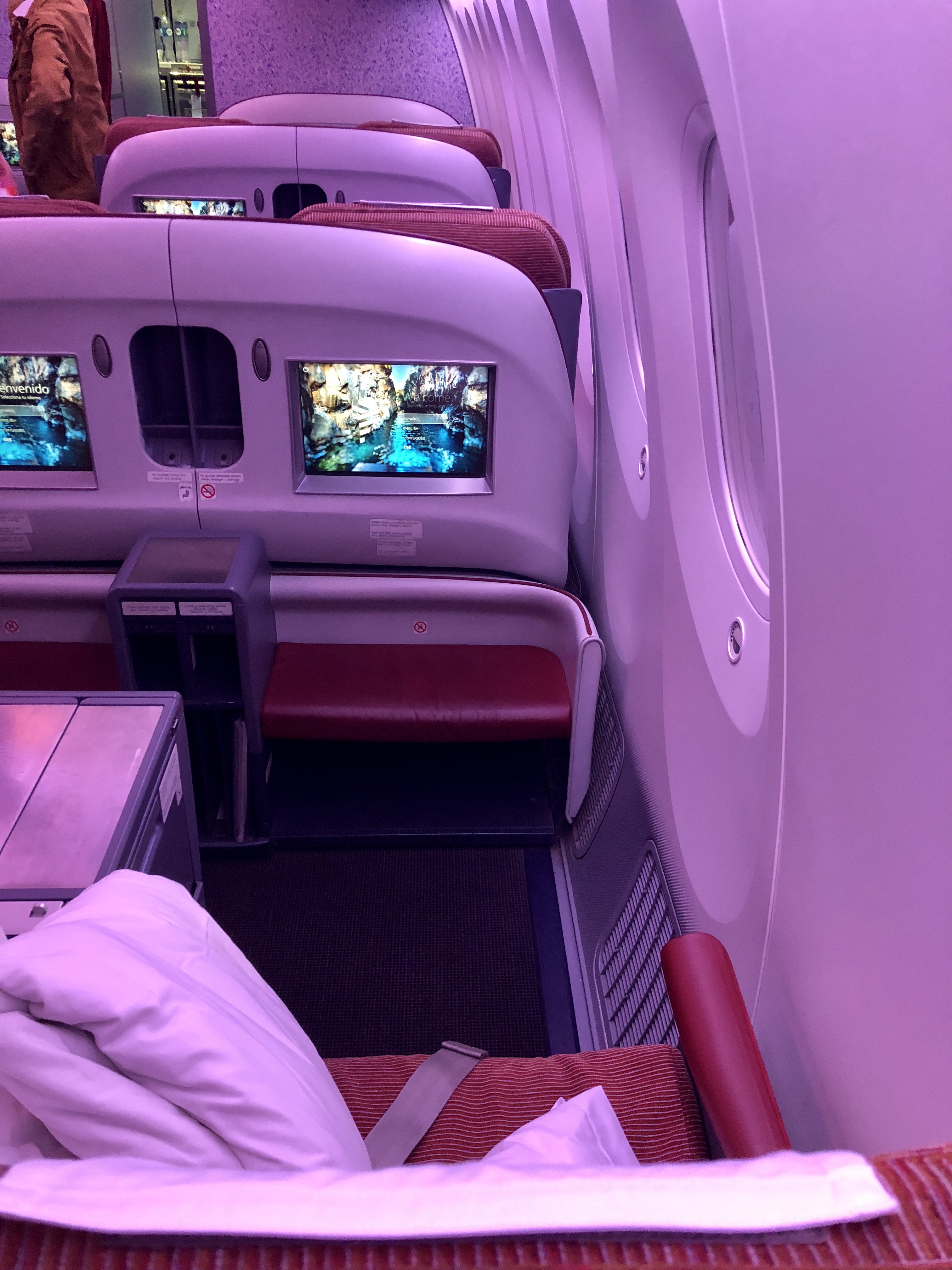 잠이 잘오는 파랑색 조명으로 해두고 비행내내 아주 잘 잤다.