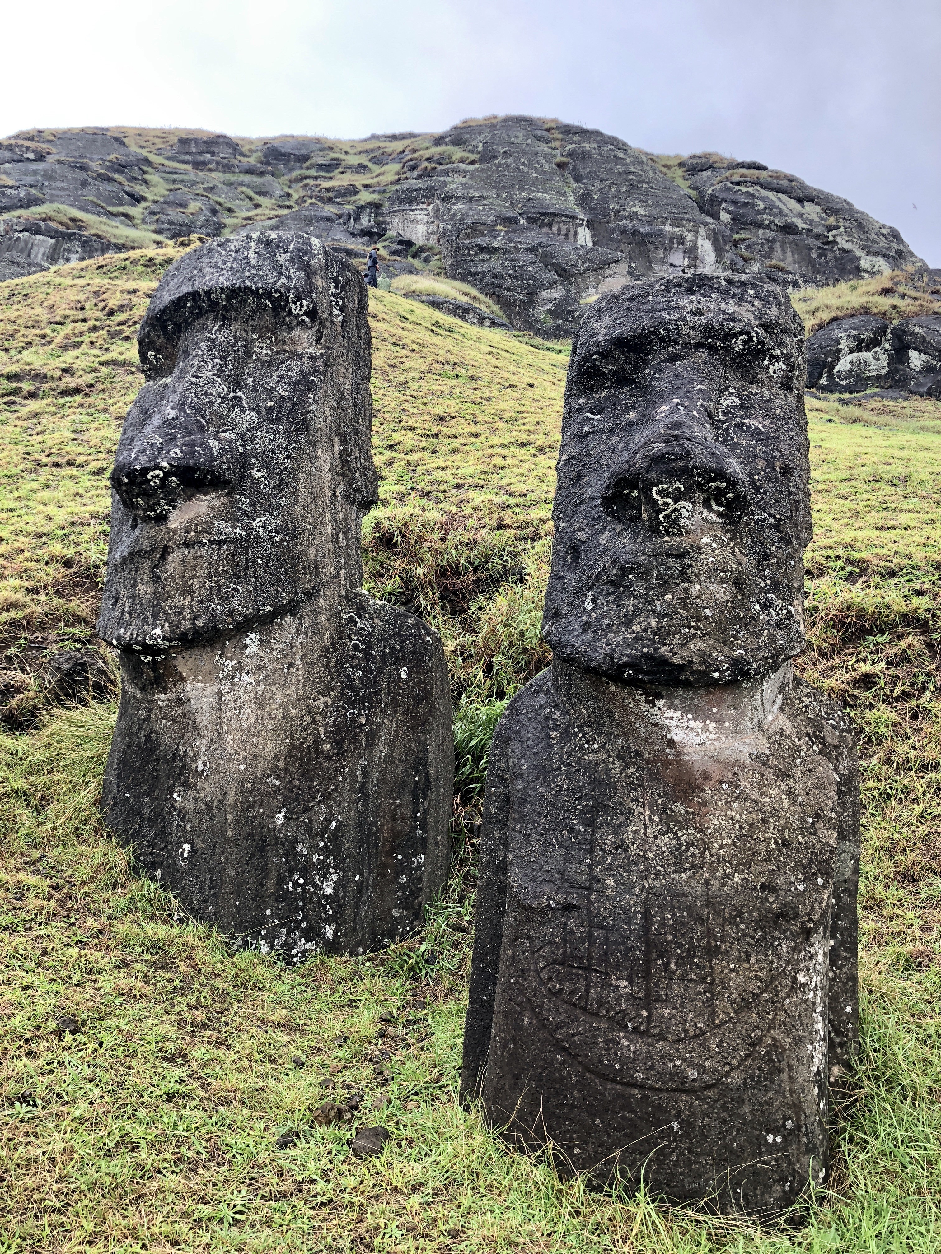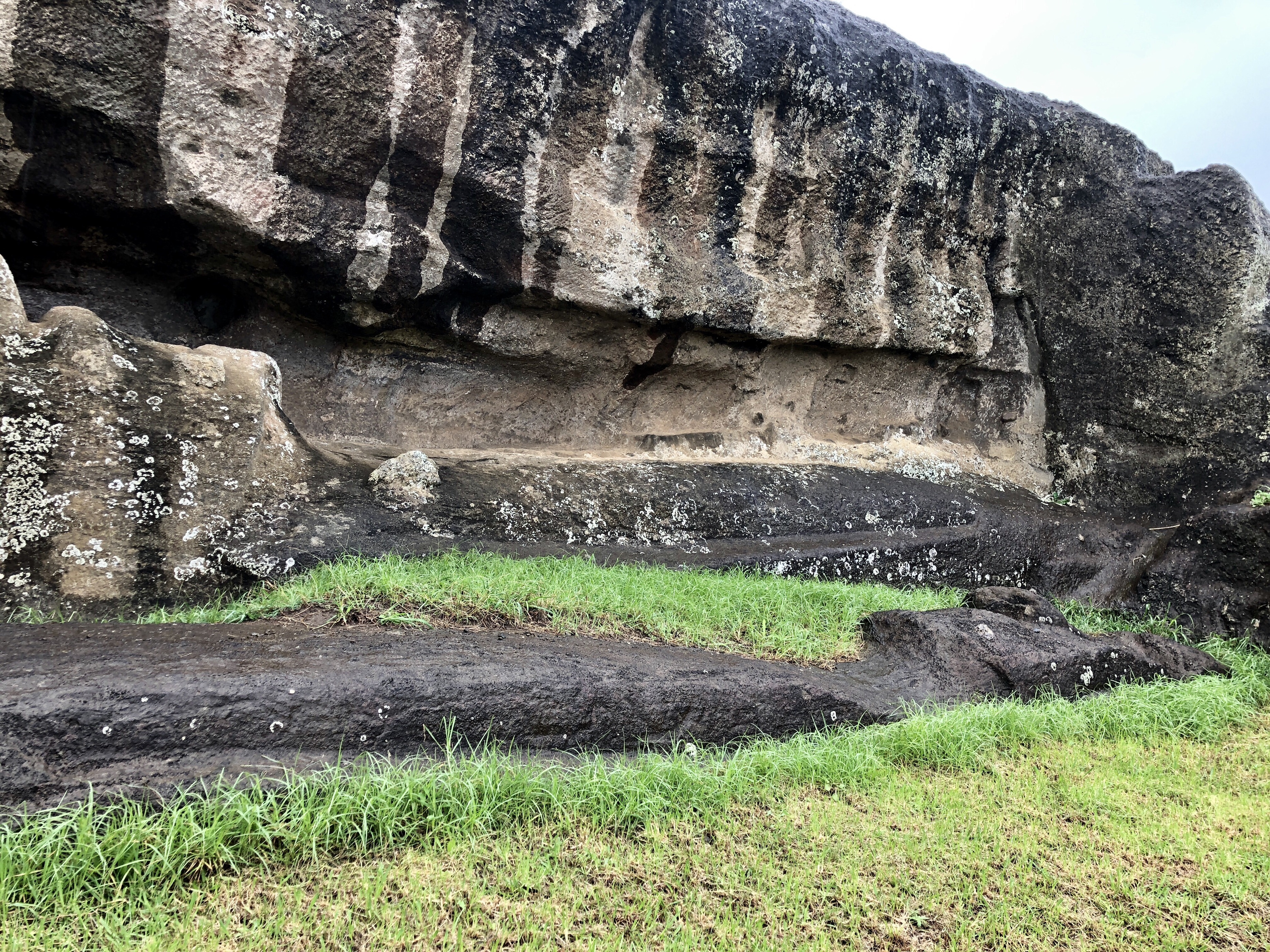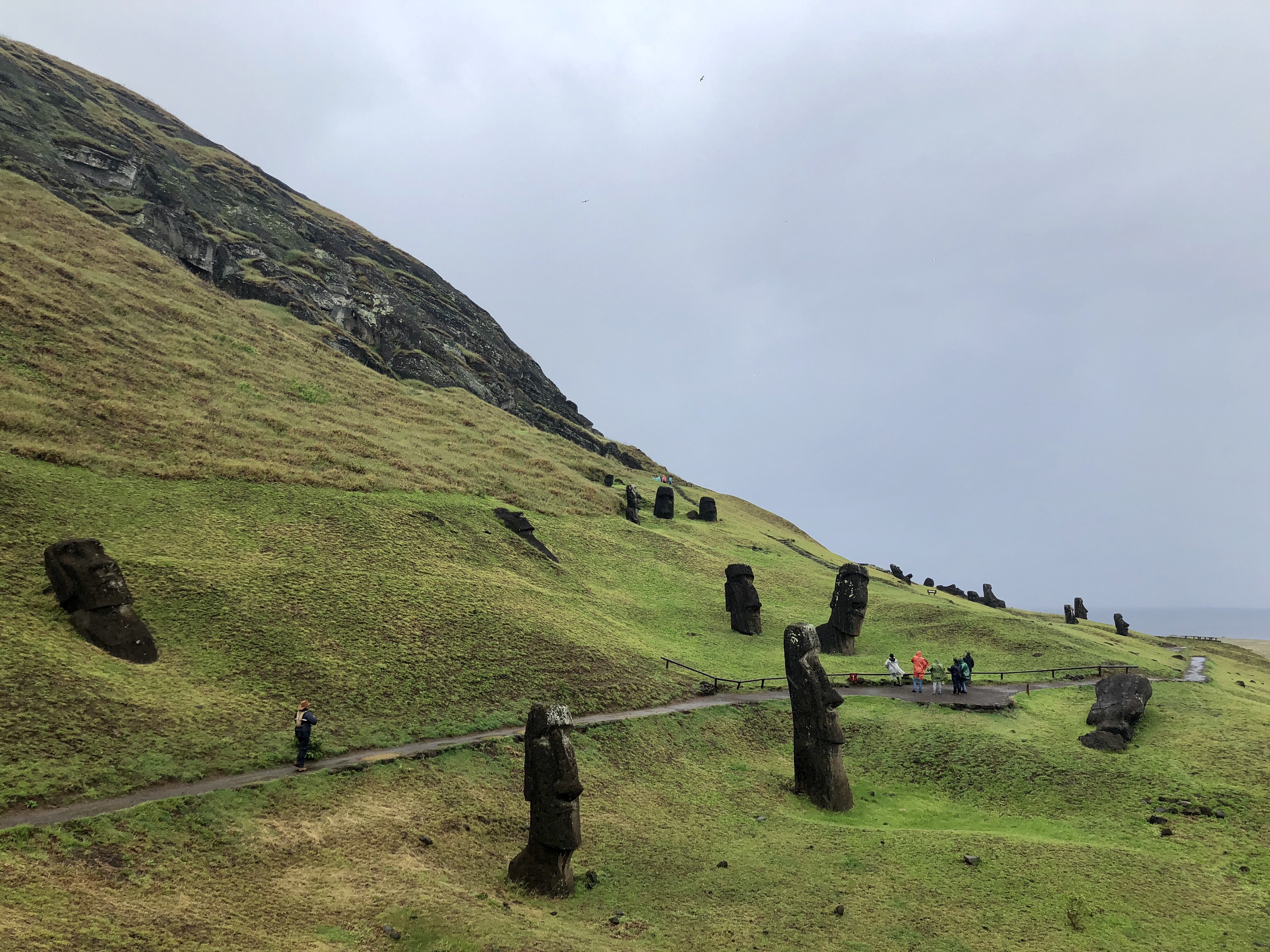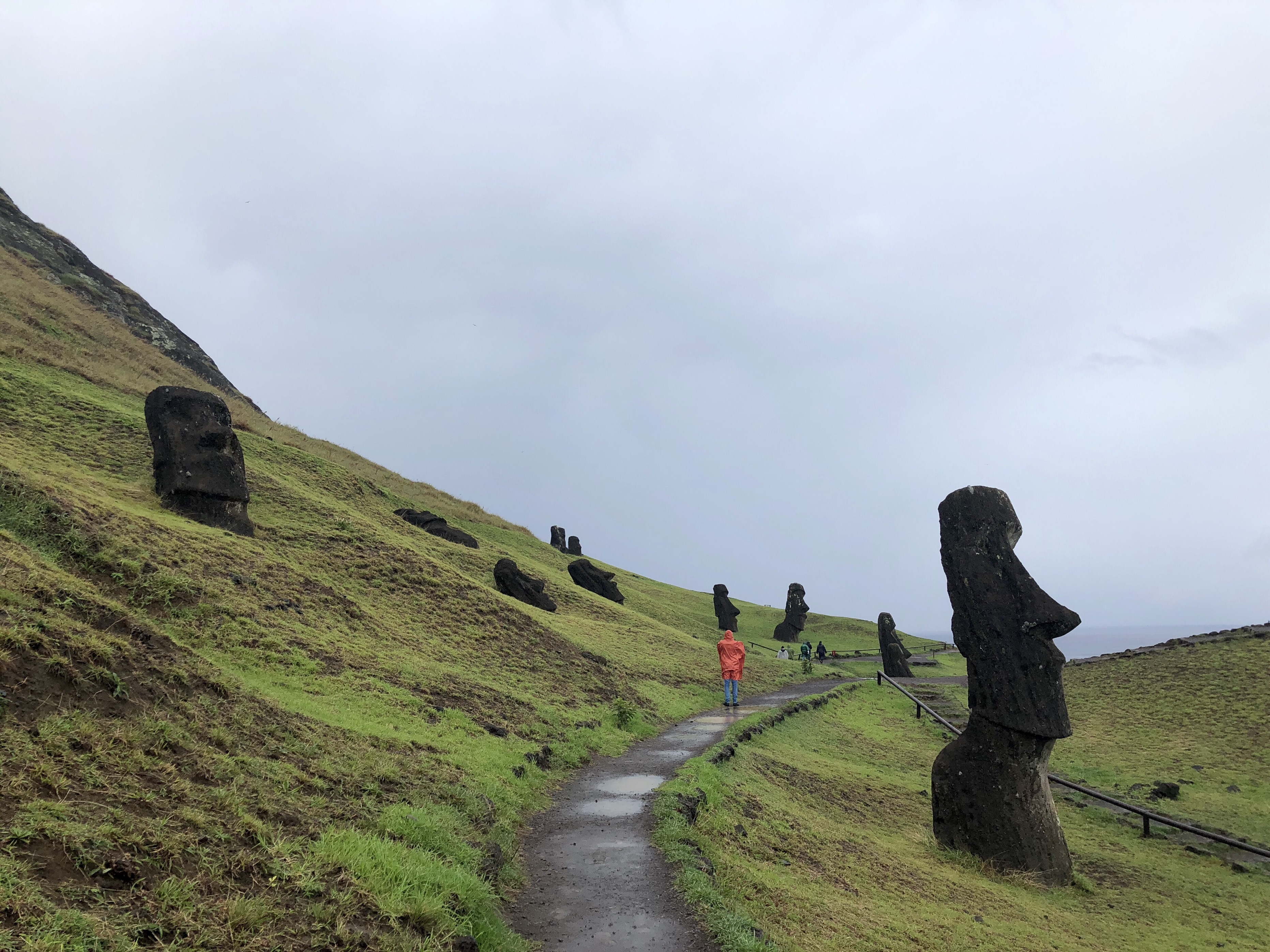 비가 내리는 모아이 제조 공장 라노 라라쿠로 들어가본다.
