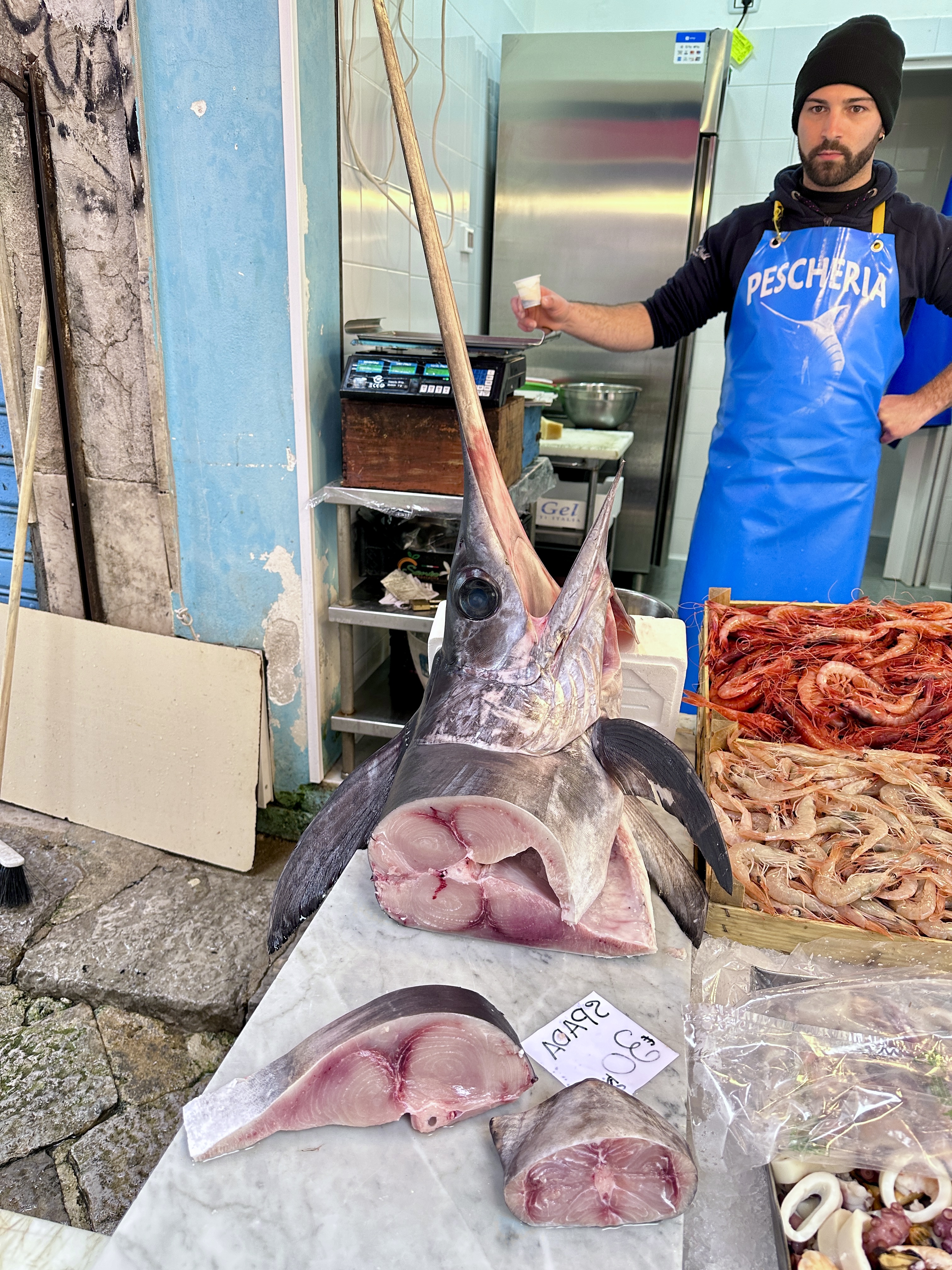 스워드 피쉬 Sword Fish 로도 불리는 이 물고기는 시칠리아를 여행하면 자주 만나게 되는데요!