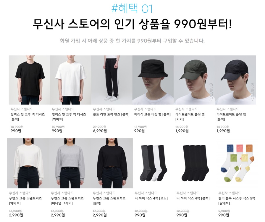 1) 무신사 스토어의 인기 상품을 990원 부터!