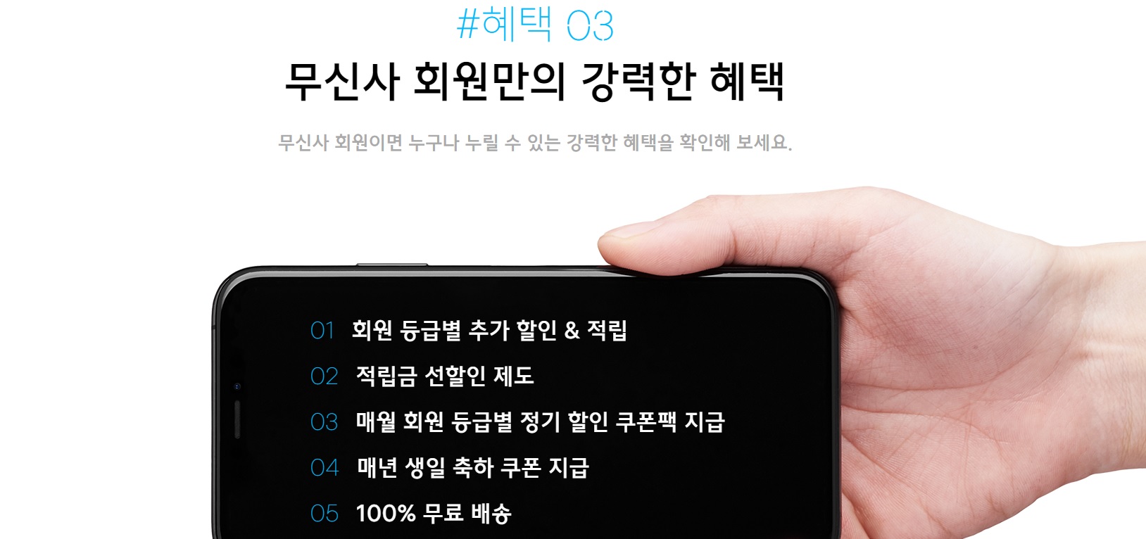 1) 모든 제품의 무료배송 (아무리 작은 제품 하나를 주문해도 무료배송)