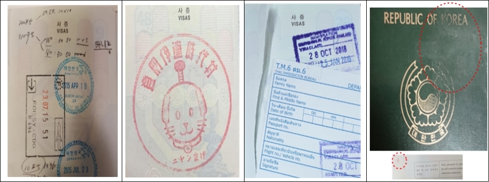 위 4가지 모두 훼손된 여권으로 간주되며, 훼손된 여권은 유효하지 않은 신분증으로써