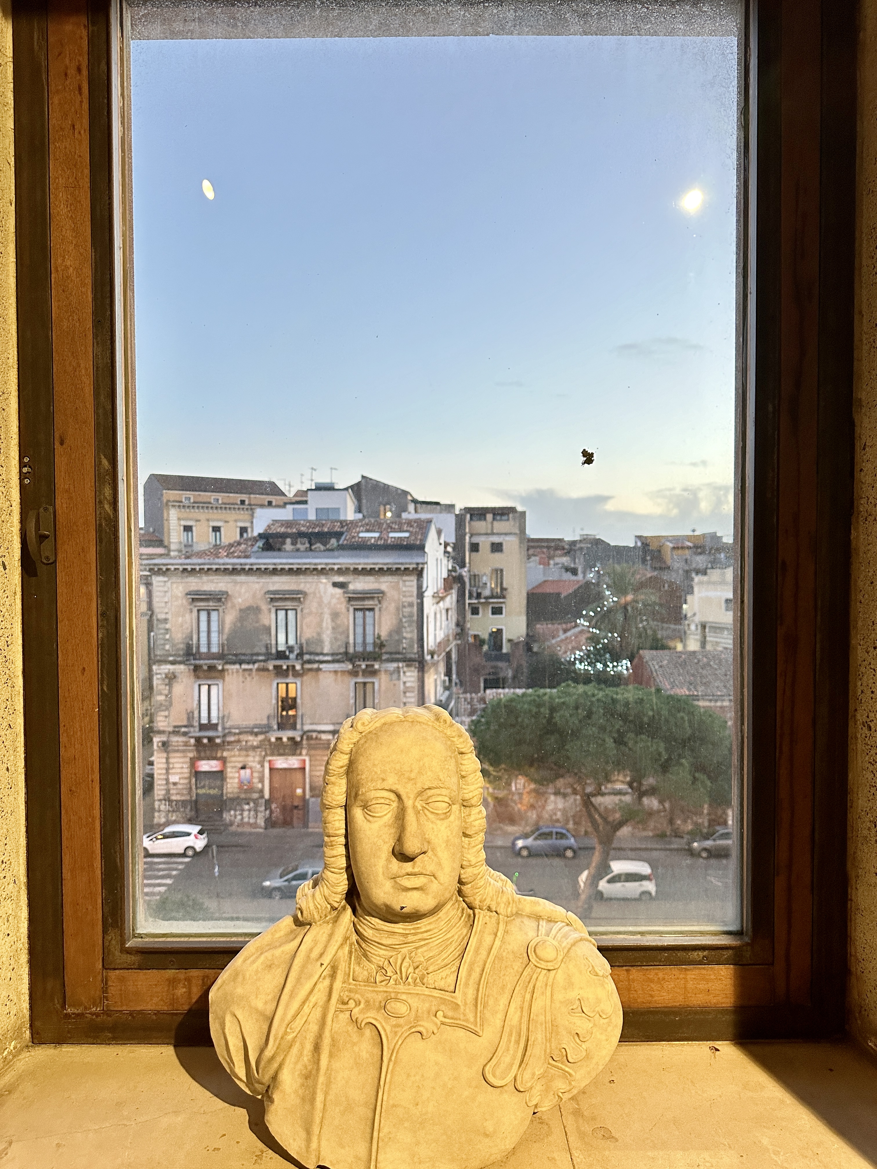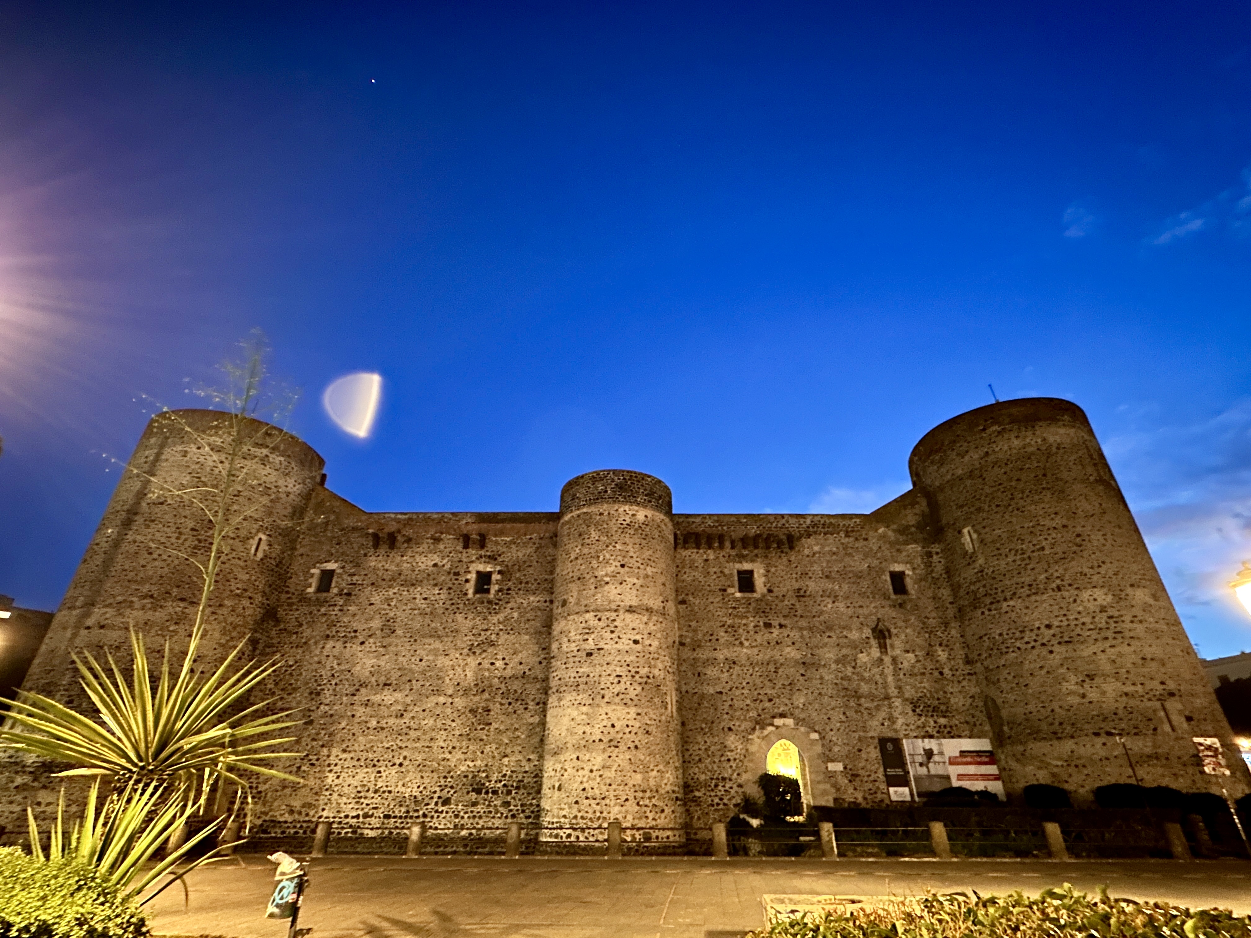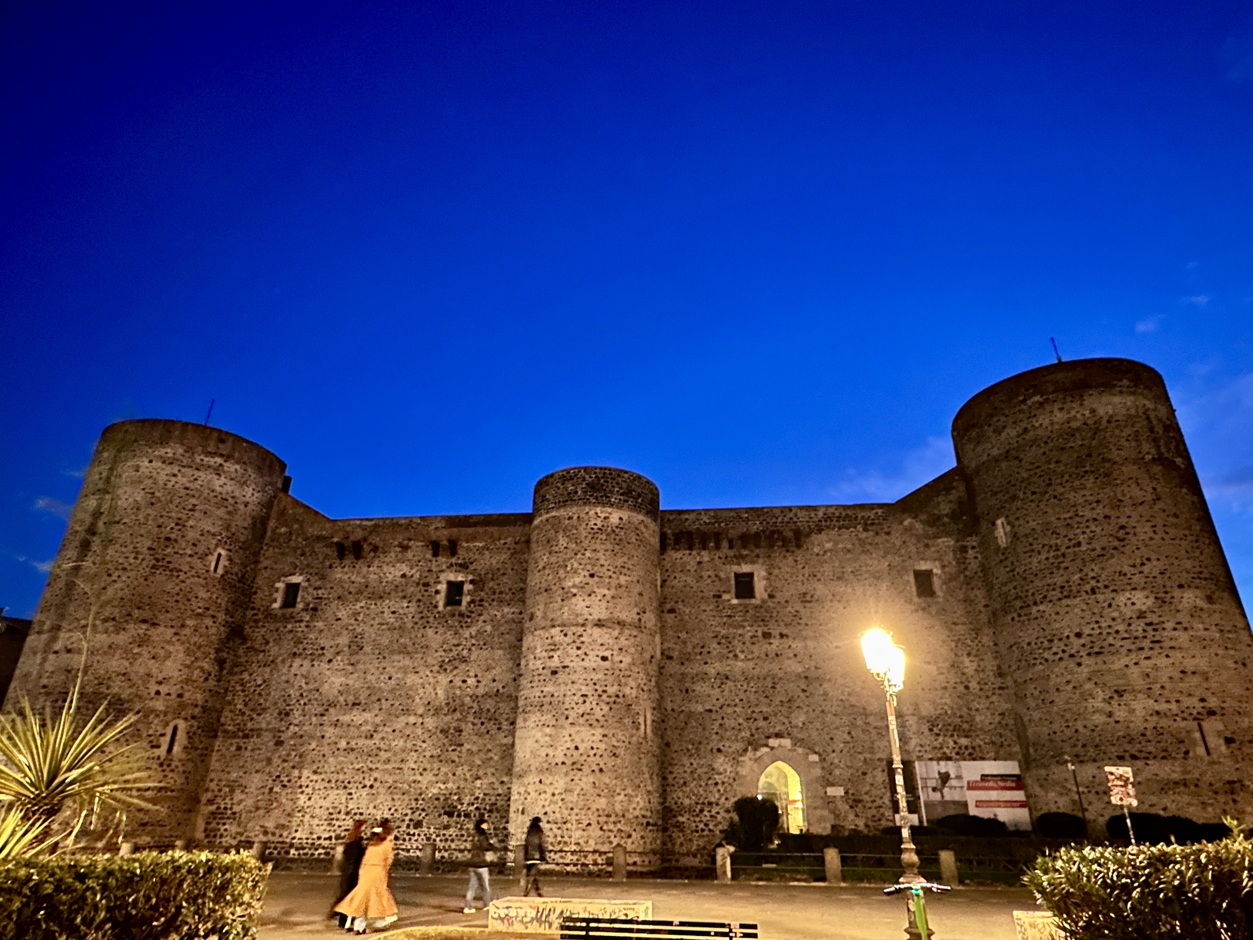1669년 에트나 산 대폭발 때 용암이 도시를 덮쳤고 그 때문에 성 주변이 육지가 되면서 졸지에 해안가에 있던 성은 도시 내륙으로 순간이동하게 된 셈입니다.