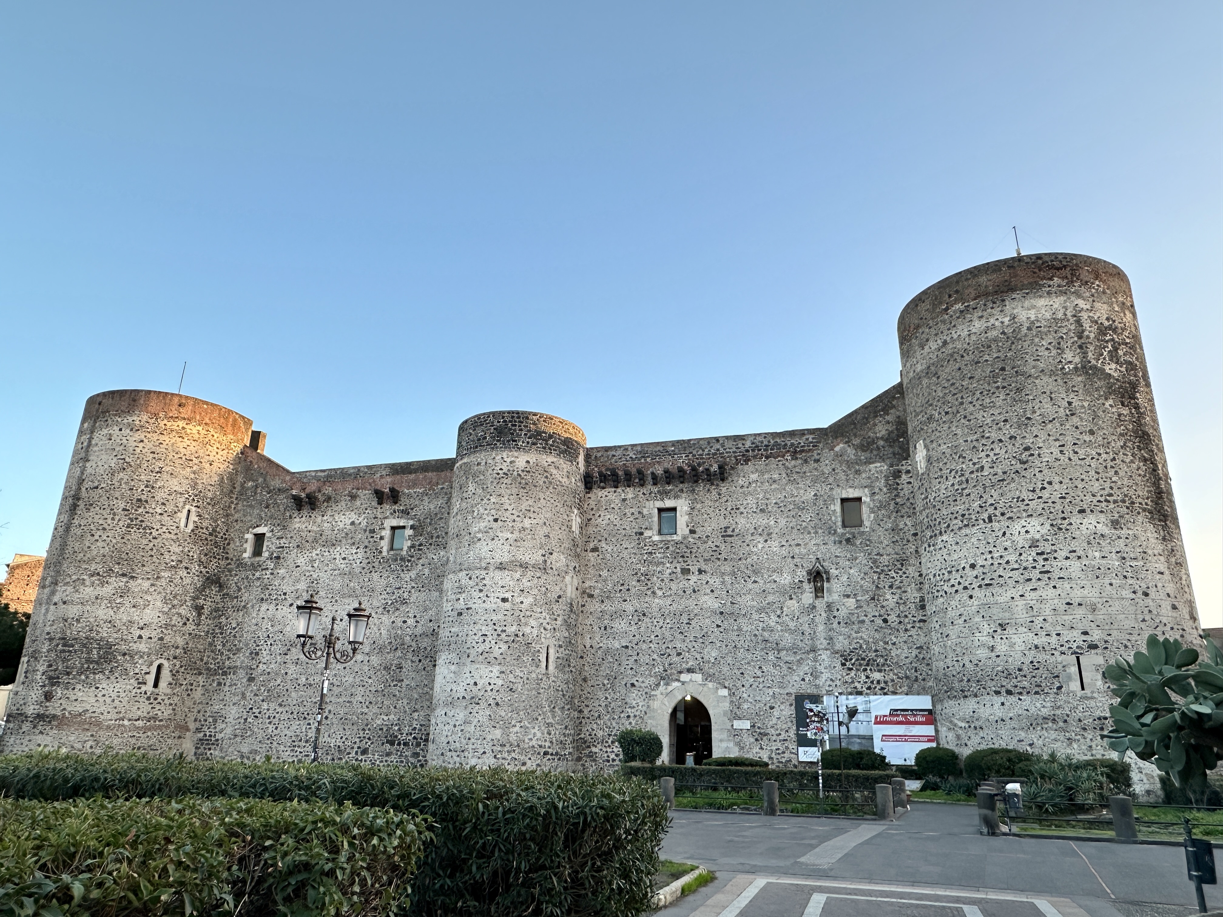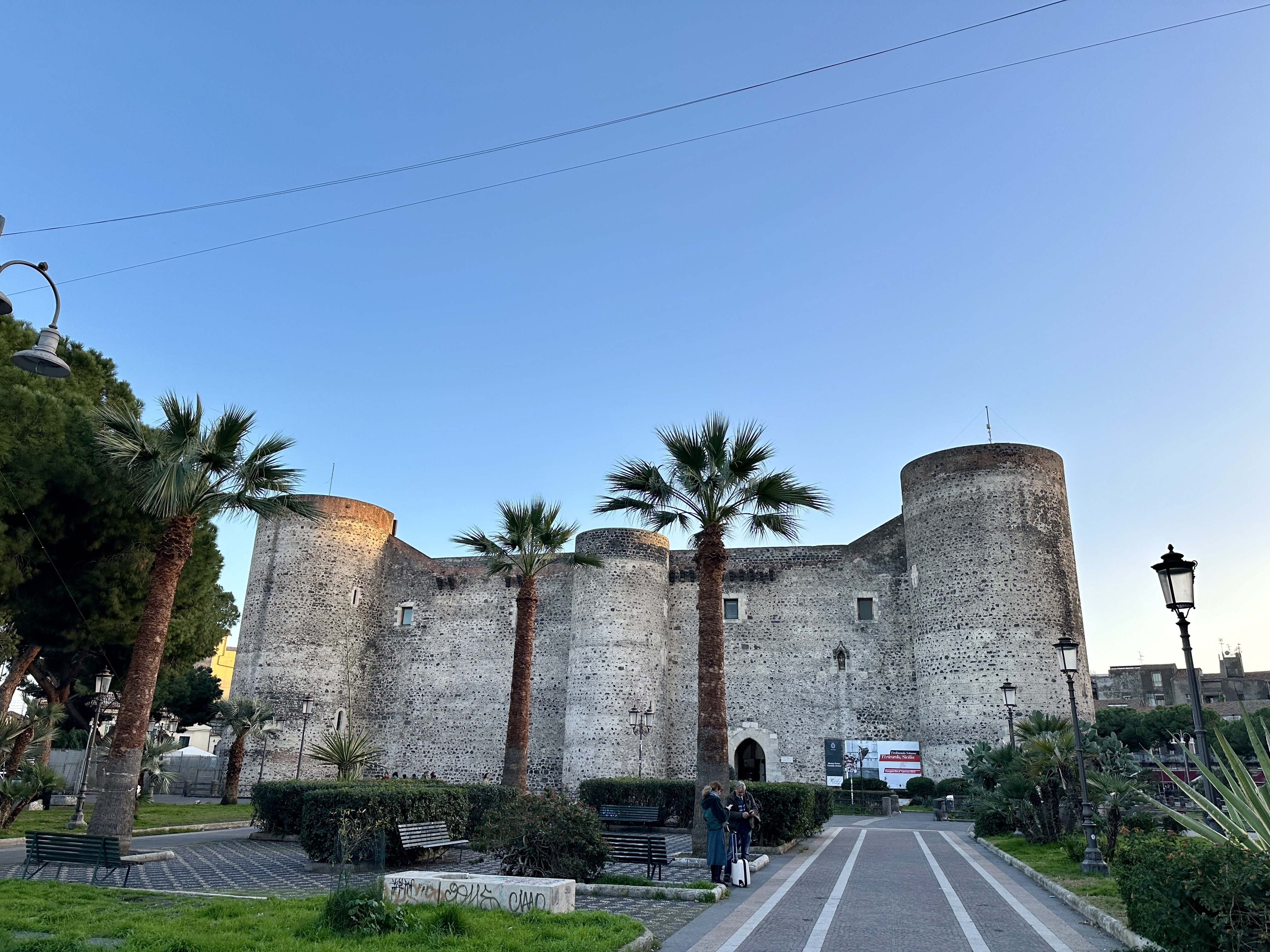 1669년 에트나 산 대폭발 때 용암이 도시를 덮쳤고 그 때문에 성 주변이 육지가 되면서 졸지에 해안가에 있던 성은 도시 내륙으로 순간이동하게 된 셈입니다.