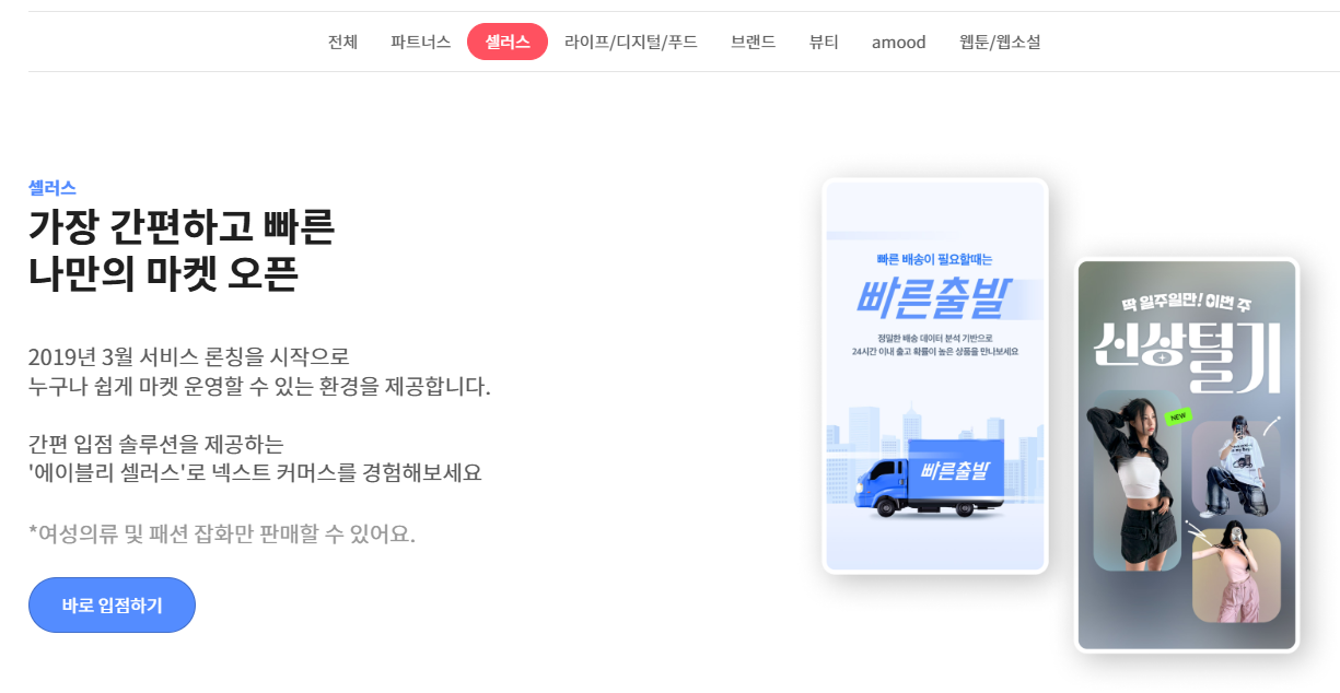이런 에이블리라는 플랫폼에 관심이 가서 에이블리 판매자센터에서 입점을 하여 판매를 해보고 싶은 생각이 들었는데요!
