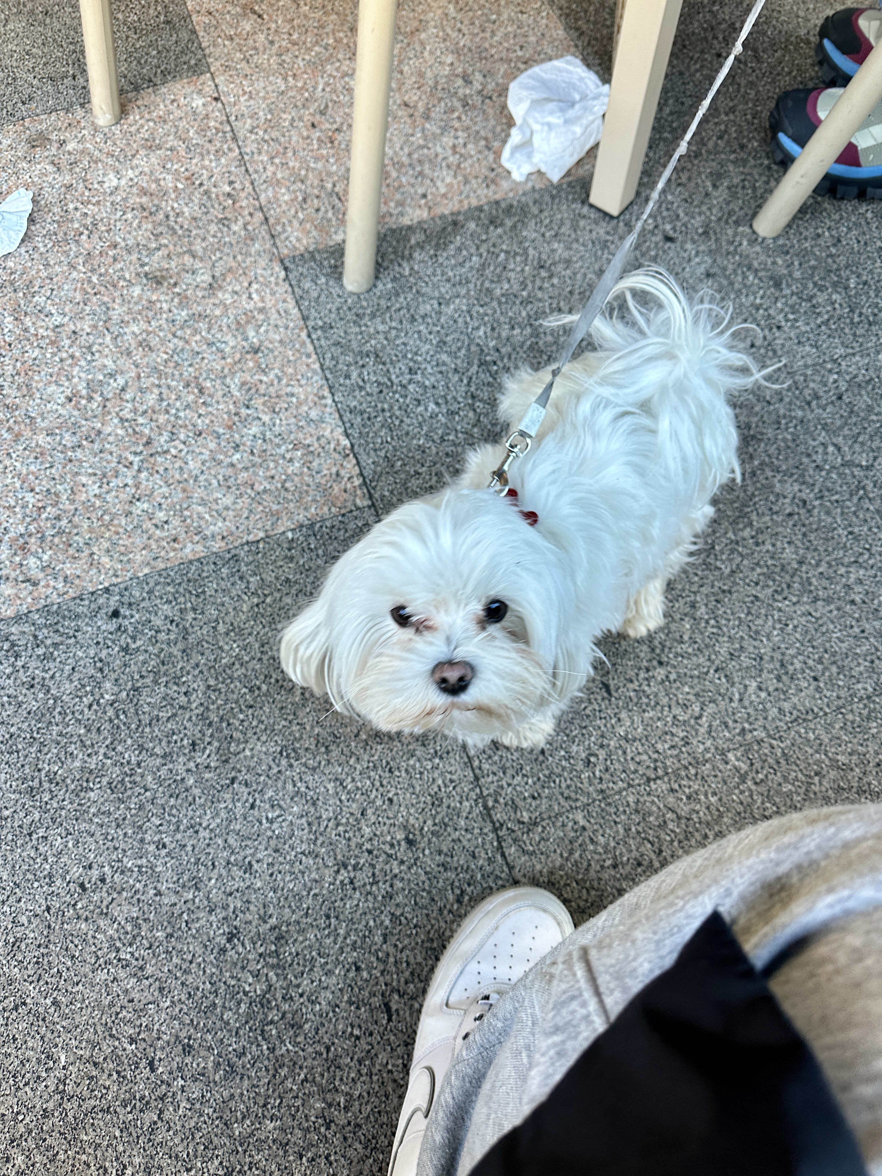 밥을 먹으러 온 주인을 따라 온 옆자리의 강아지가 여행객인 저를 반겨주는 것 같아 아침부터 기분이 좋았습니다.