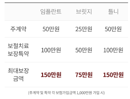 2. 보철치료보장특약 가입으로 임플란트 및 틀니 최대 150만원 치료자금 지급