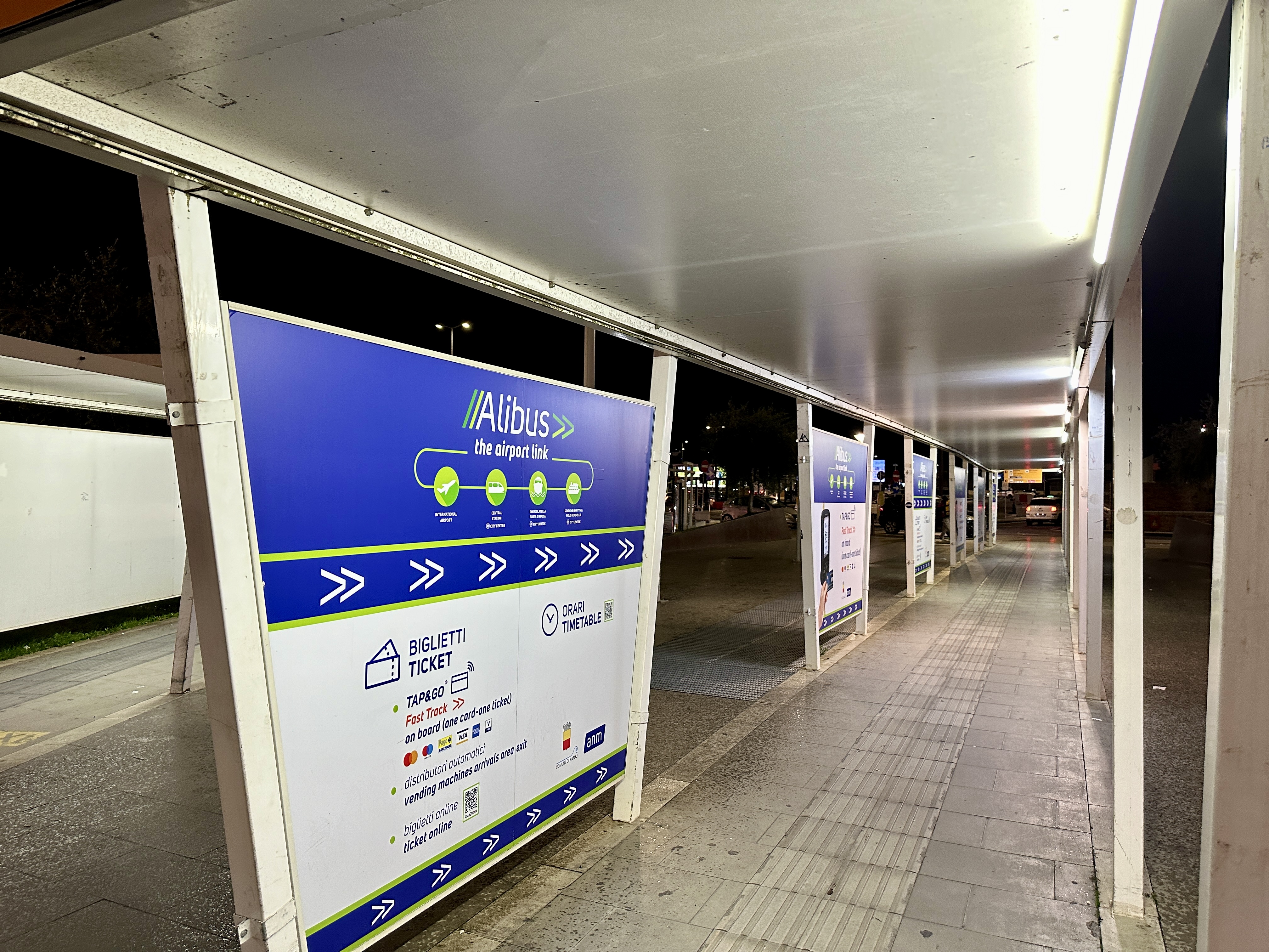 이정표를 따라 나오면 알리버스 탑승권을 구매할 수 있는 자판기가 있고 여기서 카드결제로 Alibus 티켓을 구매하면 되는데 알리버스의 요금은 1인당 편도 5유로입니다.
