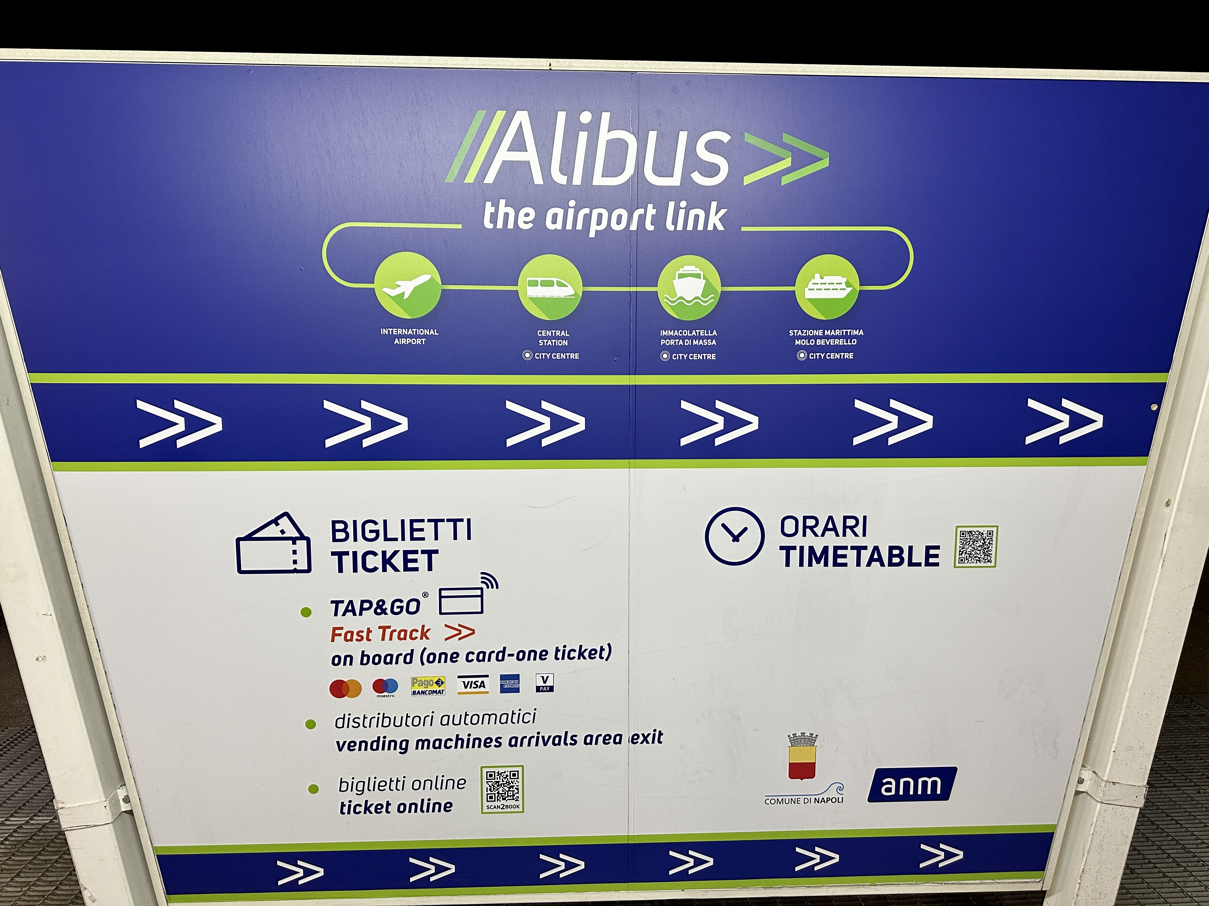 나폴리 공항을 통해 입국하면 시내로 가는 여러가지 방법이 나오는데, 가장 경제적인 방법은 공항버스인 알리버스를 탑승하는 것입니다.