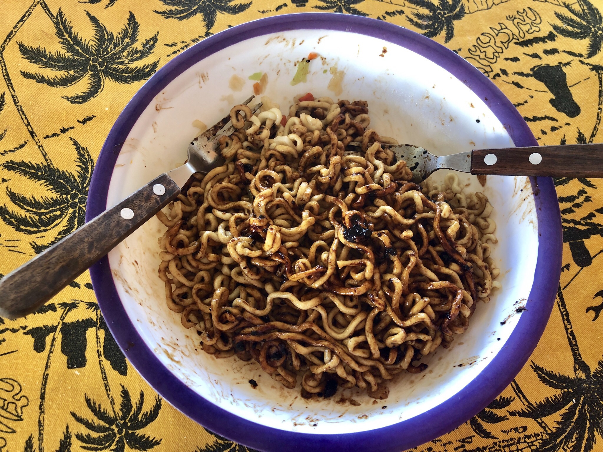 오늘 점심은 짜파게티와 아몬드 그리고 바나나 조합이다.