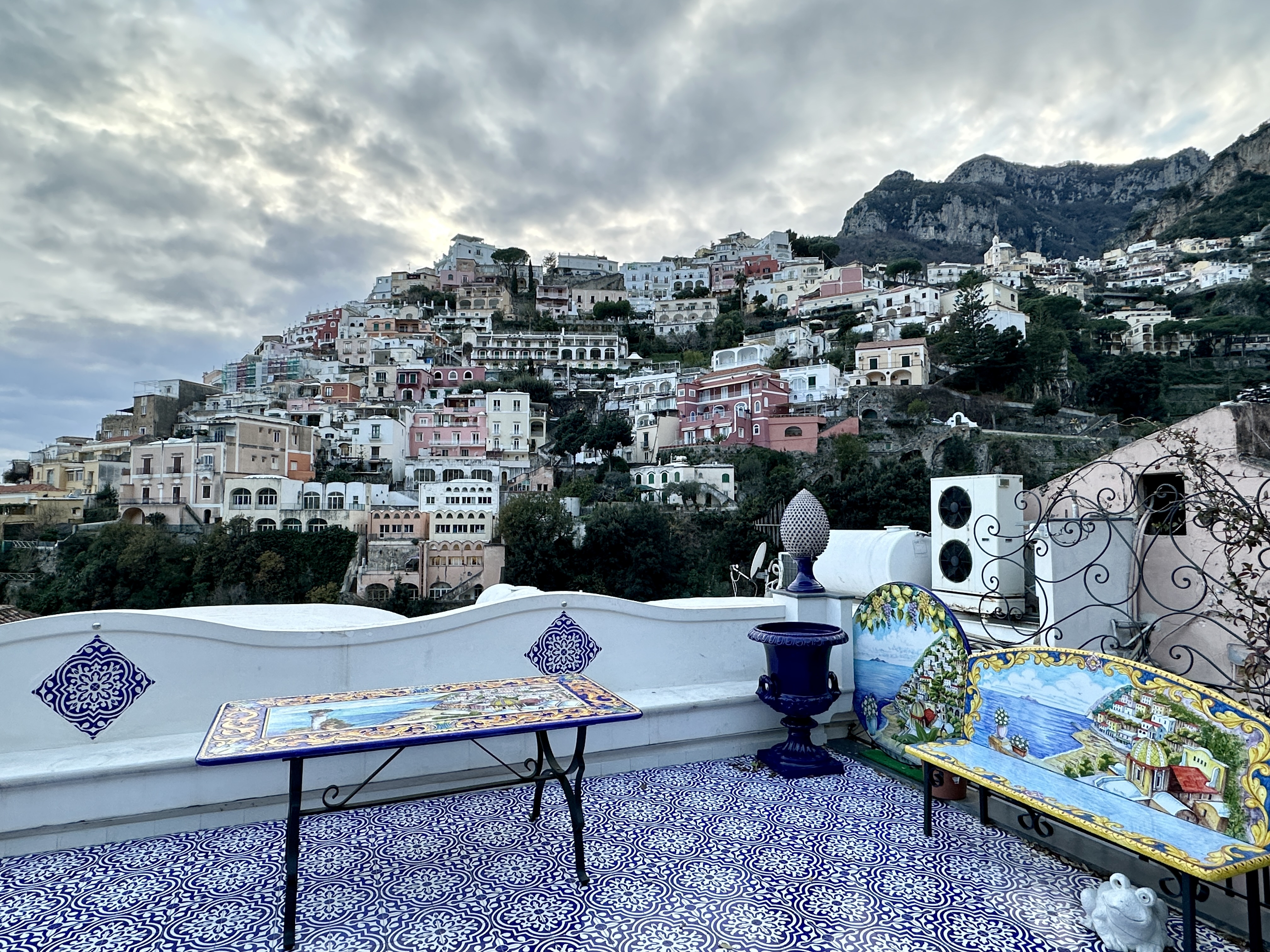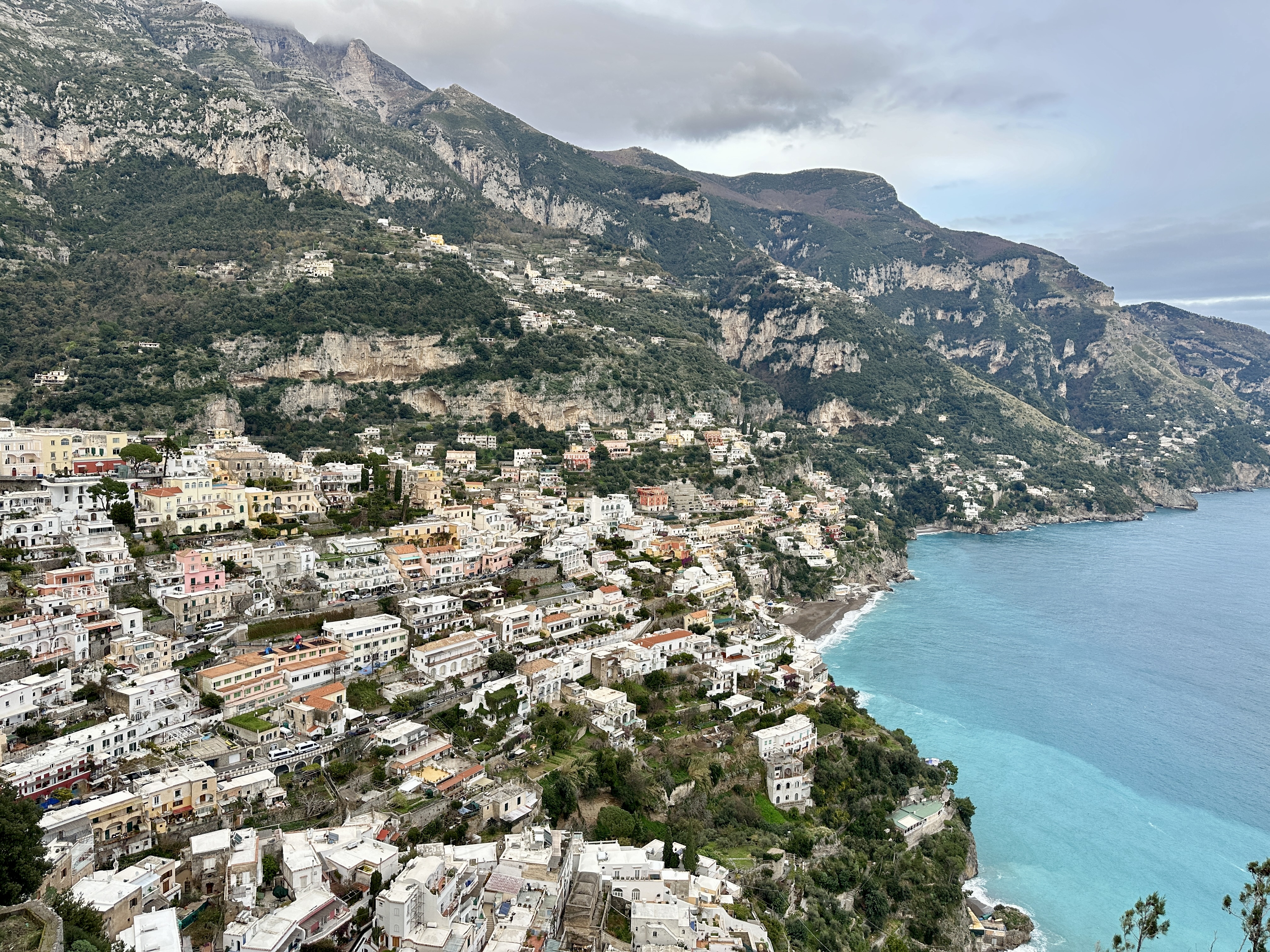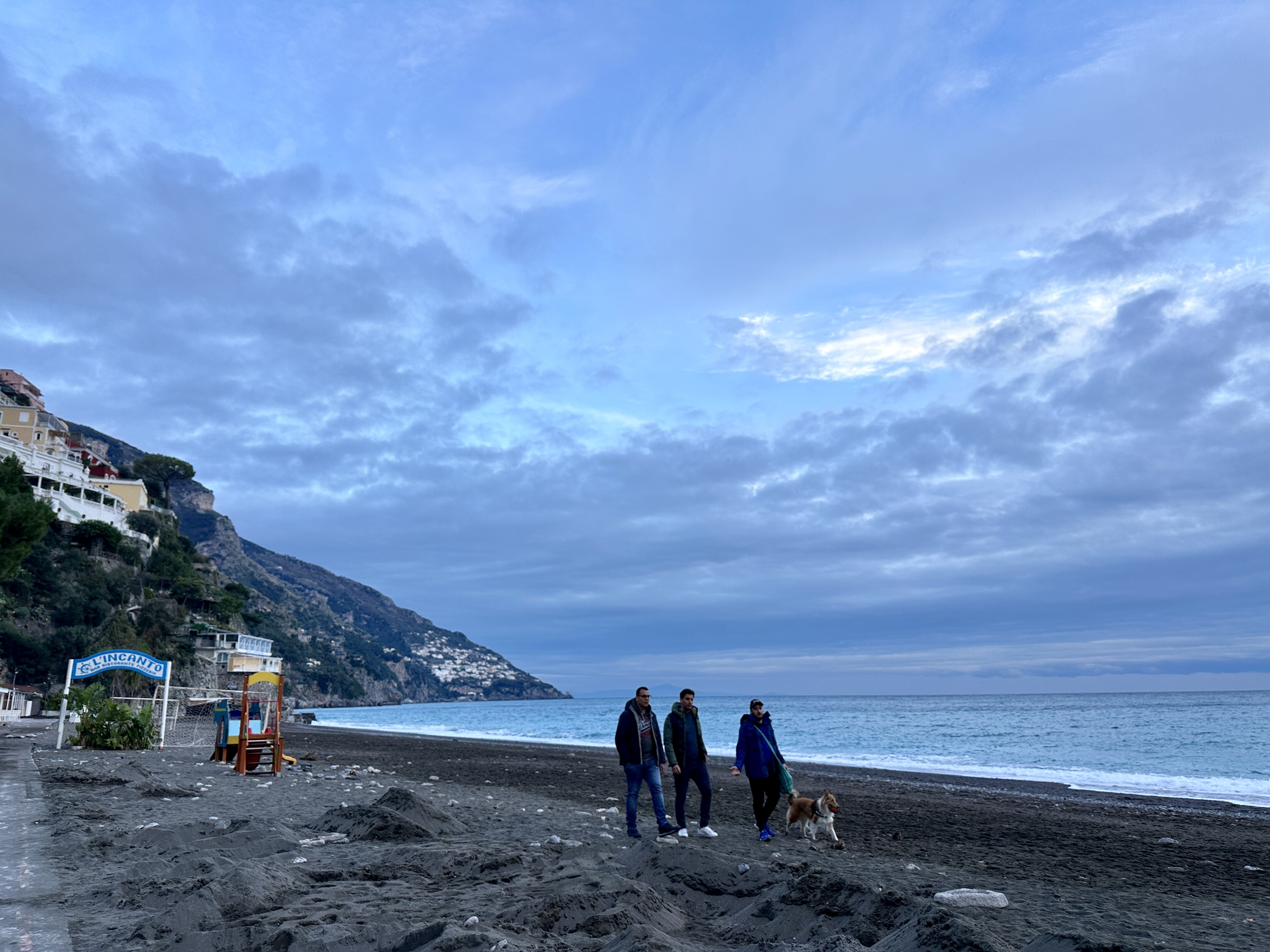 날씨가 약간 변덕스럽긴 했지만, 약간 어두워지는 포지타노 해변은 너무나 아름다웠습니다.