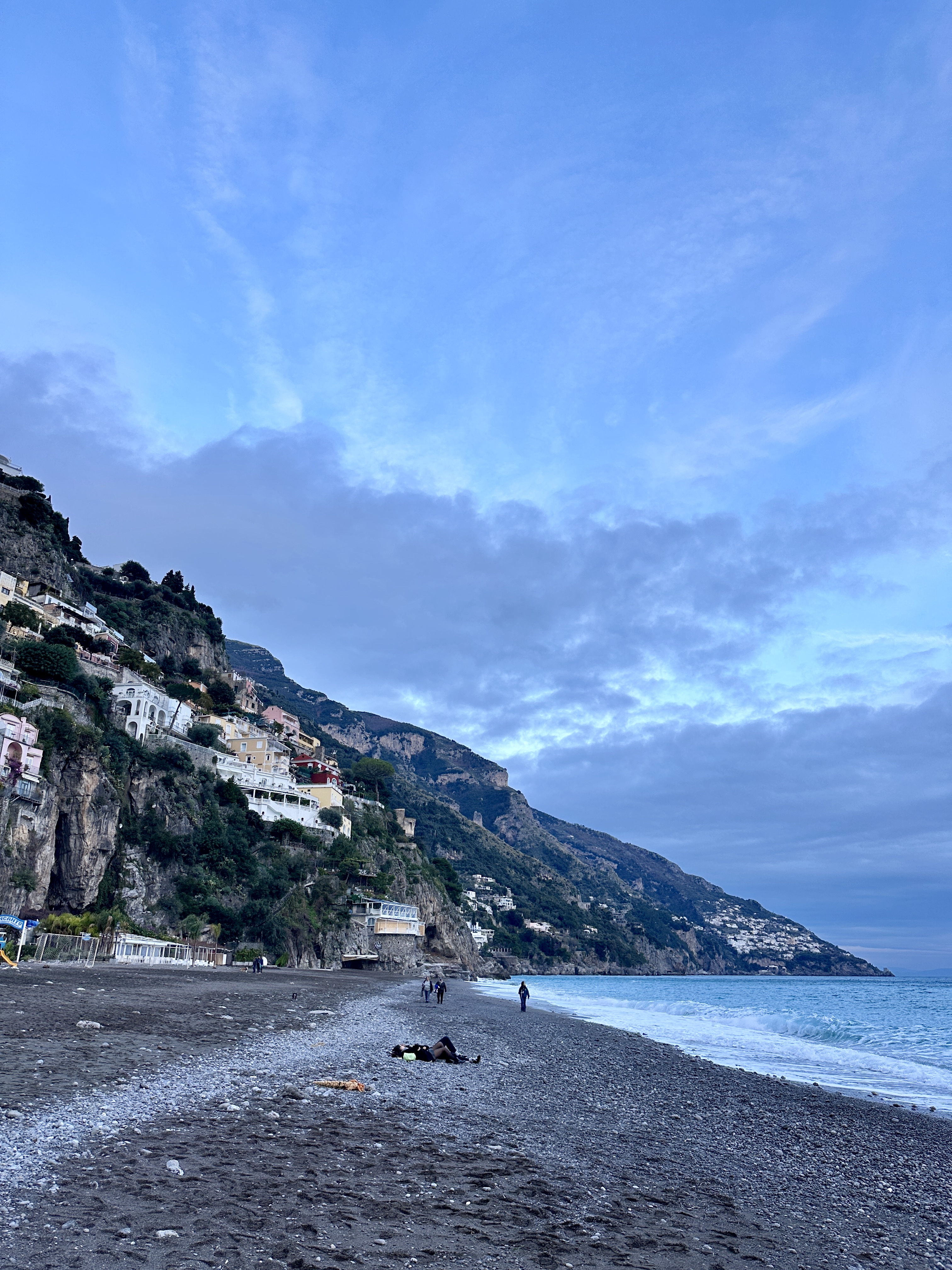 날씨가 약간 변덕스럽긴 했지만, 약간 어두워지는 포지타노 해변은 너무나 아름다웠습니다.