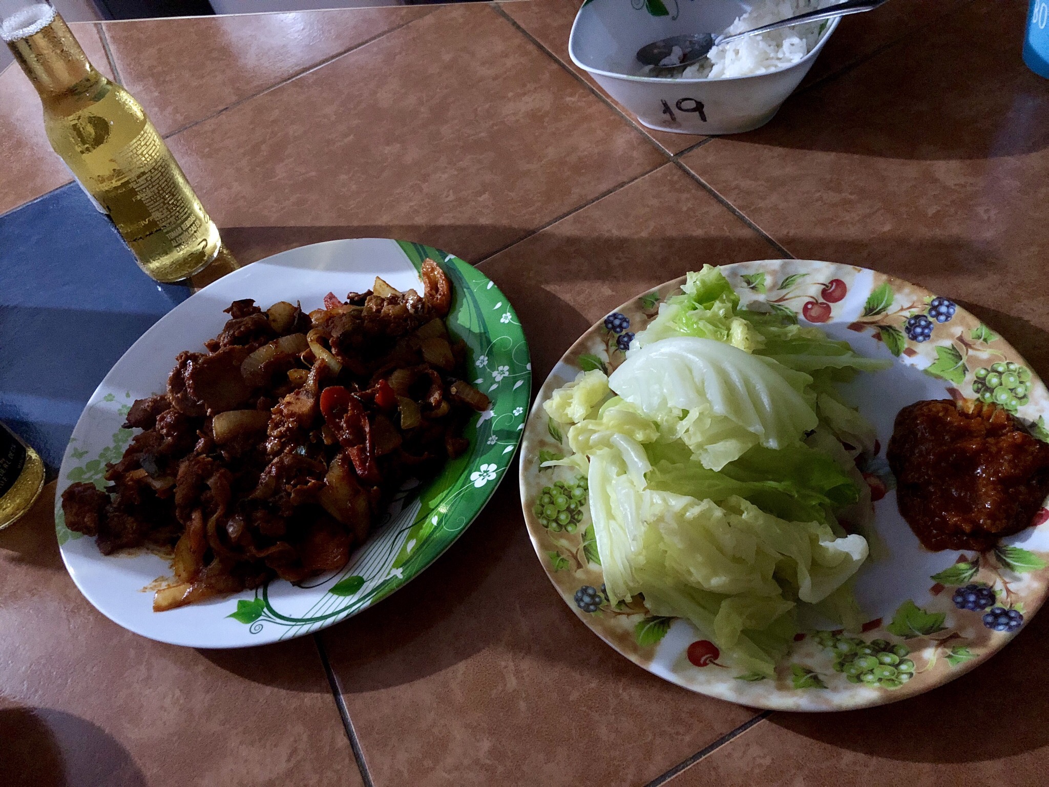 옆 숙소인 캠핌장에 묶고 계셨는데, 그때 이야기 하던 제육쌈볶음을 정말 요리한 것이다.