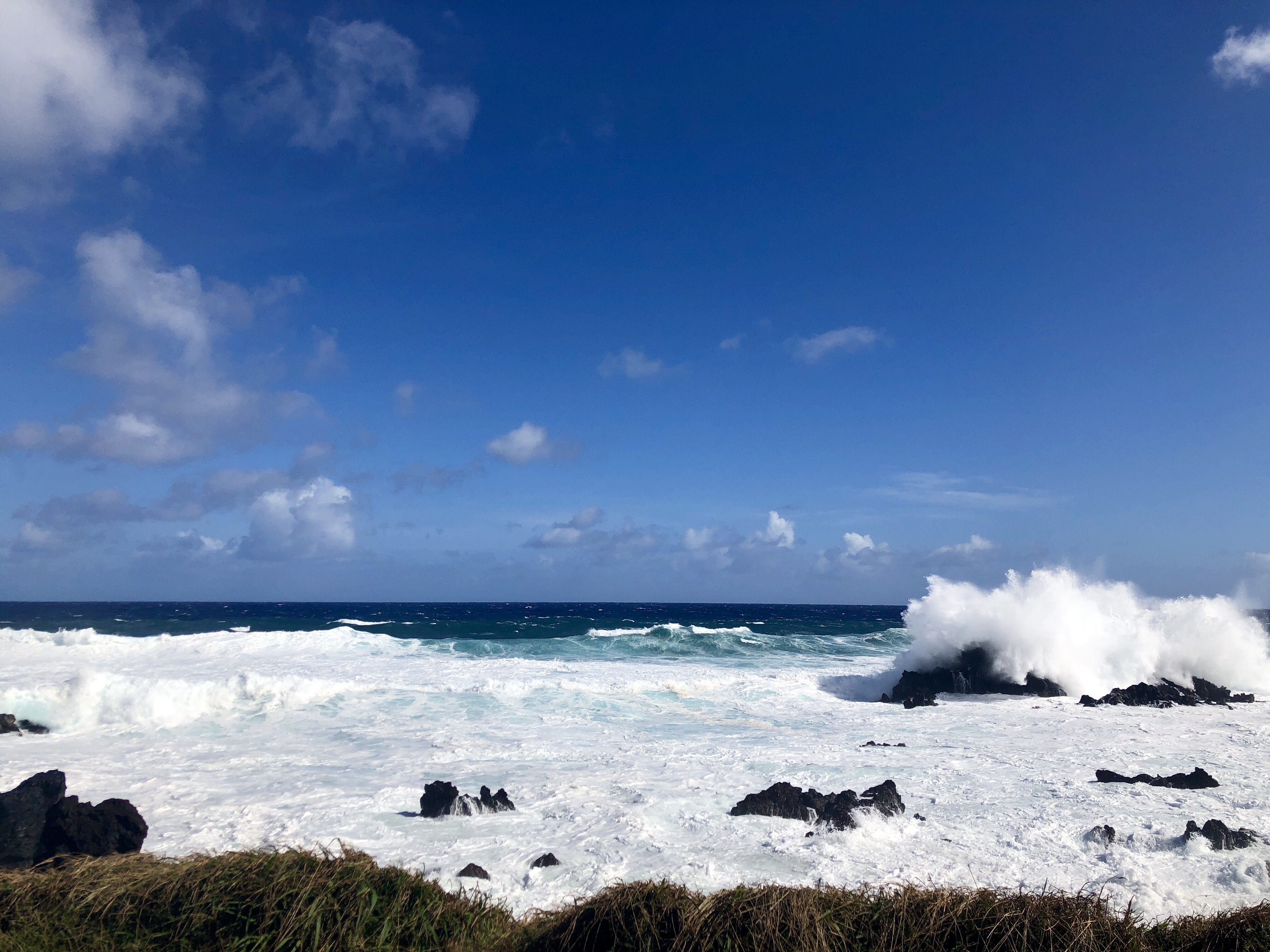 숙소로 돌아가는길에 넓은 태평양 바다의 높은 파도를 보고 잠시 차를 세우고 구경했다.