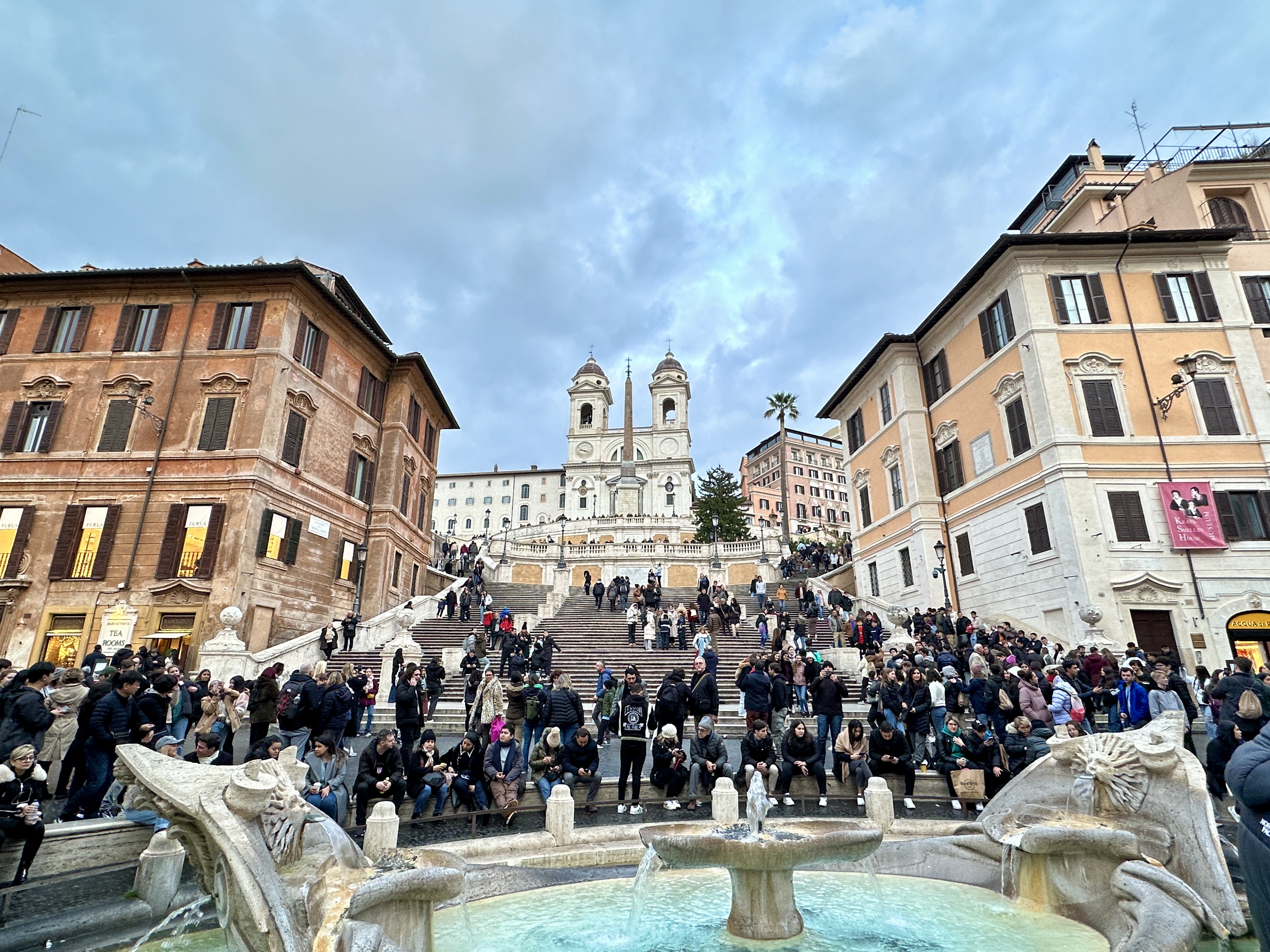 계단 아래의 유명한 분수대는 베르니니의 아버지인 피에르로 베르니니가 만든 난파선의 분수입니다.
