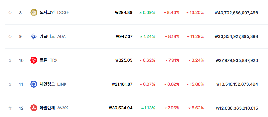 이는 시가총액 순위 10위의 트론 다음이며 11위인 체인링크 (13조 5천억)을 넘는 순위입니다.