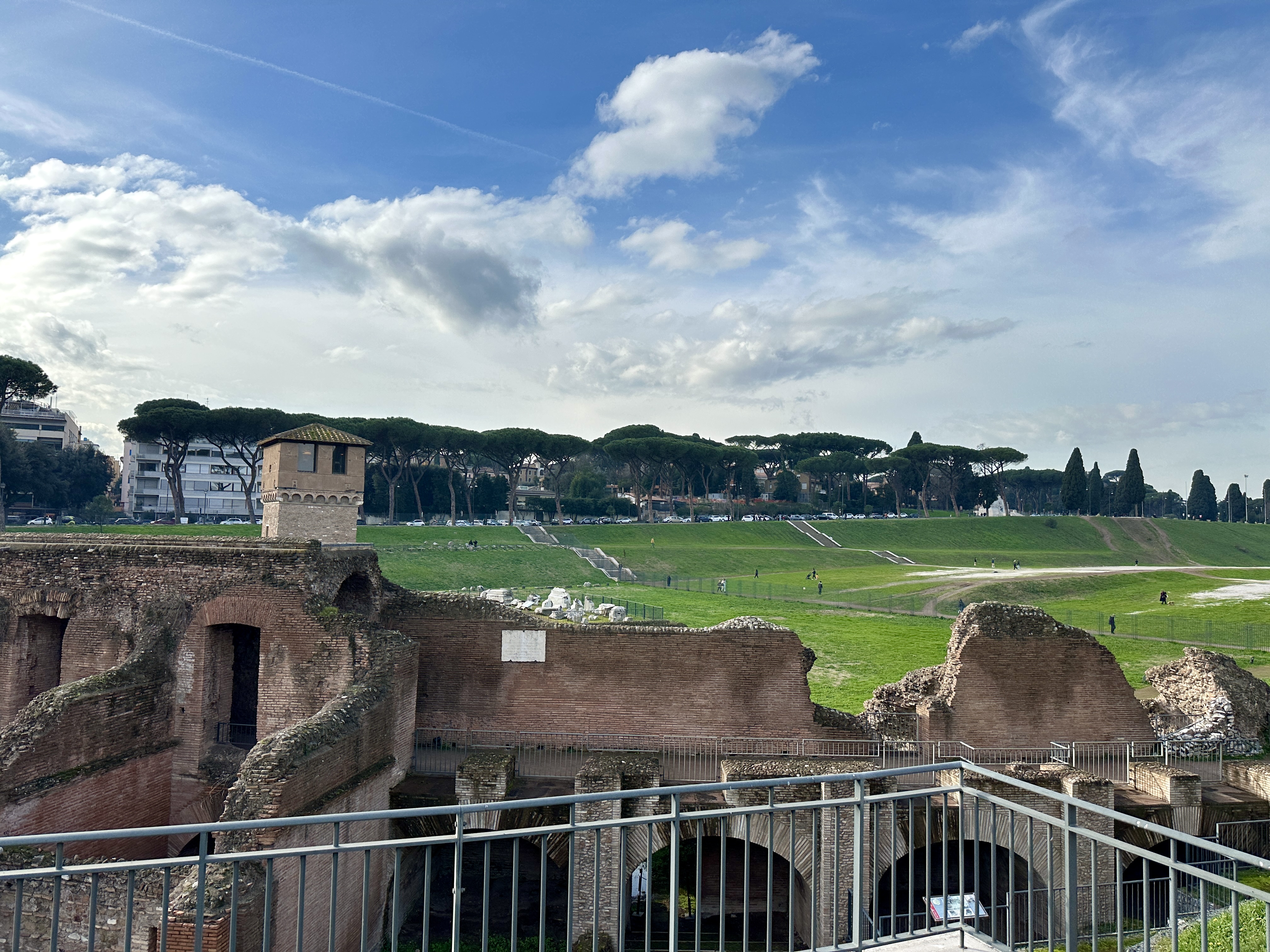 이곳에서 바라보는 팔라티노의 건물들과 소나무가 어우러진 전경은 매우 아름다웠습니다.