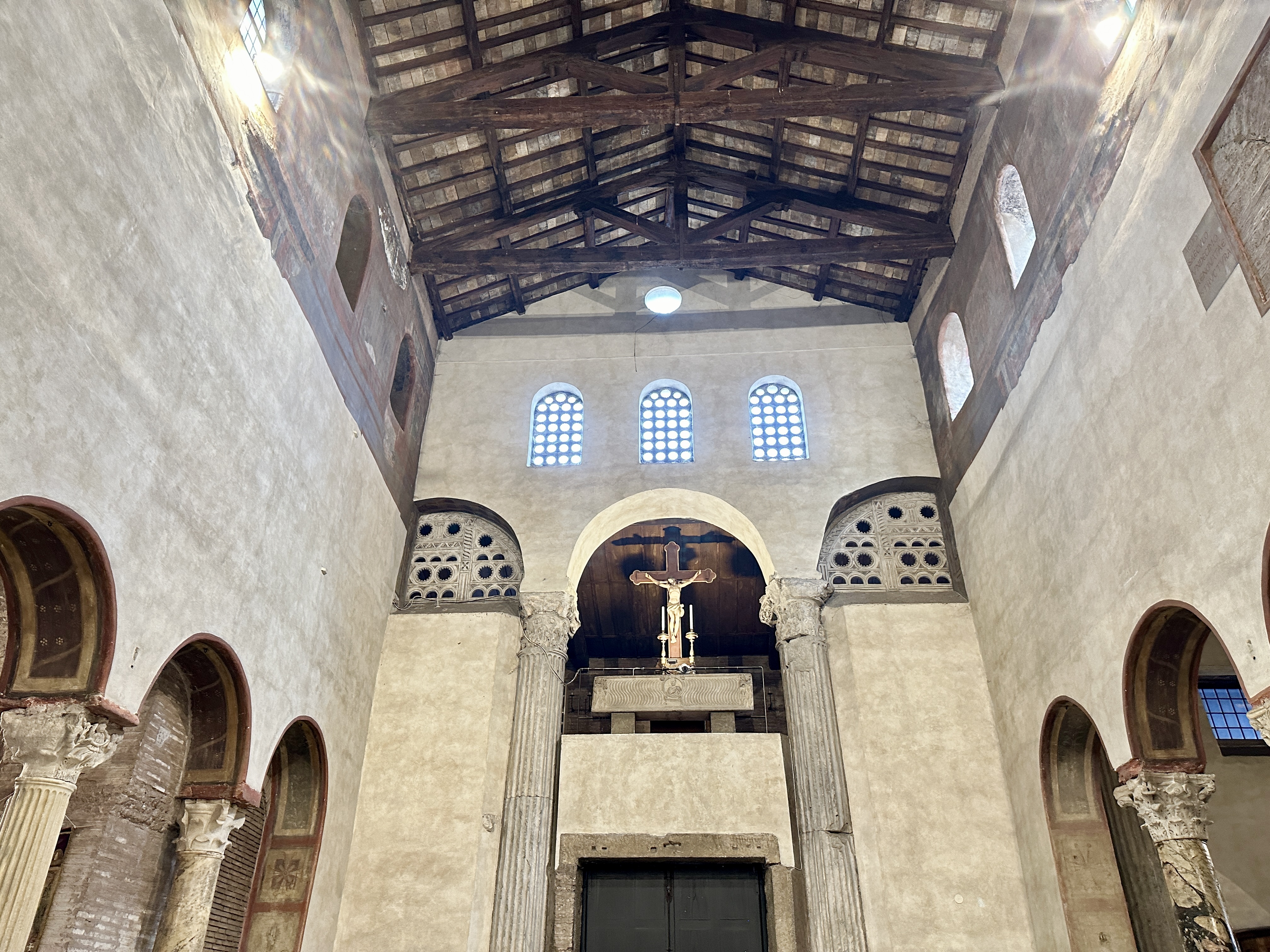 진실의 입이 위치하고 있는 산타 마리아 인 코스메딘 성당은 로마 시내에서 아름다운 성당 중 하나로 손꼽히는 성당인데, 매우 독특한 로마네스크양식 종탑과 모자이크로 장식된 바닥이 특징입니다.