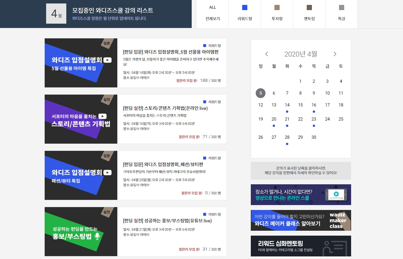 온·오프라인 교육 서비스인 '와디즈 스쿨'을 진행한다.