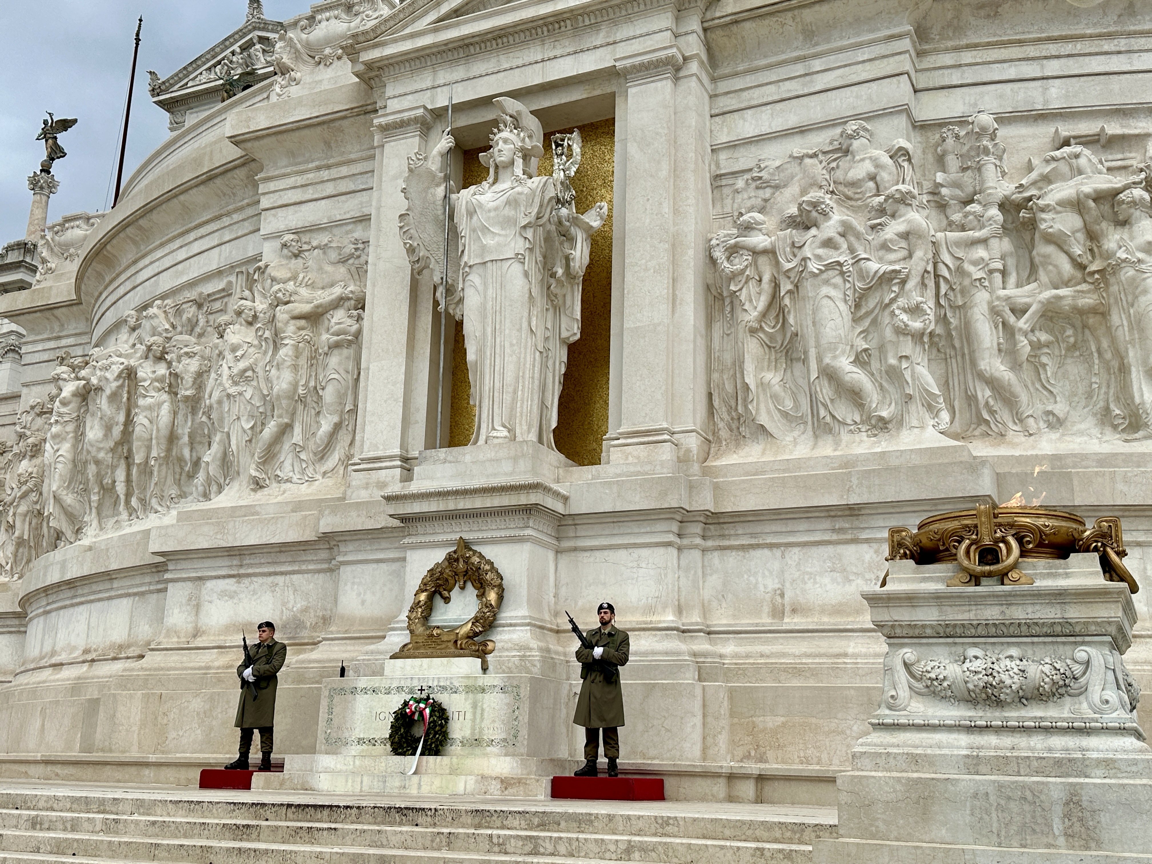 정면에 있는 기마상이 비토리오 에마누엘레 2세의 동상이며 그 아래에는 제2차 세계대전 당시 전사한 무명 용사를 기리는 불꽃이 늘 타오르고 있습니다.