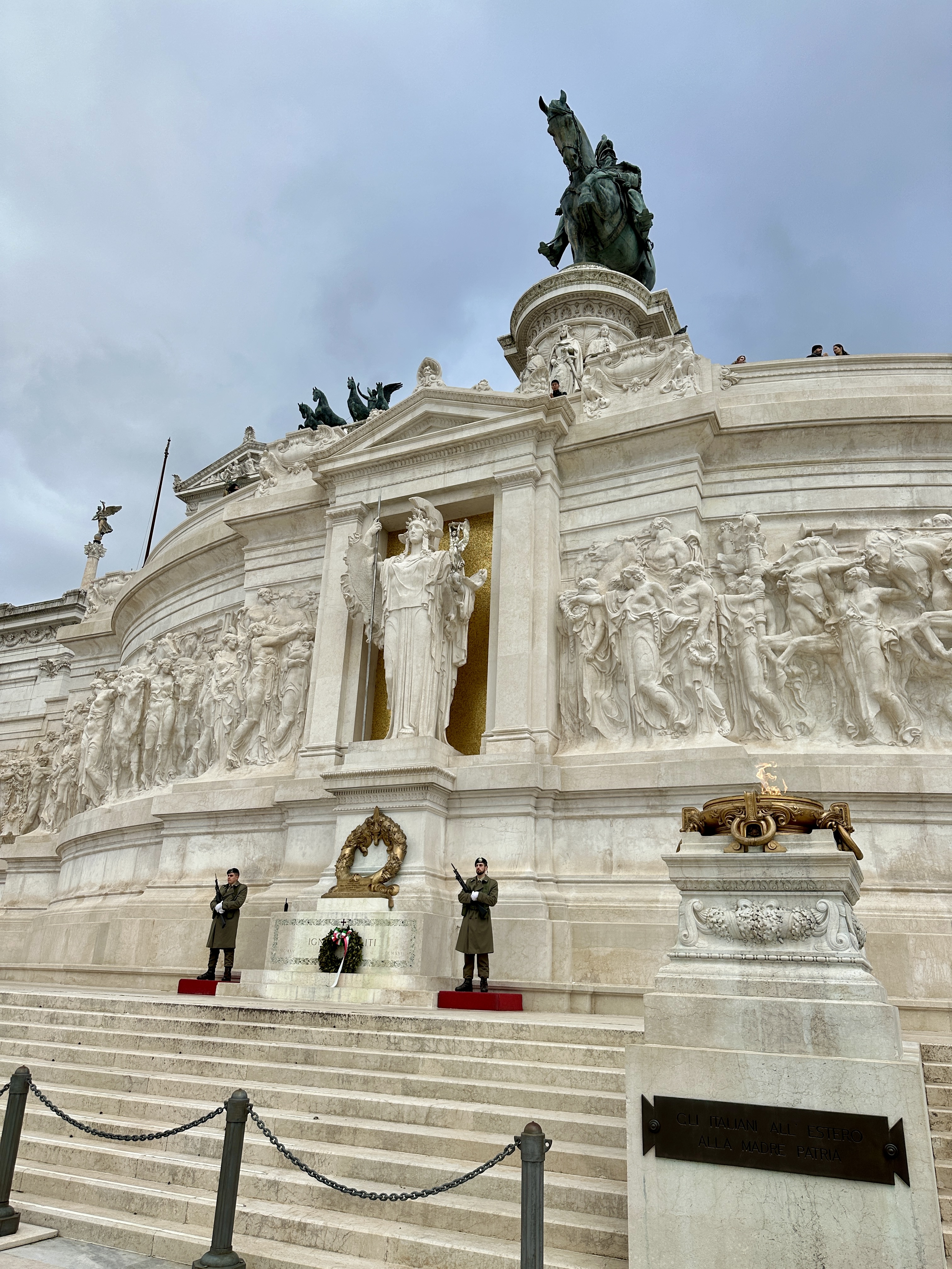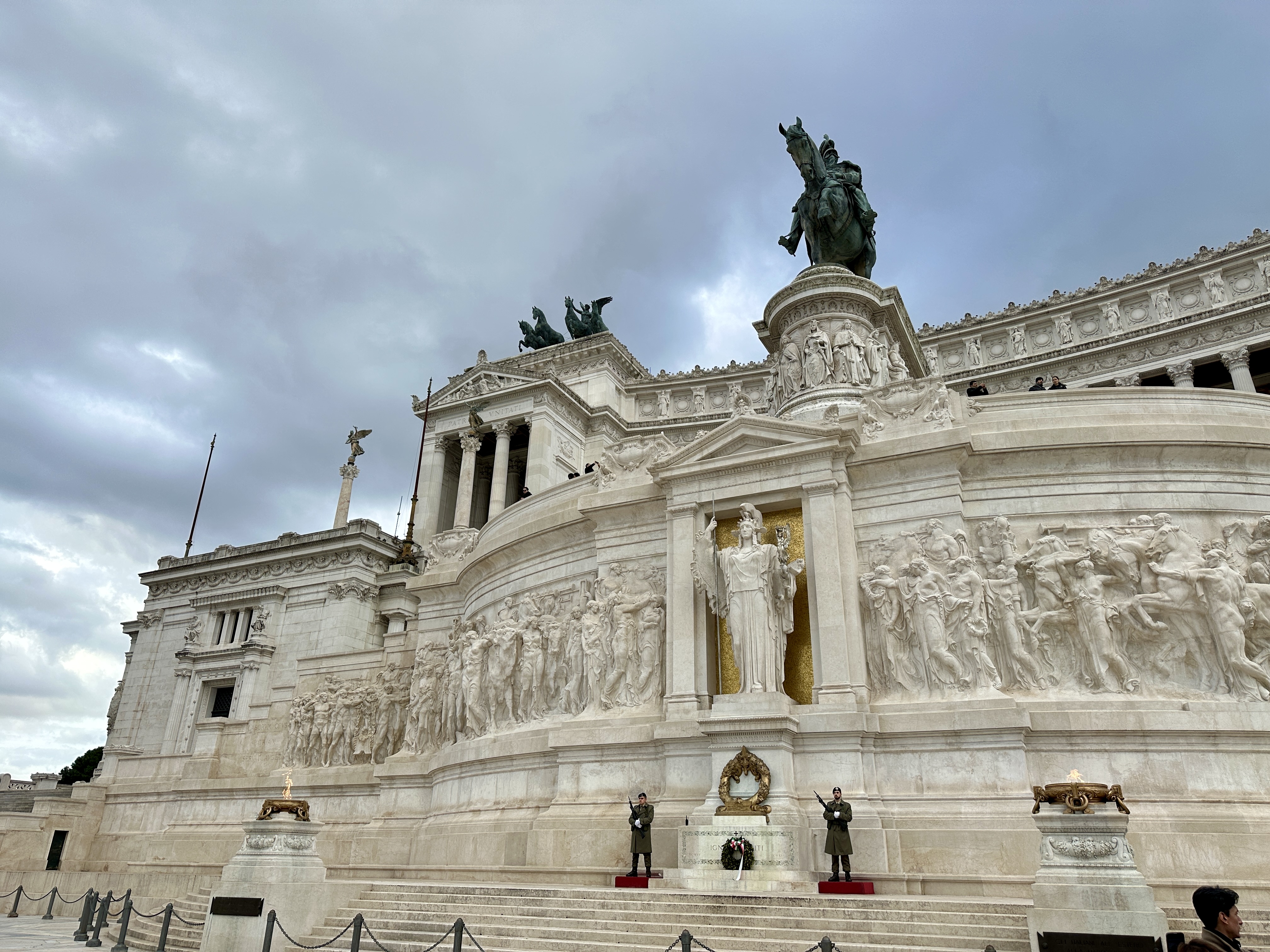정면에 있는 기마상이 비토리오 에마누엘레 2세의 동상이며 그 아래에는 제2차 세계대전 당시 전사한 무명 용사를 기리는 불꽃이 늘 타오르고 있습니다.